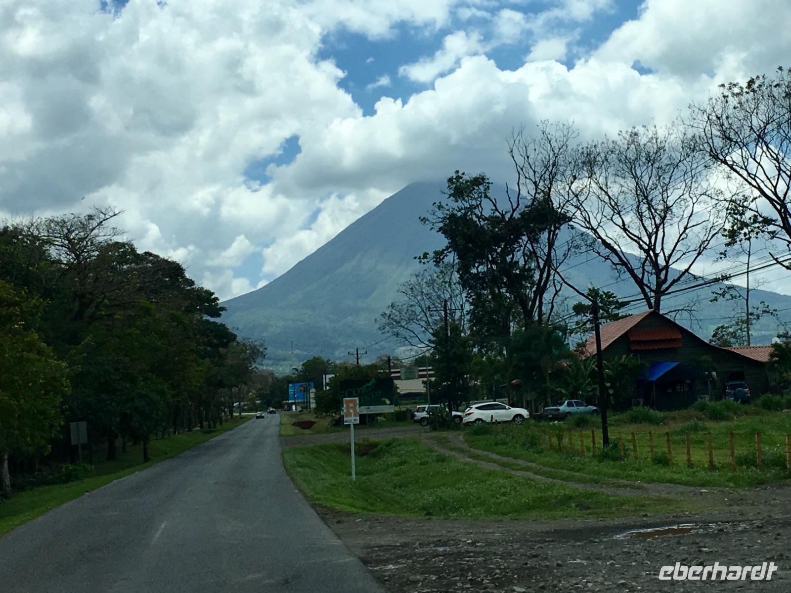 Ein schoenes Fruehstuecksbuffet erwartet uns heute im Hotel in San Jose und der feine Tika Kaffee weckt die Geister. Frohgemut nehmen wir unsere Plaetze im Bus ein und warten schon gespannt, was uns heute erwartet. Vorerst wollen wir nun schauen, ob die verlorene Kamera tatsaechlich am Flughafen in einem Buero aufbewahrt ist. Also nichts wie hin. Zu dritt saussen wir in dem Flughafengebaeude von Pontius nach Pilatus und finden dann, verschwitzt, die graue Tuere hinter jener das Glueck liegen soll. Wir klopfen, warten, warten, klopfen und ploetzlich steht sie da, die auesserst nette Paca Angestellte mit der vermissten Kamera in der Hand ! Noch ein Photo von Kamera und Pass und nun ist die Glueckseeligkeit komplett. Kamera und Kamerabesitzer sind wieder vereint, das Leben kann weitergehen. Wir finden auch wieder aus dem Gebaeude hinaus und freuen uns die frohe Nachricht den geduldigen Mitreisenden mitteilen zu duerfen. Jupeehh. Nun gehts weiter in den Norden Costa Ricas. Die Panamerica ist hier 2 bis 3 spurig und schlaengelt sich ueber Huegel in Taeler entlang Vulkane und vorbei an weitflaechigen Zuckerrohrplantagen die soeben geerntet werden. In Bajo los Rodrigez sehen wir Kaffeeplantagen. Bald werden die Kaffeepflanzen jedoch von Erdbeerpflanzen abgeloest und das Klima wird immer feuchter und waermer. Die Strasse ist in perfektem Zustand und die Aussichten einfach fantastisch. Huegel nach Huegel, Kurve nach Kurve kommen wir nun sogar an Zimmerpflanzen Plantagen vorbei. Wohin man schaut, ueberall nur Zimmerpflanzen 20 Minuten lang ! San Jose liegt auf 1000 MüM und wir wollen runter auf 500 MüM in den Regenwald nach La Fortuna. Berny erzaehlt uns vieles ueber Agrikultur in Costa Rica und auch wie man Zuckerrohr verarbeitet. In La Fortuna setzen wir uns in ein Kaffeehaus, essen etwas kleines und trinken den beruehmten Cafe typico. Danach wollen wir noch in das Oekozentrum Danaus ehe wir im Hotel einchecken. Ach wie wunderbar sind doch diese 600 Meter durch den Sekundaerwald. Es braucht rund 2 Stunden, bis wir alles sehen, erleben, erspaehen, fotografieren und erkunden. So viele tolle Vogelarten, so hohe Baeume, so schoene Pflanzen und Blumen. Um den Teich herum ist das Leben besonders aktiv. Bloss das grosse 2-zehige Faultier hat sich einen Baum beim Ausgang ausgesucht um diesen Tag zu verbringen. Im Schmetterlings-abteil flattern viele bunte Schmetterlinge herum unter ihnen auch 2 blaue Morphos. Unsere Vogelbeobachter sind ganz ausser sich vor Freude, da sie von den 830 Vogelarten in Costa Rica sicher schon 150 gesehen haben und wir sind doch bloss den 4. Tag hier ! Bald ziehen wir in unsere Waldhaeuschen ein, dann das sind die Hotelzimmer fuer die naechsten 3 Tage, einfach super, mitten im gruenen mit Pool und Sicht auf den Arenal Vulkan. Idylle pur. Das Abendessen schmeckt lecker, die live music ist vielleicht etwas laut und der Kellner hat es fertig gebracht fast jedem genau das hinzustellen was er NICHT bestellt hat. Es hat uns sehr amuesiert und am Ende hat dann doch jeder bekommen was er wollte. Sehr lustig. In den Waldhaeuschen werden wir sicher sehr gut schlafen. Gute Nacht schoenes Costa Rica.