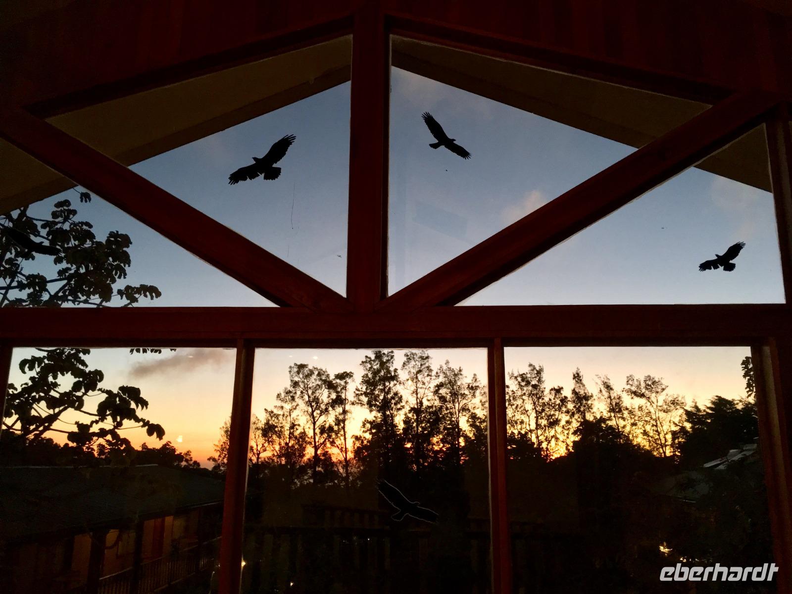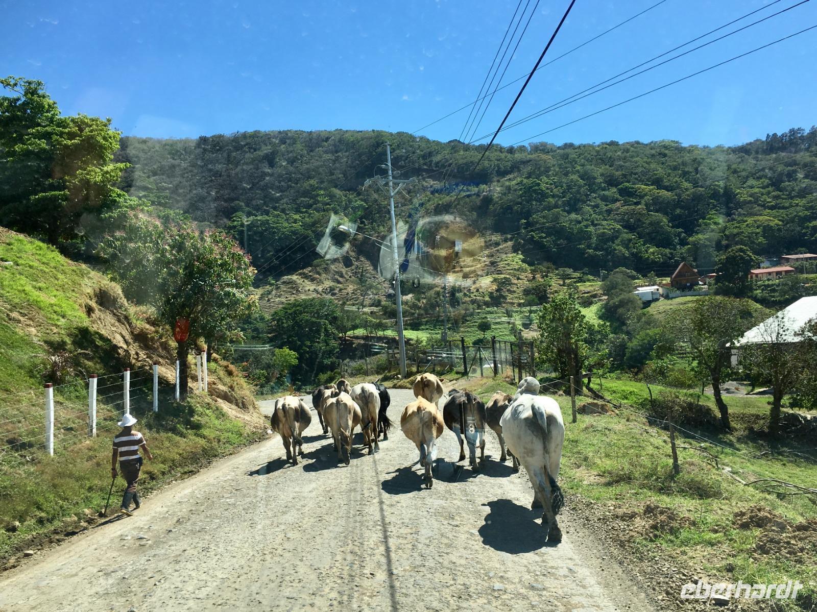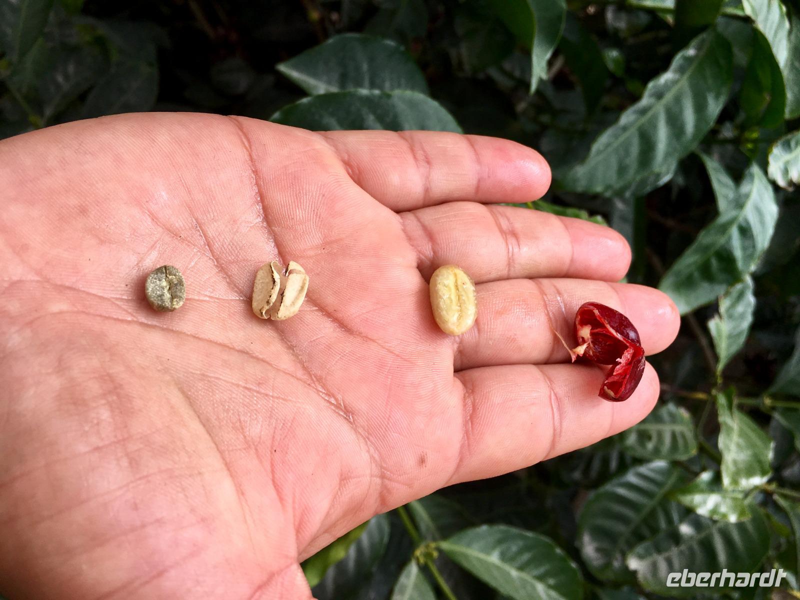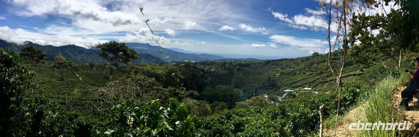 Unser charismatischer Panama Guide Christian ist auch schon hier und bald gehts los auf das Boquete Abenteuer. Bei der Finca Larida halten wir und werden von Cesar dem hiesigen Pflanzen und Vogel-Guru begruesst. Was fuer ein toller Mann, er weiss alles und wir sind allesamt von seinem Wissen hingerissen. In den 3 Stunden haben wir wieder vieles dazugelernt. Kollibirs haben uns begleitet, Quetzals haben sich gezeigt, Nageschnaebler und Mini-Toukane haben wir gesehen, Haemmerlinge gehoert. Aber auch von Baeume wie die Esche mit ihrem Hartholz, Ortecacea welche schoene rote Traubenfruechte traegt, Wuergefeigen welche von oben nach unten wachsen, Taubenbaeume mit den schoenen gelben Blueten, Tomatenbaeume deren Fruechte Saft wir zum Mittagessen serviert bekommen haben, und von vielen anderen Pflanzen haben wir nun Kenntnis erhalten. Nach so einem erfolgreichen Erkundungsspaziergang, meldet sich unser Magen nun auch wieder. Das Mittagessen auf der Finca ist wie im Film. «out of Costa Rica, by Eberhardt Films». Auf einer herrlichen Terrasse mit Sicht auf den Garten gibt es 4 Sachen zur Auswahl. Mmmmhhh. Nach einem Stuendchen gehen wir auf die Kaffee-tour. Cesar erklaert uns ganz genau wie man Kaffee gewinnt, woher die Pflanze kommt, wie man darauf kam einen Kaffee zu brauen, wo er nun angepflanzt wird, welche Sorten, wie und wann und warum. Wir koennen nun schon selbst eine Plantage gruenden, so versiert sind wir in dem Fach. Danach haben wir noch eine Kaffee-verkostung, ja, wie Wein oder Bier, aber eben Kaffee. Einatmen, Sippen, Ausatmen, der Duft entfaltet...aaahhh. Der billigste Kaffee hat uns am besten geschmeckt, sorry, Cesar. Nun gibt es noch Kaffee und Kuchen ehe wir die Finca Lareida verlassen. Noch einen Stopp im Supermarkt in Boquete und dann «nach Hause» in unsere Lodge. Wir sind heute Selbstversorger. Traeumen werden wir wohl von den 4 Quetzal die wir heute gesichtet haben, wo wir wohl eine Finca finden koennten mit einer Kaffeeplantage und wie man schleunigst auch so klettern und kraxeln lernt wie Christian !