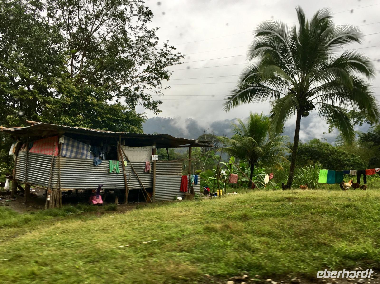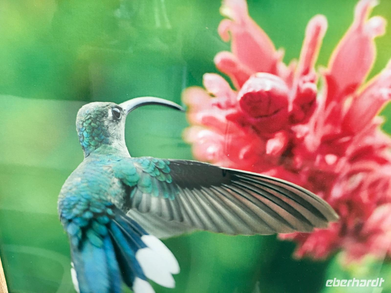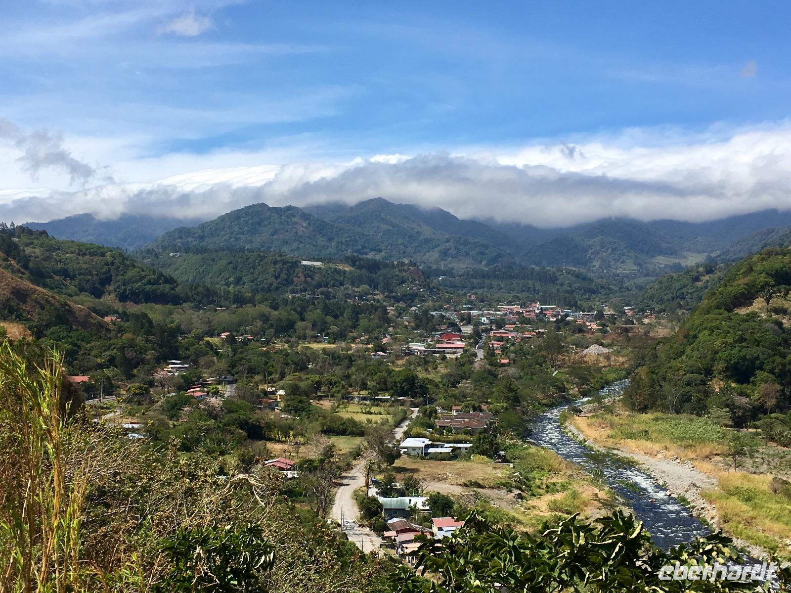 Heute gehts schon in der Frueh los, denn wir fahren nach Panama. So nehmen wir Abschied vom Pazifischen Ozean, steigen wieder in das Schnellboot ein und erreichen Sierpe eine Stunde spaeter. Nun muessen alle Koffer und Taschen vom Boot ausgeladen werden und sie stehen nun am Strassenrand. Da kommt ja auch schon unser neuer Bus, oh, ist der bloss fuer die Koffer ? oder bloss fuer Passagiere ? Nicht muede, hiefen nun Buschauffeur und Berny die 20 Koffer auf das Dach des Minibusses sodass sie dort oben, fest angebunden, die Reise mit uns nach Panama an der frischen Luft mitmachen koennen. Wir fahren wieder 1 ¾ Stunde durch Anbaugebiet bis wir an der Grenze sind. Dort stellen wir uns erst bei dem Emigration-Schalter an. Nach dem Obulus von 7 Dollar duerfen wir ueber die Strasse zirkeln um beim naechsten Schalter anzustehen. Dort wird uns ein Stempel in den Pass verpasst. Nun wieder in den Bus um bald beim panamenischen Grenzposten zu sein. Auch hier gibt es wieder die Moeglichkeit sich anzustellen. Dieses Mal muessen wir auch unsere Tickets aus Panama hinaus herzeigen. Die wollen wohl wissen, dass wir nicht nach Panama ausziehen sondern die Geschenkchen an die Daheimgebliebenen auch tatsaechlich hinbringen ! Nach Bild und Fingerabdruck bekommen wir auch hier einen Stempel in den Pass und werden entlassen. Christian ist der lokale Reiseleiter und er winkt uns freundlich zu. Ein Riesenbus erwartet uns mit Alberto dem Fahrer. Nach einem kurzen Mittagsessen in einem lokalen Restaurant fahren wir in Richtung Berge. Man sieht in schon, den hoechsten Vulkan in Panama Baru mit seinen 3450 MüM. Boquete liegt am Fusse dieses Vulkans und hier waechst auch einer der besten Kaffeesorten ueberhaupt. Morgen werden wir auf eine Kaffeeplantage gehen. Bald finden wir das Hotel, welches wunderbar im gruenen steht mit Sicht auf Boquete. Jeder hat sein eigenes Haeuschen mit Terrasse. Im nahegelegenen Restaurant haben wir das Abendessen reserviert und schauen noch lange den vielen lustigen Kollibris zu.