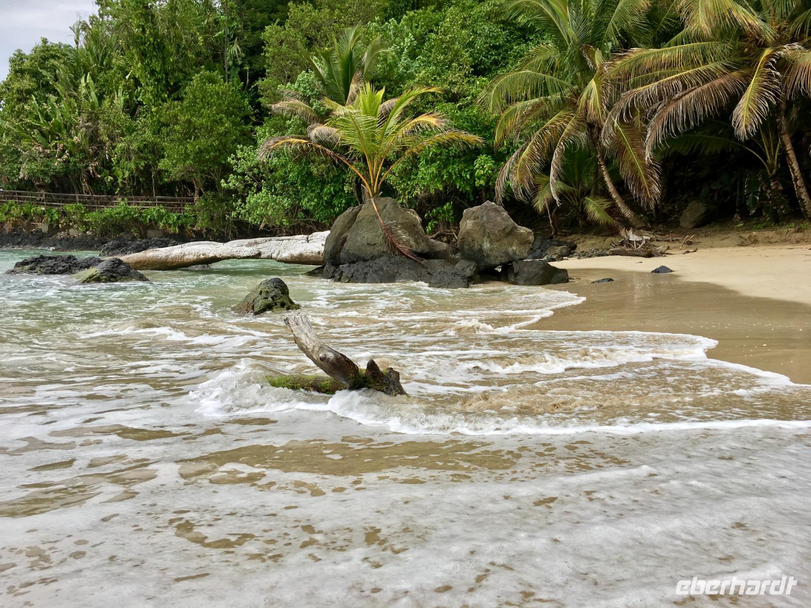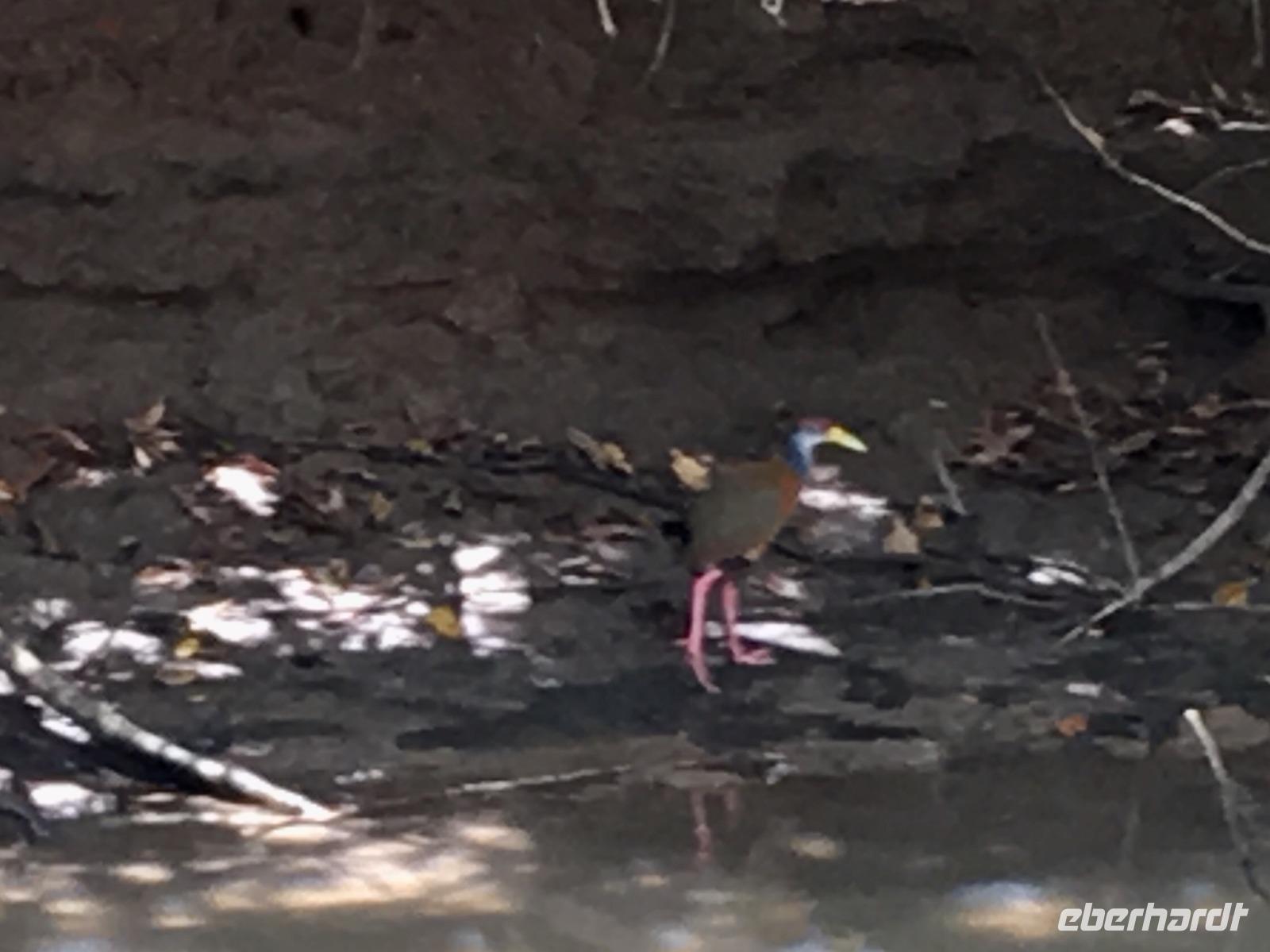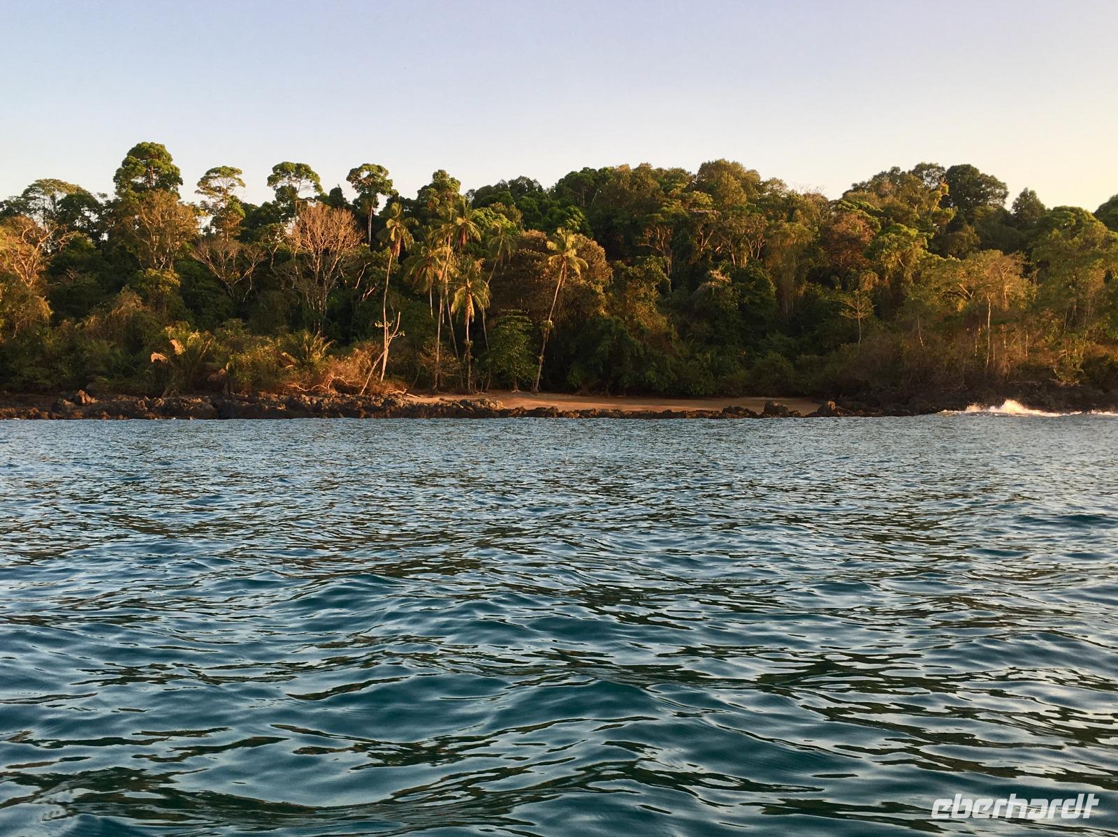 Pura Vida. Die Voegel pfeiffen uns wieder frueh aus den Federn und das Handy leuchtet schon wie wild. Es ist 5 Uhr !!! Bald kommt schon das Boot und bringt uns zum Fruehstueck ins Resort wo der Rest der Gruppe uns sicher schon sehr vermisst hat. Das Lancia-Schnellboot faehrt uns ueber tolle weite Wellen eine Stunde lang zum Corcovado Nationalpark. Dort angekomment huepfen wir wie die Gazellen ! aus dem Boot auf den Strand. Der Sand ist dunkel und etwa 40 Km lang aber bloss 20 Meter breit gesaeumt von Urwald. Keine Haeuser, Natur pur. Ploetzlich heisst es Statue - still stehen - nicht bewegen, denn ein Tapir spaziert gemuetlich dem Strand entlang. Alle Kameras werden gezueckt und wie wild haben wir alle das perfekte Tapir-Bild festgehalten. Wir sind so entzueckt und eigentlich fast mundtot geschlagen vor so viel Glueck.