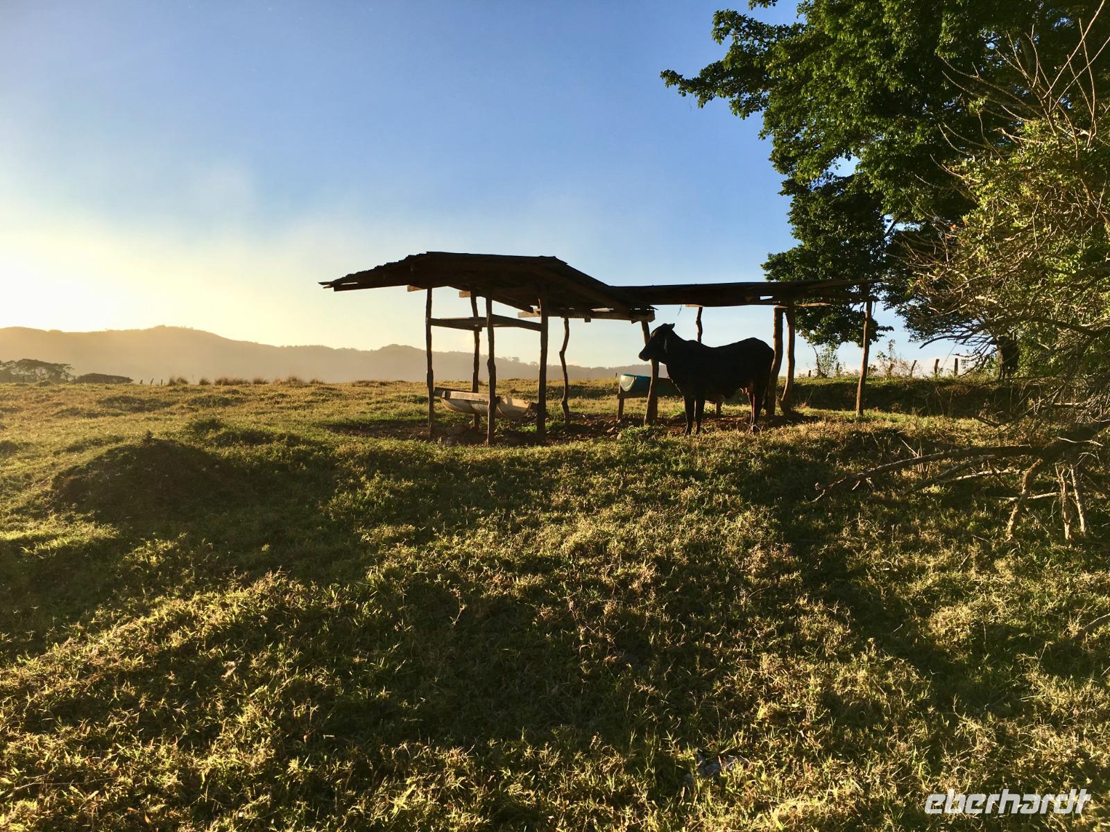 Schon um 6 Uhr frueh werden wir von wehementem Vogelgesang geweckt. So was schoenes, man braucht gar keinen Wecker. Dieses Gefuehl der Freiheit, inmitten der Natur ist einfach wunderbar. Wir werden echt ein Teil dieser Natur. Frohgemut geht es zum Fruehstueck heute gibt es „american breakfast", naja, der Panama Kanal war ja auch in amerikanischer Hand.....