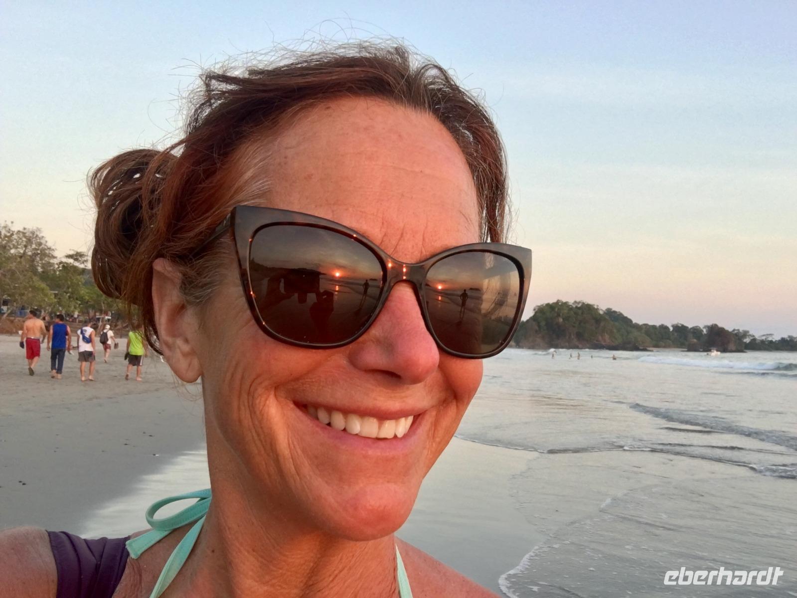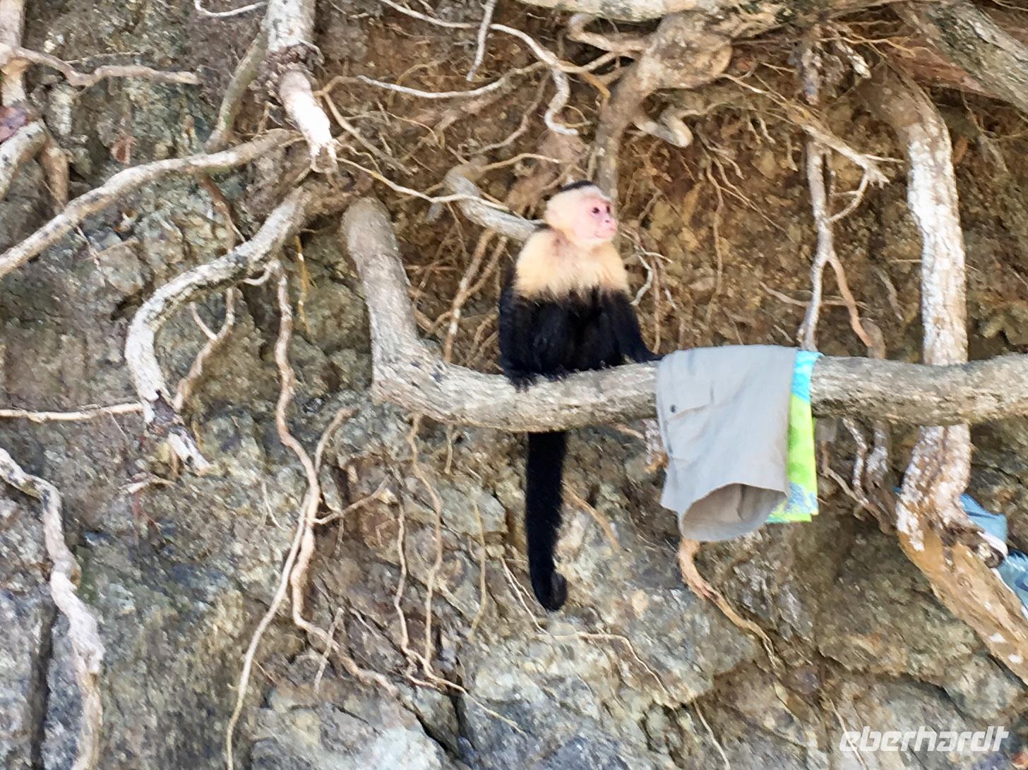 Na ja, die Nacht war nicht besonders, die Klimaanlage surrte laut und jene der Nachbarn auch. Wir sind auch in zwei Hotels aufgeteilt, die einen hatten eine laute Nacht, die anderen hatten dafuer ein mageres Fruehstueck. Trotzdem sind wir gutgelaunt schon frueh morgends unterwegs. Auch wir wollen in den tollen National Park von Manuel Antonio. Er ist mit seinen 55'000 ha Meeresflaeche und 683 ha Landflaeche der kleinste und auch der meist besuchte Park Costa Ricas. Wir versprechen uns nicht sehr viel davon denn wir sind ja wirklich verwoehnt worden mit den Schaetzen die wir schon zu sehen bekommen haben auf dieser Reise. Brav stehen wir in einer langen Schlange an und sind dann doch noch unter den ersten 600 Personen die heute in den Park duerfen. Er ist vollgepackt doch unser Berny findet auch hier wieder einen Weg, mit weniger Verkehr. Siehe da, ein Gift-Froeschchen, dieses Mal ist es aber nicht rot sondern auch wieder sehr klein, aber dunkelgruen mit hellgruenen Puenktchen drauf. Auch eine seltene Kameleon-Echse, viele Voegel und zwei Rehkitz ausser den vielen Faultieren, Bruellaffen und Kapuzineraeffchen zeigen sich. Nach guten 2 ½ Stunden wollen wir nun zum beruehmten Manuel Antonio Strand. Ach wie grosszuegig hier die Natur ist. Es ist einfach wunderschoen. Einige unter uns, wollen noch mehr im Urwald stoebern und andere finden ein schoenes schattiges Plaetzchen am Strand. Wir haben ein feines Sandwich mitnehmen duerfen. Es zu essen, ist jedoch schwierig. Am besten im Wasser, schwimmend ......denn 4 Kapuzineraeffchen haben sich der Picknick-Gruppe angeschlossen und sind richtig anhaenglich geworden. Vorerst ist das natuerlich suess aber dann werden die Kapuziner doch etwas laestig. Sie stehlen nun aus Frust alles moegliche, Bananen, Mandarinen und auch Sonnencremetuben und Huete. Die riesen Iguana-Mama mit ihrem Iguana-Kind ist auch ganz wild auf unser Mitgebrachtes. So hungern wir einfach dahin und lassen Sandwich, Apfel und Banane schoen verpackt im geschlossenen Rucksack. Damit ist das Affen- und Iguana- Theater abgeschlossen ! Ahhh das Meer, bei sicher 23 Grad koennte man die ganze Zeit bloss baden und plantschen. Die Sonne brennt immer heisser und trotz des Schattens wirds nun echt warm. So begeben wir uns noch auf eine Wanderrunde und kommen dann puenktlichst um 14:00 Uhr beim Bus an. Der Nachmittag und Abend ist heute frei und jeder gestaltet sich die Zeit selbst. Nur noch eine Nacht in dem lauten Dschungelzimmer, das halten wir durch haben wir beschlossen. Umziehen waere noch umstaendlicher. Traeumen wollen wir heute von dem tollen Strand und den lustigen Aeffchen. Gute Nacht.