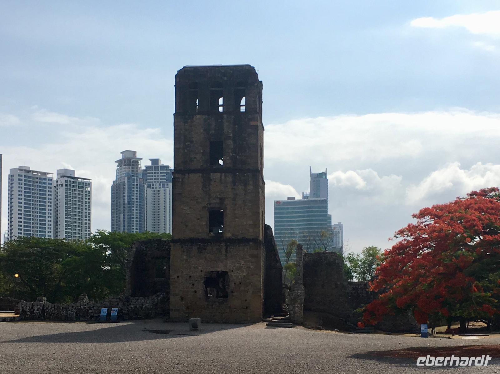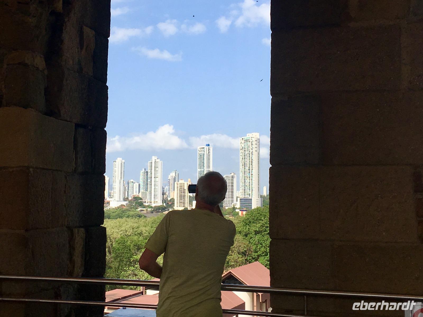 Jetzt ist der letzte Tag gekommen. Endlich nehmen wir auch das Fruehstueck im Hotel ein, bisher hatten wir immer bloss Box-Fruehstueck da wir in Panama City immer so frueh weg mussten. Unsere Koffer und Taschen werden im Hotel aufbewahrt und wir fahren auch gleich mit Christian und Nino zu den Ruinen der ersten Stadt. Einige Aussenwaende und Fundamente der Kloester sind noch erhalten sowie ein Turm des Santo Domingo Klosters. Wir steigen die vielen Treppen auf den Turm hoch und haben so eine herrrliche Aussicht auf die moderne Stadt. Im naheliegenden Museum wird die Geschichte dieses Landes sehr klar und deutlich erleutert. Anhand eines Stadt-models kann man sich ein gutes Bild machen, wie wichtig und einzigartig diese Stadt war. Sie war die erste Stadt auf diesem Kontinent und wurde von Piraten und Pluenderer sowie Eroberer und Oportunisten immer wieder heimgesucht, abgebrannt, angegriffen und zerstoert. Kaptain Morgan ist nicht bloss ein Name eines feinen Ruhms ! Wir sind Zeugen seiner Taten. Nach dieser Besichtigung gehts im angenehm gekuehlten Bus weiter nach Casco Viejo. Das ist die Altstadt heute ! Eine tolle, spanische kolonial Architektur wird uns hier geboten. Wir wandern durch die langen, geraden Gassen die gesaeumt sind von bunten Haeuser. Die meisten Haeuser sind lang und haben fast immer einen langen Balkon im 2. Stock. Ebenerdig sind oft Geschaefte, Bars und Restaurants. Autos kurven herum aber Spaziergaenger wie wir gibt es wenige. Christian hatte hier 1 ½ Jahre studiert und er zeigt uns «sein» Panama. Es ist herrlich, mal eine Stadtfuehrung ohne tausend Daten und Namen zu unternehmen. Nun sind wir aber muede von dem vielen herumgehen, schauen, spueren, tasten, aufnehmen und riechen. Aber hier steht er ja schon, unser Archimedes auch Nino genannt mit seinem blitzblanken, gekuehltem, weissen Bus und dem grossen Laecheln. Jeder serviert sich gleich von den angebotenen kalten Wasserflaeschchen und ab gehts zum Mittagessen beim Flamenco Hafen. Ach die Stadt, ist so schoen, die Skyline hebt sich heute toll zwischen dem Meer und dem hellblauen Himmel hervor. Das Restaurant ist urchig schoen und das 3-Gang Menu sehr fein. Bloss die Haelfte der Gruppe trinkt heute Bier und noch weniger moegen auch noch das Dessert. Gut gelaunt fahren wir zurueck zum Hotel wo wir uns nun umziehen koennen im Pool-bereich. Rrrumps, krach, plumps, toents ploetzlich. Ach herrje, der Stuhl ist explodiert auf welchem einer von uns stand fuer das perfekte Gruppenbild des Clubs. Mit bloss ein paar Kratzer am Bein fahren wir zum Flughafen. Da kommt der Punkt indem wir uns von Nino und Christian verabschieden muessen. Schoen war es mit ihnen. Einchecken ist kein Problem und unser Flug fliegt mit ein wenig Verspaetung welche der Pilot waehrend der naechsten 12 Stunden wieder einholen will. Wir haben alle eine sehr kurze Anschlusszeit und verabschieden uns deshalb schon im Voraus. Diese Costa Rica - Panamareise war voller Erlebnisse. Wir haben so vieles erlebt, so vieles gesehen und gelernt. Zentral Amerika und seine wilde Natur ist nun in unserem Gedankengut verankert. Ein Schmunzeln zeichnet sich auf unser Gesicht wenn wir an die 3 vergangenen Wochen denken. Danke liebe Gaeste fuer die wunderschoene Zeit mit Euch und danke Club fuer die tolle Vogelkunde. Wir werden alle von nun an ganz anders in die Baeume schauen und wie Hans-Guck-in-die-Luft spazieren gehen ! Danke auch an das ganze E-Team fuer die Gestaltung dieser fantastischen Reise. Wir sind allesamt begeistert. - Elisabeth