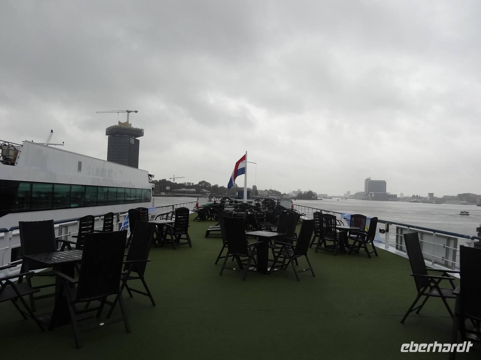 Am Vormittag erkundeten wir die moderne Stadt Rotterdam bei einer Rundfahrt mit kurzem Fotostopp. Wir lernten einiges über die zweitgrößte Stadt der Niederlande und waren von den Hochhäusern, aber auch von der weiteren Architektur, beeindruckt. Vor dem Mittagessen hatten wir noch Zeit für einen kleinen Spaziergang. Dann legte das Schiff schon wieder ab in Richtung Amsterdam, sodass wir den Nachmittag wieder an Bord verbrachten. Da Petrus an diesem Tag gnädig mit uns war und uns Sonnenschein schickte, verbrachten viele Gäste die Fahrt auf dem Sonnendeck und ließen die vorbeiziehende Landschaft auf sich wirken. Auch heute konnten wir uns wieder Kaffee und Kuchen schmecken lassen. Nach dem Abendessen legten wir in Amsterdam an und einige wagten einen Abendspaziergang, der leider von einem Regenguss überschattet wurde. Daher ließen viele den Abend dann doch im Salon ausklingen.