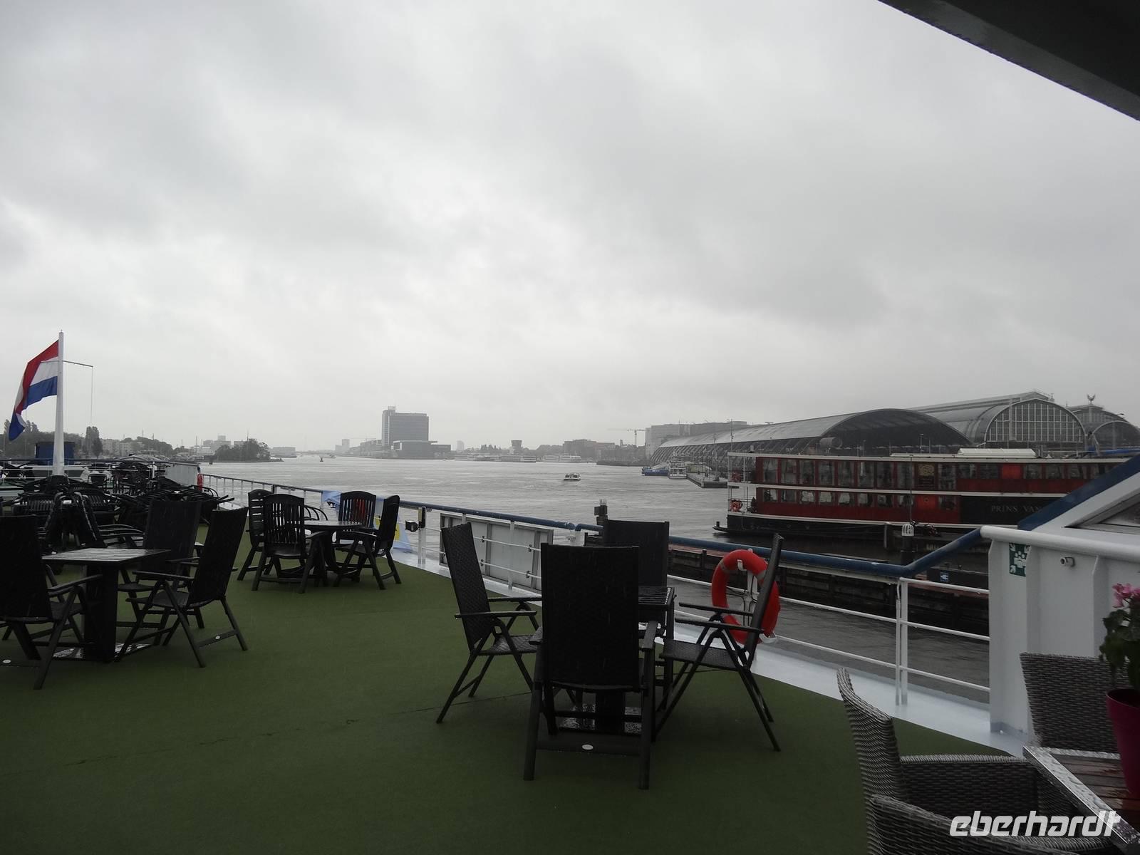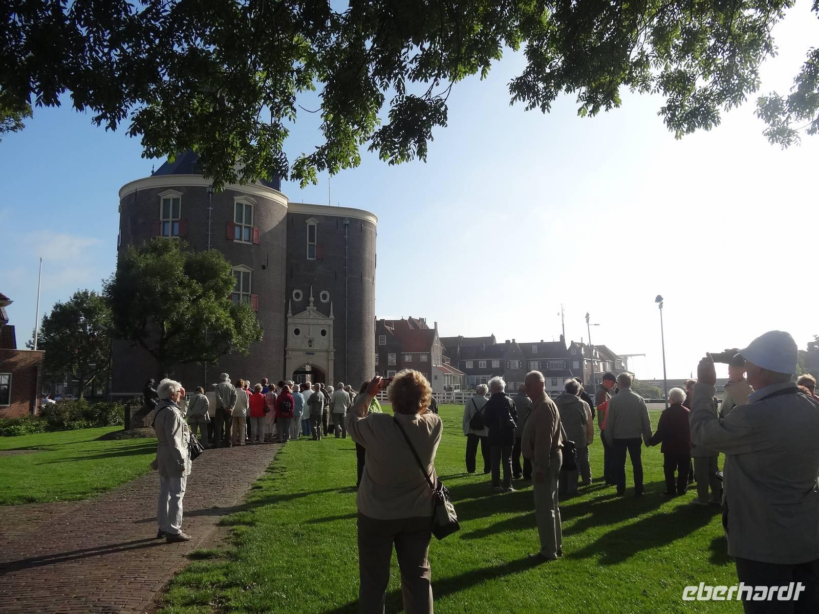 Heute stand eine Stadtrundfahrt in der Hauptstadt der Niederlande, Amsterdam, an. Wir legten einen kurzen Stopp an einer noch erhaltenen Windmühle ein, die typisch für die Niederlande sind. Amsterdam ist bekannt für seine Grachten, was nichts anderes als Kanal bedeutet. Anschließend an unsere Rundfahrt stiegen wir um in ein kleines Glasboot, um die Stadt auch noch mal aus der Wasserperspektive zu erkunden. Nach dieser kleinen Bootstour brachte uns der Bus wieder zurück zum Schiff zum Mittagessen. Danach war noch Zeit für einen Verdauungsspaziergang, aber leider regnete es mal wieder, sodass die meisten sich doch entschlossen, auf dem Schiff zu bleiben. Am Nachmittag legte die Rigoletto dann über das Markermeer ab in Richtung Enkhuizen. Kurz vor Ankunft gab es noch eine Besonderheit, die uns alle in großes Erstaunen versetzte. Da gab es doch tatsächlich eine Brücke mit Wasser für die Schiffe. Die Straße verlief darunter. Wir trauten unseren Augen kaum und fragten uns, was wohl die Autofahrer denken, wenn sie über sich ein Schiff sehen. Aber die Anwohner sind das sicherlich gewöhnt. Ein weiterer Höhepunkt erwartete uns am Abend: Die Show der Crew. Es war ein lustiger und unterhaltsamer Abend. Einige hatten auch Glück mit ihren Tombola Losen und gewannen schöne Preise.