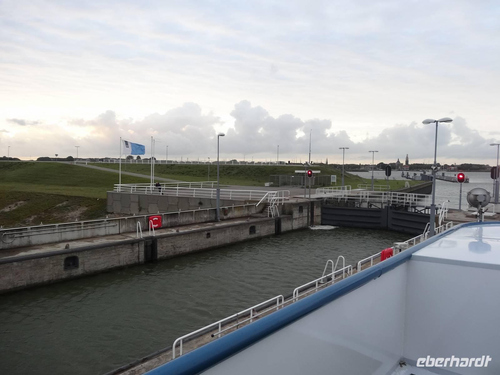Am Vormittag lernten wir den Ort Enkhuizen bei einer Stadtführung kennen. Er liegt am Ijsselmeer und ist besonders bei Seglern beliebt. Das merkten wir schon früh, da im Hafen sehr viele Segelboote zu finden waren. Uns blieb anschließend noch genug Zeit zum Entspannen am Hafen oder auch zum Einkaufen von Käse oder Souvenirs. Über das Ijsselmeer und den Fluss Ijssel fuhren wir am Nachmittag nach Deventer. Durch das schöne Wetter hatten wir wieder die Möglichkeit, die Landschaft von der Sonnenterasse zu genießen. Wir konnten die Segler auf dem Ijsselmeer beobachten und waren erstaunt, wie viele Wildgänse sich an den Ufern der Ijssel wohl fühlen. Aber auch Schafe und Pferde waren dort anzufinden. Abends legten wir in Deventer an und viele gingen in Richtung Stadt. Da ja gerade Samstag war, war natürlich einiges los. Die vielen Straßencafés waren gut gefüllt und auch auf dem Marktplatz war eine Veranstaltung, wahrscheinlich eine Art Open Air Kino.