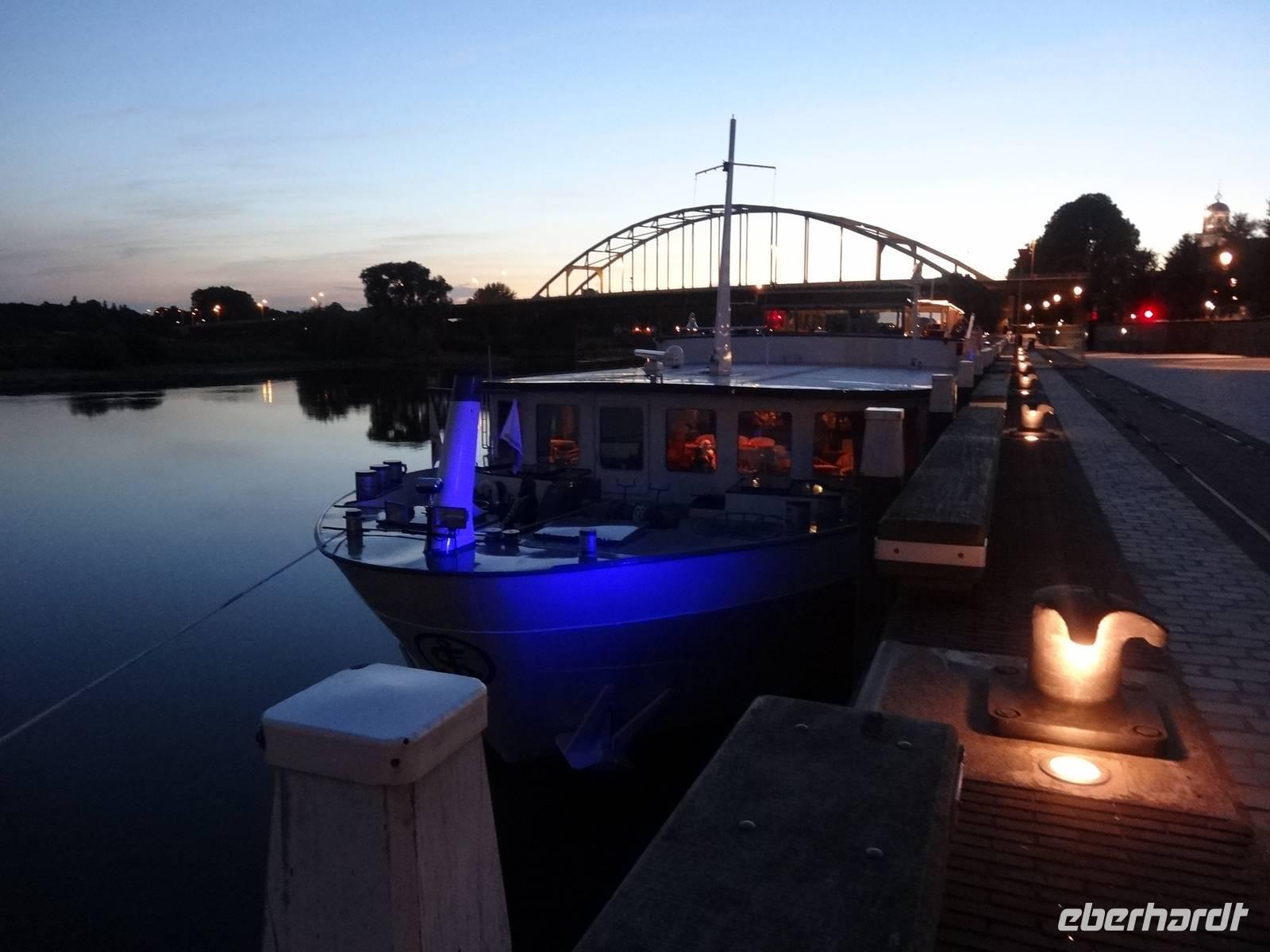 Früh zeitig legten wir in Deventer ab und fuhren auf der Ijssel weiter in Richtung Zutphen. Dort angekommen, wartete unser Bus, um uns nach Apeldoorn zum Palais Het Loo zu fahren. Wir fuhren durch die Stadt zum Schloss, welches früher die Sommerresidenz der Oranier, der niederländischen Königsfamilie, war. Berühmt geworden ist es durch seinen Barockgarten, welchen wir bei einer Führung näher kennen lernten. Danach blieb uns genügend Zeit, das Schloss oder auch den Garten zu erkunden. Mit unserem Besuch hatten wir sogar einen Glücksgriff, denn genau um die Zeit fand eine Parade mit historischen Fahrzeugen und Kutschen statt. Diese Veranstaltung ist nicht regelmäßig, nur zu ausgewählten Terminen. Manchmal muss man eben auch Glück haben! In Arnheim gingen wir wieder aufs Schiff und am Nachmittag führte uns die Fahrt weiter auf dem Rhein in Richtung Deutschland. Zum Kaffeetrinken bekamen wir schon die Informationen über die Ausschiffung, denn am nächsten Tag sollte unsere Reise bereits zu Ende sein. Aber vorher stand noch das Kapitänsdinner an. Der Kapitän lud zum Umtrunk in den Salon und verabschiedete sich. Danach bekamen wir ein leckeres 6-Gang-Menü im Restaurant serviert und konnten den Abend wie immer im Salon bei Livemusik ausklingen lassen.