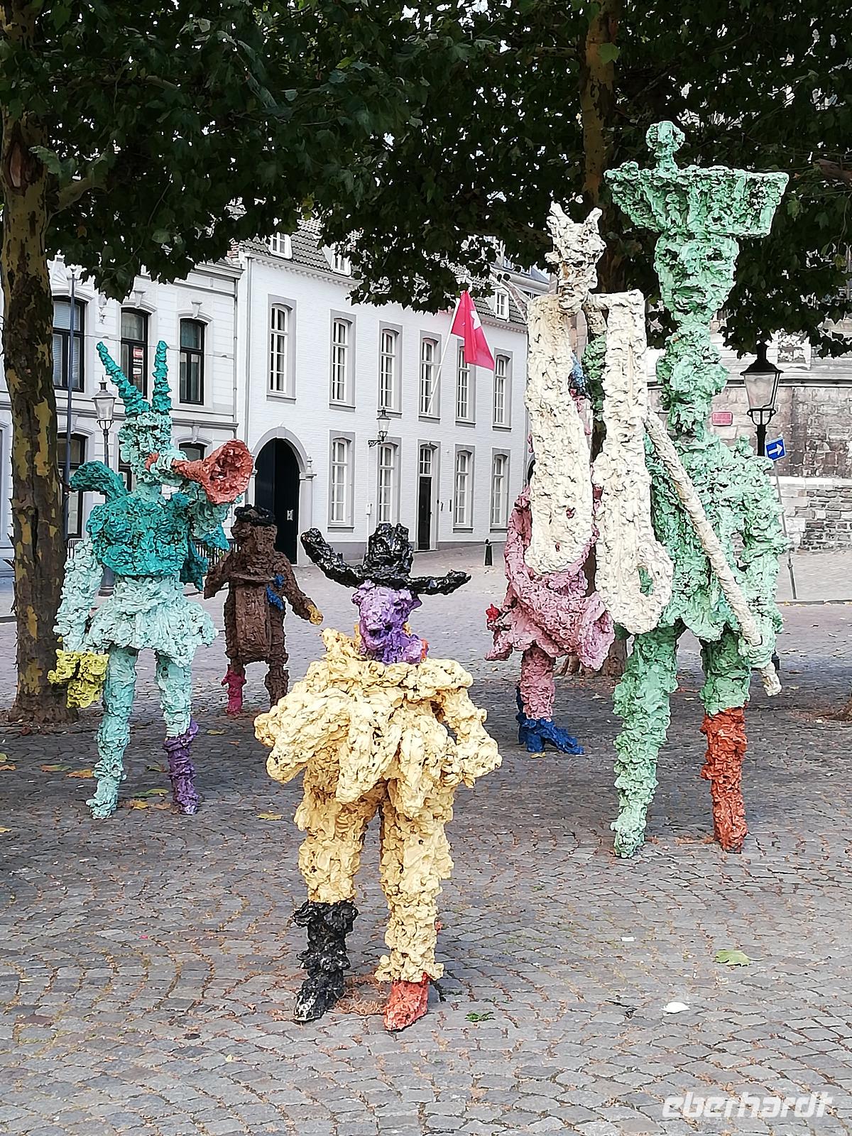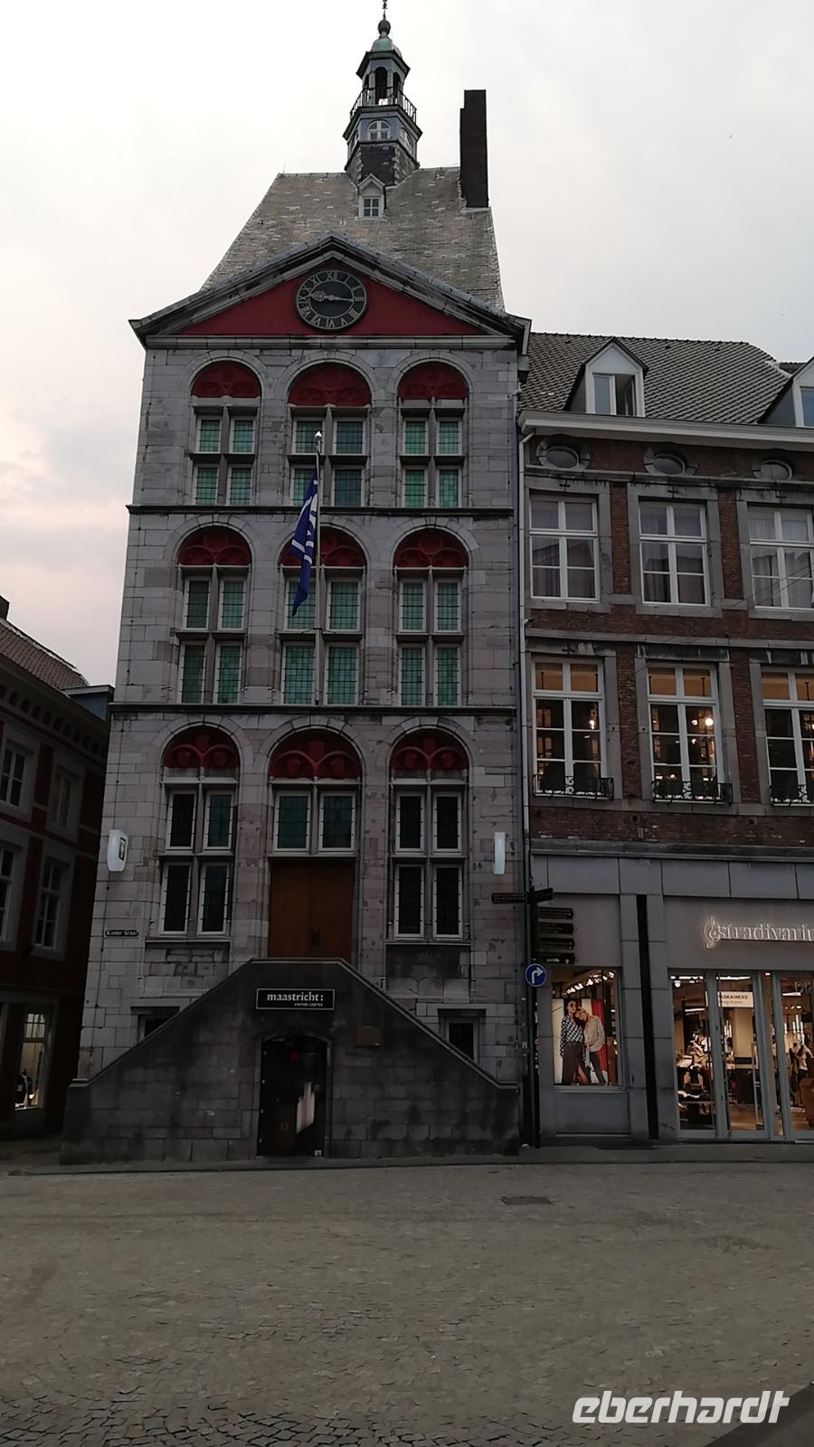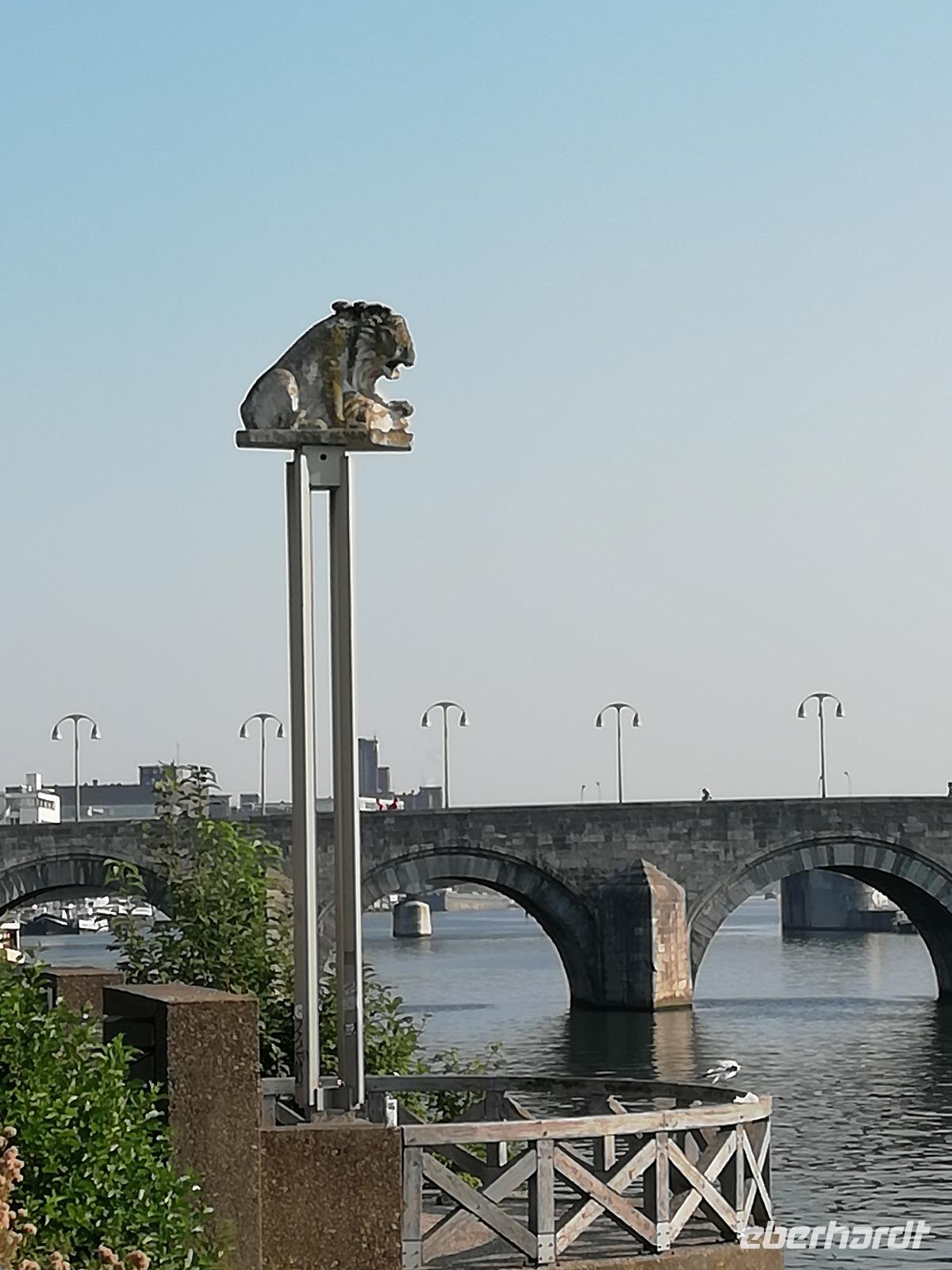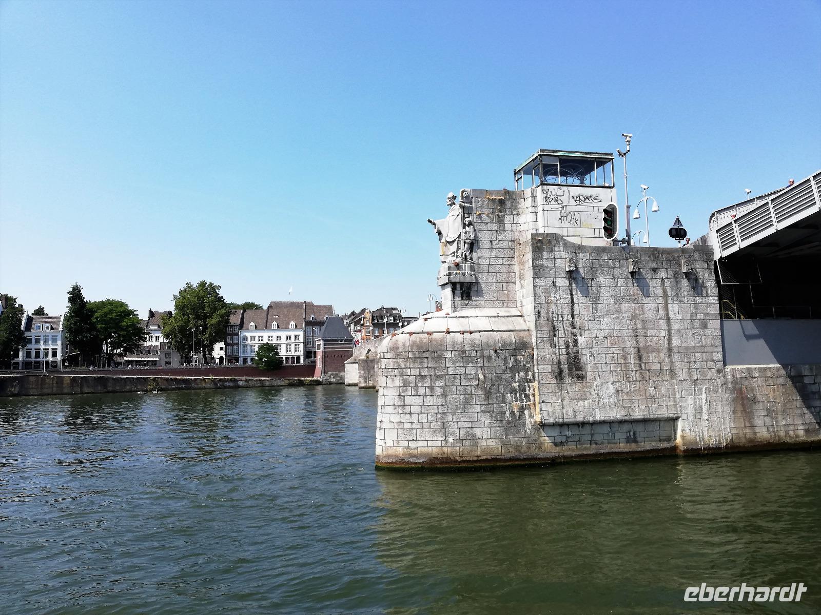 Die Maas ist ein Fluß mit vielen Gesichtern. Die Römer erbauten an einer Furt Trajactum ad Mosam, das spätere Maastrich. In der Nähe der Schiffsanleger schaut ein Löwe von einer Säule über den Fluß. Bei der Wilhelminabrücke gelangt man durch den Mosae-Forum-Komplex zum Marktplatz, in dessen Zentrum das Rathaus von Pieter Posts (1664) steht. Ein Denkmal von Jan Pieter Minkelmeiers mit einer ewigen Flamme in der Hand (Erfinder des Leuchtgases) lenkt die Kameras auf sich. Wunderschön auch der Vrijthof, der berühmteste Platz des Ortes mit alten Pflastersteinen gedeckt. Hier werden im Sommer viele Konzerte und Theater abgehalten.