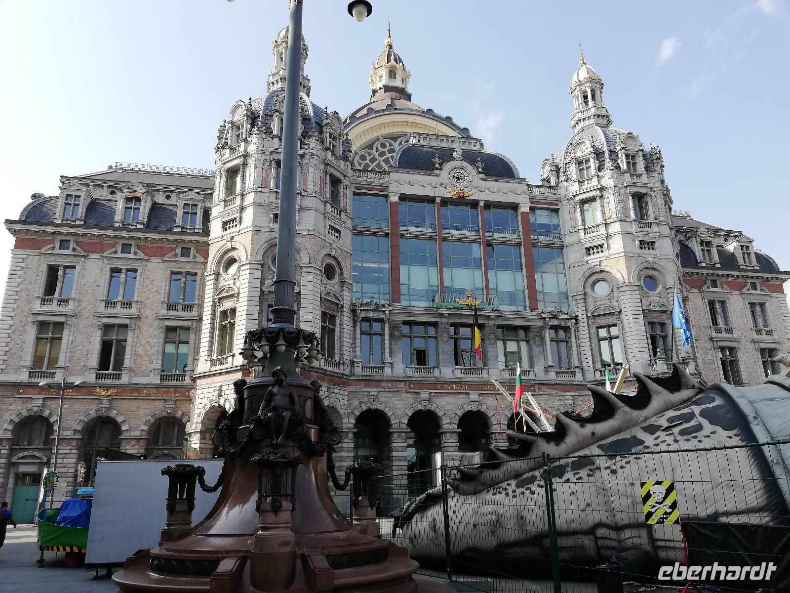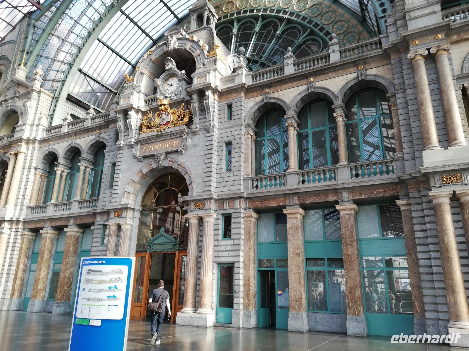 Erster Ausstieg am viertschönsten Bahnhof der Welt, er liegt am Astridplein - östlich der Altstadt- unmittelbar neben dem berühmten Zoo. Hier kommen täglich bis zu 540 Züge an. Der Bauart her ist er ein Kopf- und Tunnelbahnhof, vom Architekten Louis de la Censerie - 1905 eröffnet. In einer vielzahl von Filmen diente er als Kulisse, z.B. De zaak Alzheimer oder Lost Memory- Killer ohne Gedächtnis und König Leopold II meinte, als er ihn sah:" C'est une petite belle gare"-das ist ein netter kleiner Bahnhof.