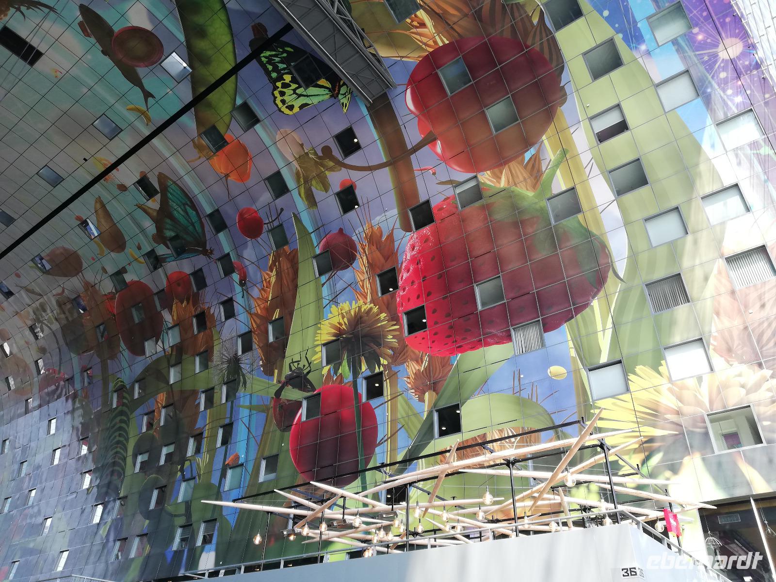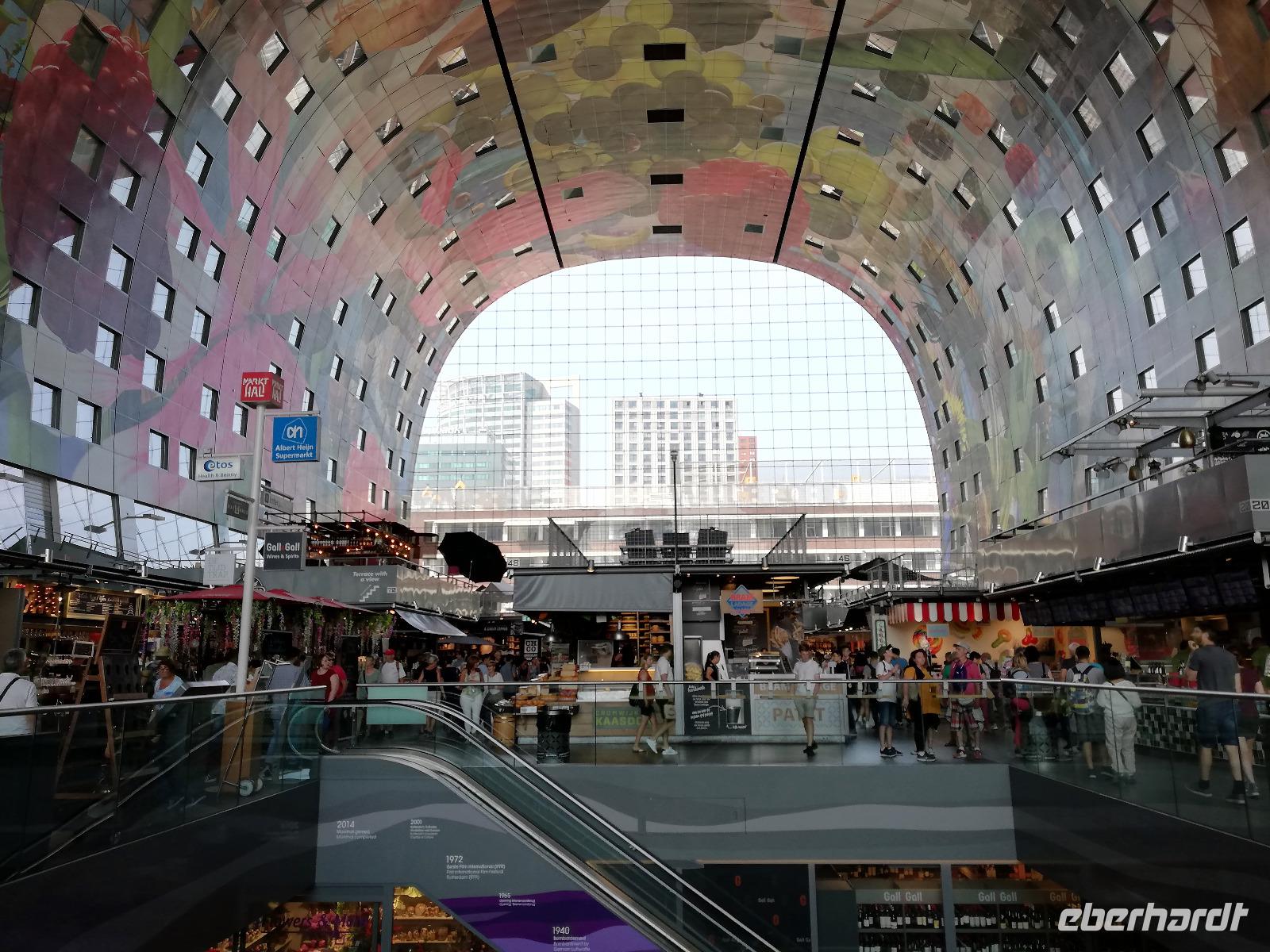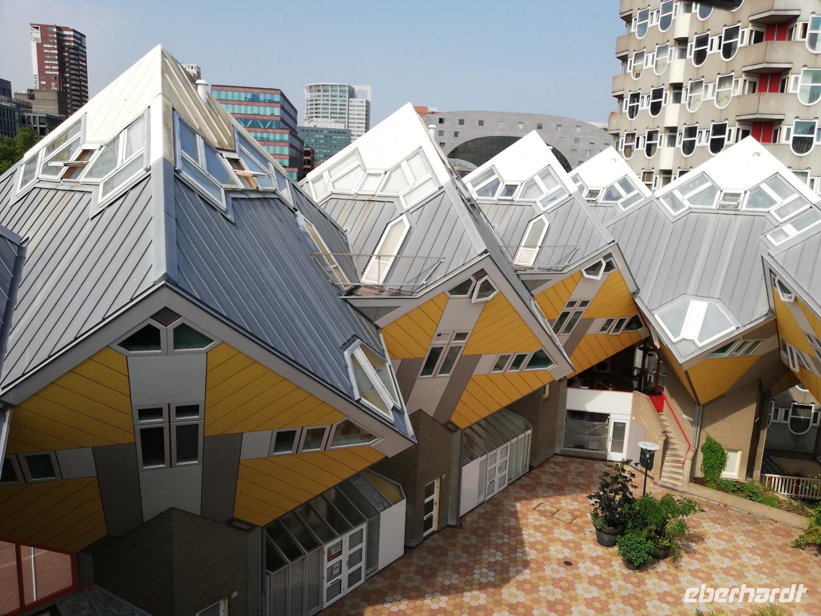 In der Freizeit besichtigten wir die Kubushäuser - eine originelle Siedlung im Stadtteil Blaak von auf jeweils einer Spitze stehenden würfelförmigen Einzelhäusern. Die 1984 von Piet Blom errichteten Häuser werden von den Rotterdammern als Sechskanthäuser bezeichnet. Gleich daneben befindet sich der architektonisch ungewöhnliche Bahnhof Blaak und die Markthalle.