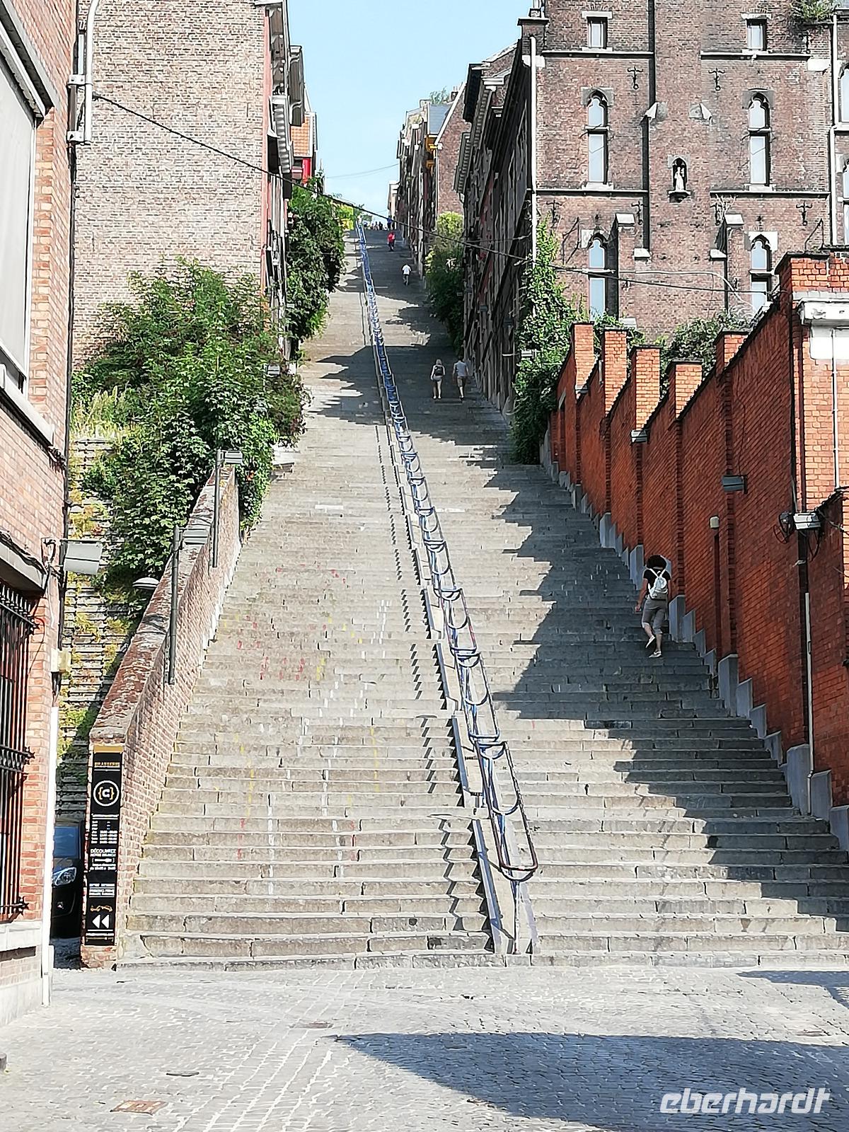 Am zeitigen Morgen verlässt unser Schiff Kanne in Richtung Lüttich an der Maas. Hier erwarteten uns pünktlich 9.30 Uhr die Gästeführer am neogotischen Bischöflichen Palais. Er dient heute hauptsächlich als Justizpalast. Im Innenhof kann man noch die alten Kreuzgänge betrachten. Weiter spazierten wir über den Markt zu der berühmten Montagne de Bueren (Treppe mit 374 Stufen). Grund der Erbauung war das schnellere Erreichen von Armee und Feuerwehr der Unterstadt bei Notfällen. Durch idyllische enge Gassen aus dem Mittelalter schlenderten wir weiter an der Brauerei, der romanischen Stiftskirche St. Bartholomäus, dem Herrenhaus Grand Curtius aus dem 17 Jhd. (Museum Kunstschätze) , Schulen und Restaurants. In unserer Freizeit genossen wir die mit Zucker überzogenen Liége Waffeln oder Eis.