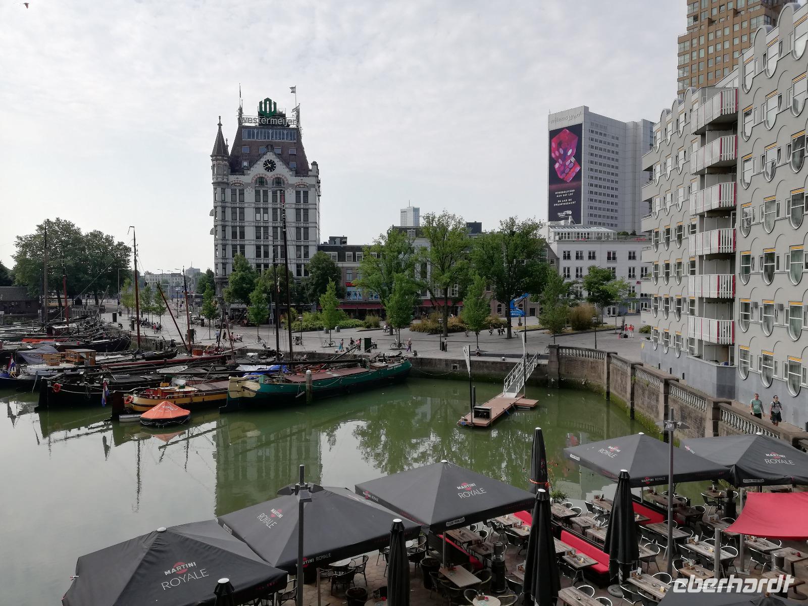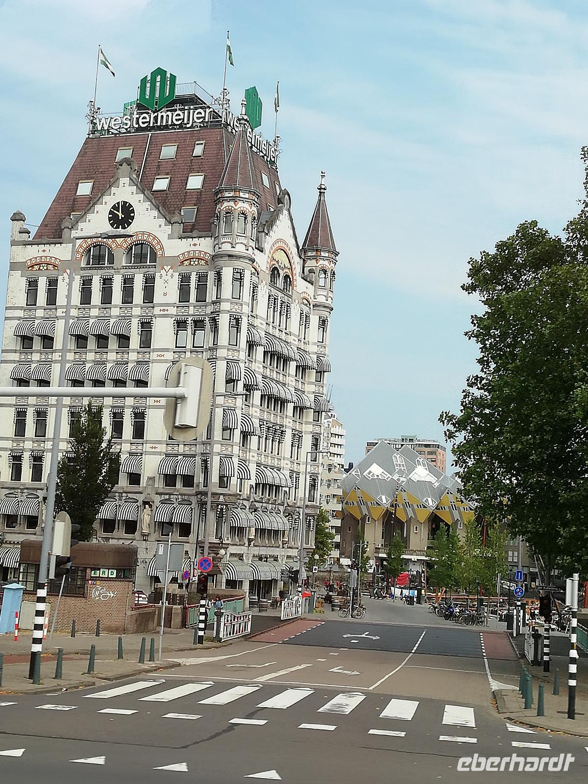 Diesmal haben wir Leo als Stadtführer für die EHT-Gruppe. Die Sonne brennt und wir genießen die Klimaanlage unseres Reisebusses. Rotterdam verfügt über eine Universität, mehrere Fachhochschulen, eine Musikhochschule und eine Kunstakademie. Sie ist die führende Industrie- und Handelsstadt der Niederlande. Auffällig ist die Rotterdamer Wolkenkratzer-Silhouette (fast wie Frankfurt am Main??), die sich seit Mitte 1980er-Jahre entwickelt hat.
