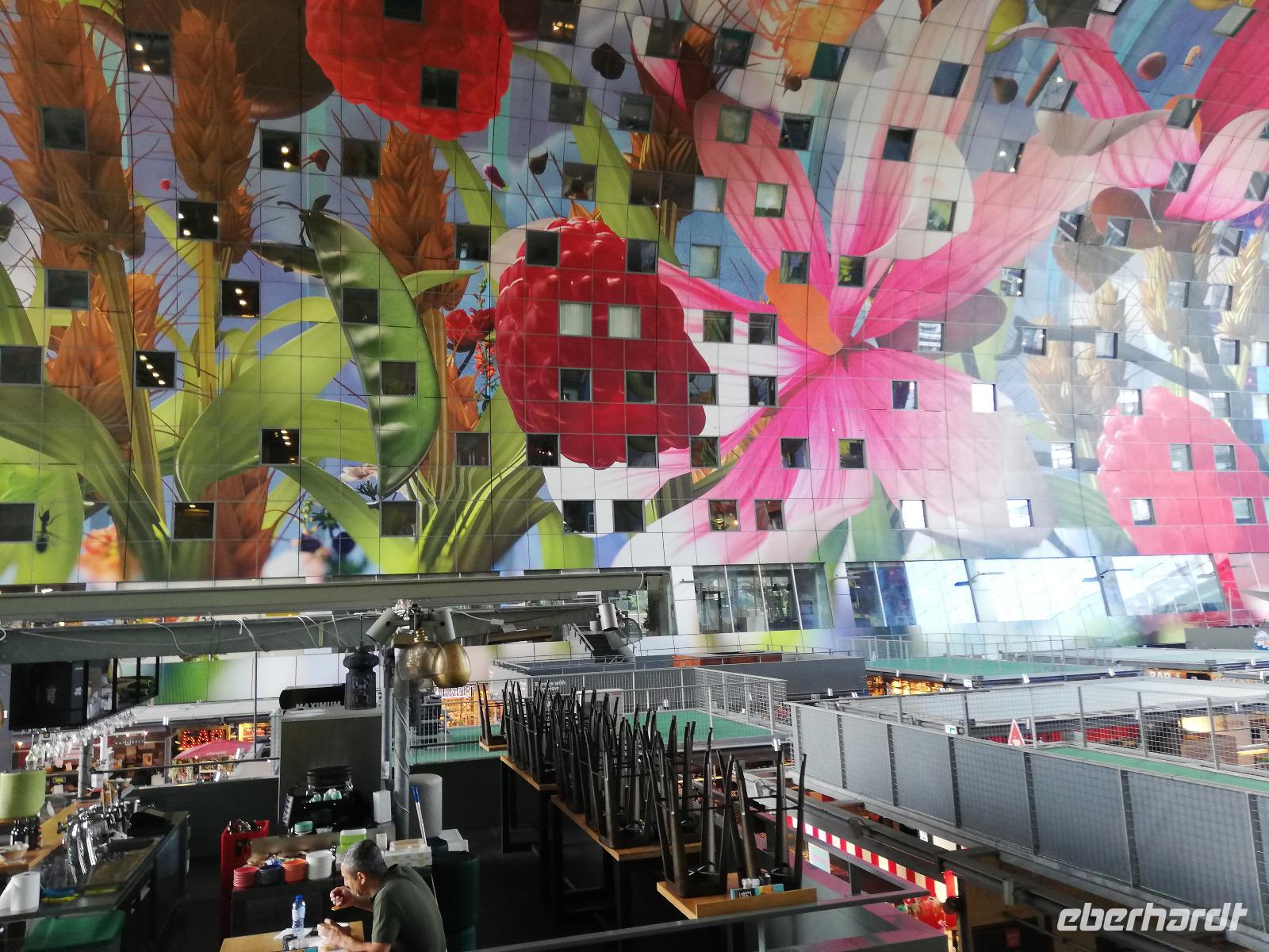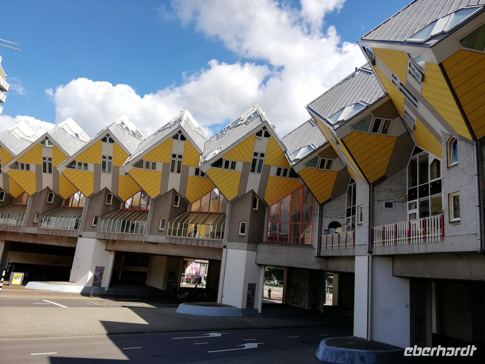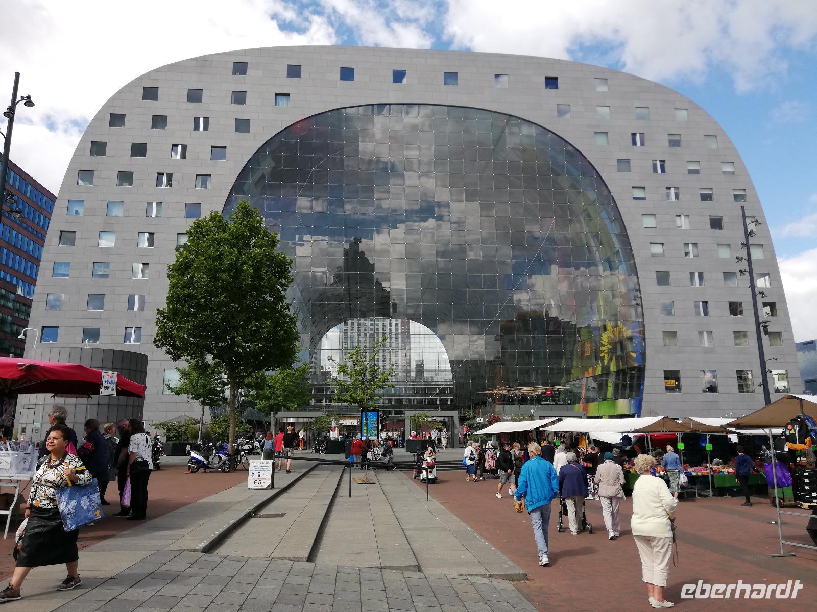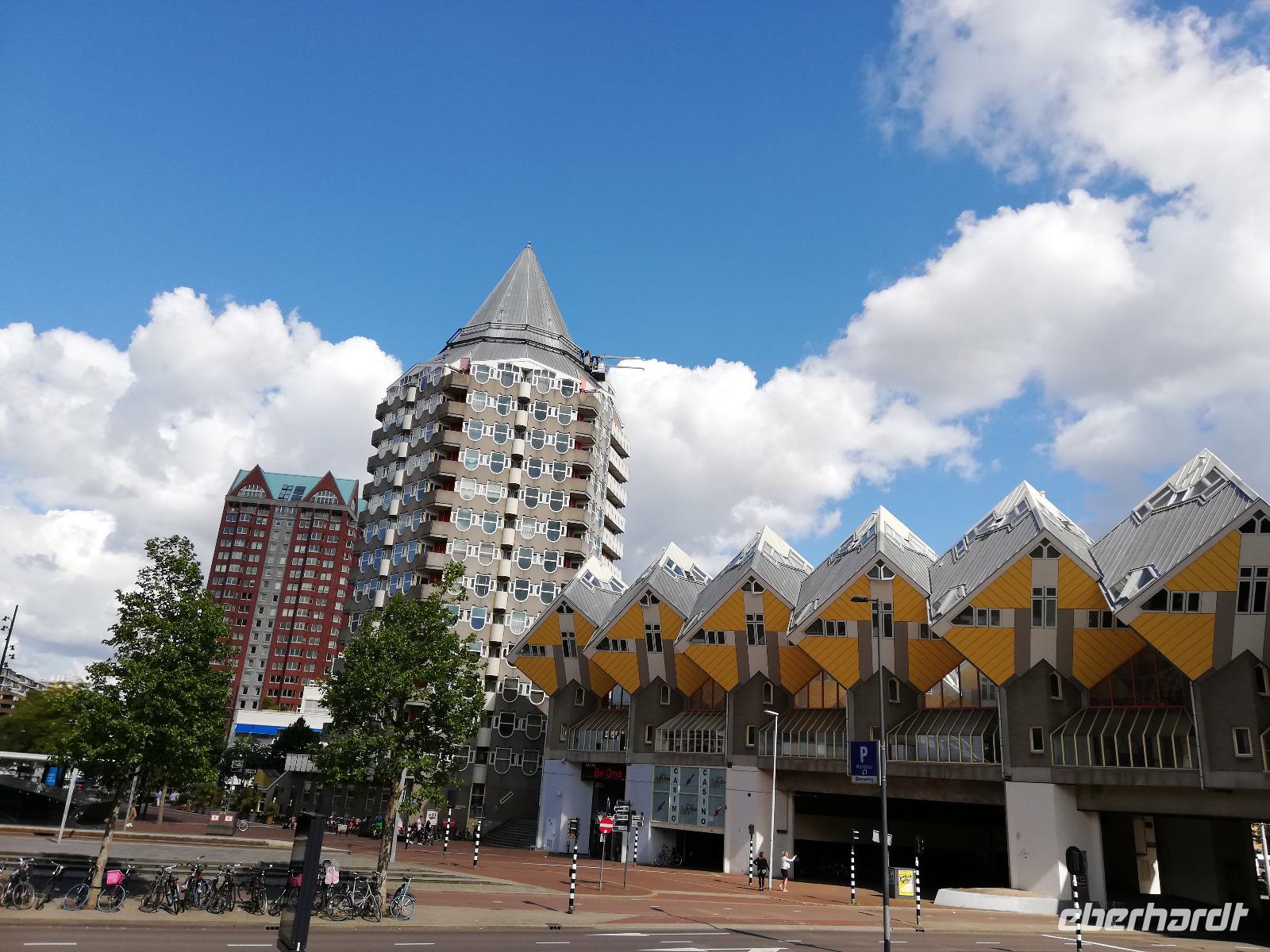 Einige Gäste sind am frühen Morgen auf Deck, wir sind in Rotterdam angekommen und man kann vom Schiff aus die Ruhe genießen, die in der Stadt noch vorherrscht. Wir stehen direkt vor der Erasmusbrücke, die über der neuen Maas das Stadtzentrum mit dem Kop van Zuid verbindet. Die Brücke ist ein neues Wahrzeichen der Stadt und wurde am 04.09.1996 eröffnet. Die Fotografen haben ihre Freude, diesen Bau am frühen Morgen zu fotografieren. Nach dem Frühstück gegen O9.00 Uhr beginnen wir mit unserer zweistündigen Stadtrundfahrt. Unsere Stadtführerin(Ulla) gebürtige Deutsche aber leidenschaftliche Holländerin überrascht uns mit den vielen Informationen zur Stadt und den Liedern der Hafenarbeiter. Erläuterung übermittelt Sie in Reimform. Ulla kann man nicht so schnell vergessen. Wir hatten viel Glück, dass sie uns durch ihre Stadt geführt hat. Während der Führung erfahren wir, dass Rotterdam die zweit größte Stadt der Niederlande und aufgrund des größten Seehafens Europas, auch ein bedeutender Verkehrsknotenpunkt, ist. Einen Zwischenstopp legen wir am Hotel New York ein. Wir sind im Süden der Stadt angekommen und erfahren, dass in dem heutigen Hotel die Unterkunft für Amerika-Emigranten war. Nach den 2 Stunden Stadtrundfahrt bleibt noch Zeit um die Markthalle, die Kubushäuser oder auch den alten Hafen zu besichtigen.