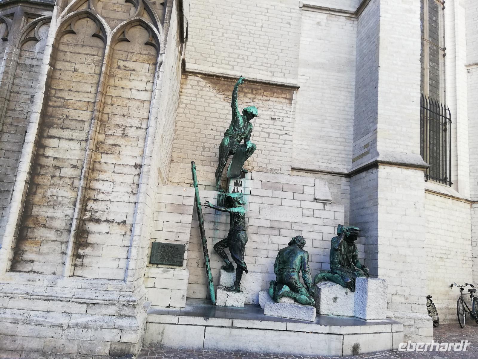 Unserer Fahrt nach Westflandern führt uns an Gent vorbei. Andrea informiert, dass für die Kunstliebhaber der Genter Altar (das großartigste Werk der altflämischen Malerei) allein schon eine Reise nach Gent wert ist. Die Tafeln sollen von Hubert van Eyck um 1420 begonnen und von seinem Bruder Jan van Eyck um 1432 vollendet worden sein. Ein Grund für uns nach Belgien zurück zukommen. Für heute reicht die Zeit für den Besuch von Gent nicht.