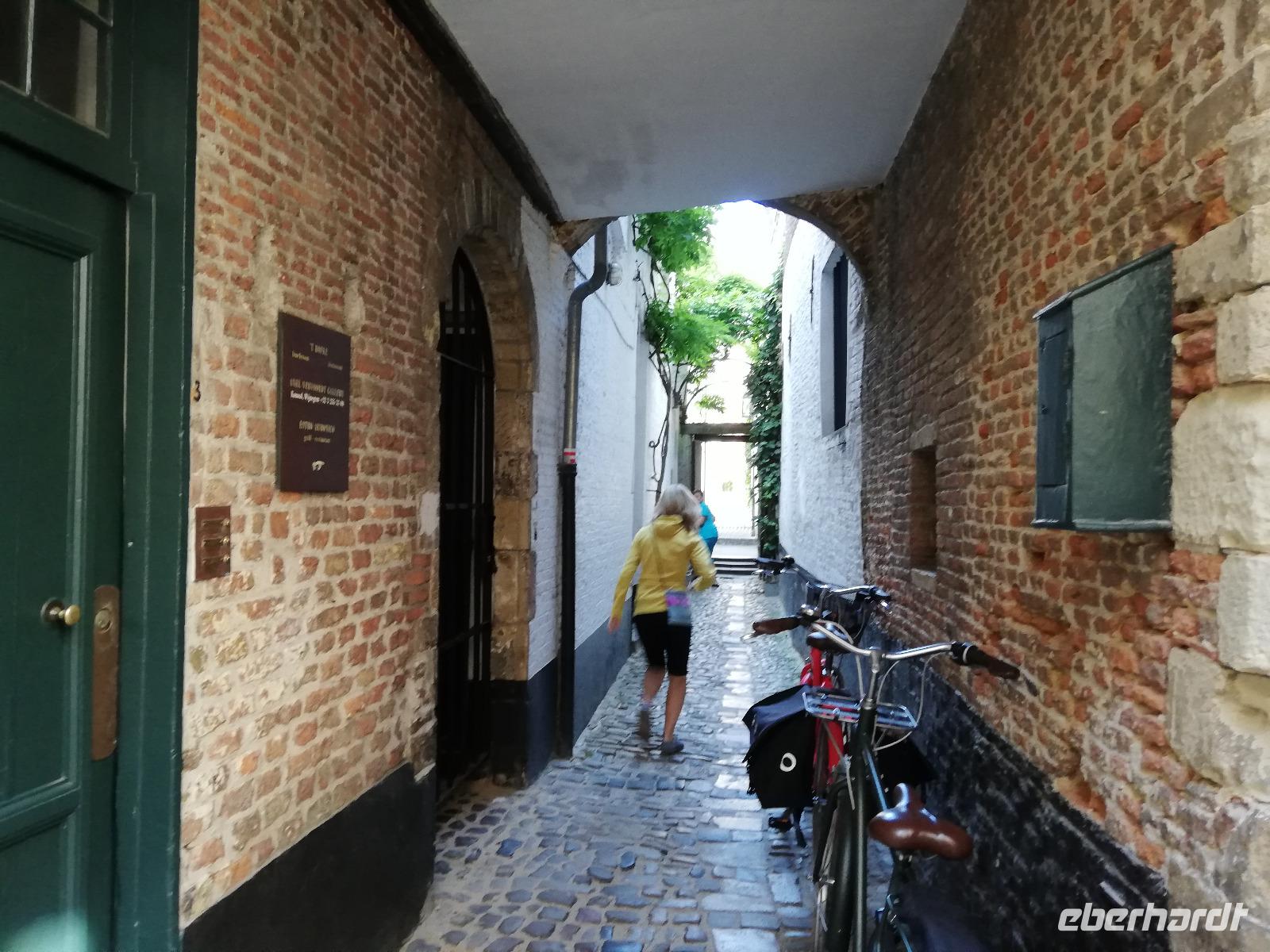 Der Gang durch die Gassen der fast vollständig mittelalterlich gebliebenen Innenstadt ist zauberhaft. Dabei sind die Schwerpunkte der Begijnhof, die Liebfrauenkirche mit der „Madonna von Brügge" von Michelangelo, der Burg (war ursprünglich der zentrale Platz von Brügge) mit dem Rathaus und der Heiligblutkapelle und dem Grote Markt mit dem Bellfried.