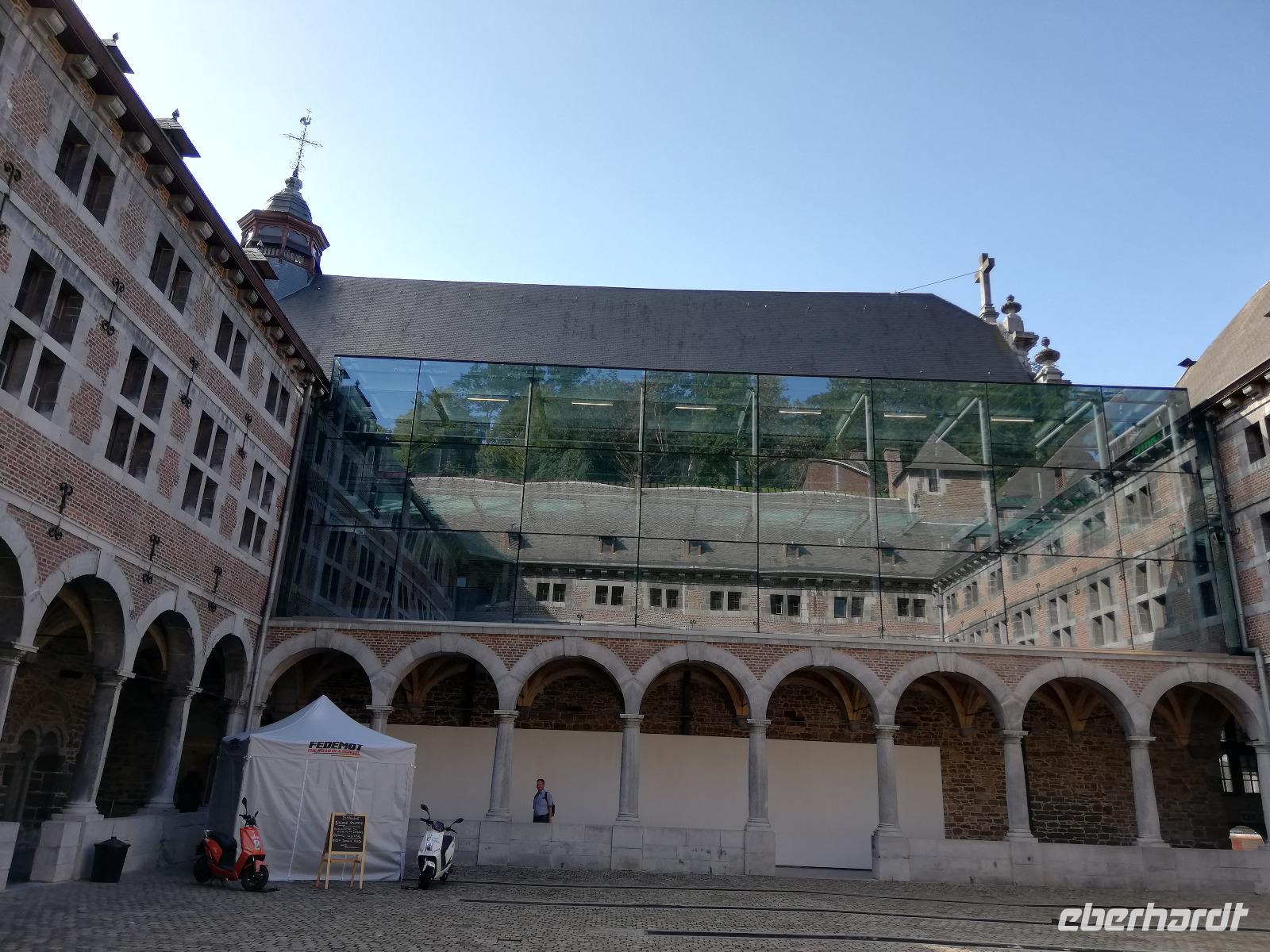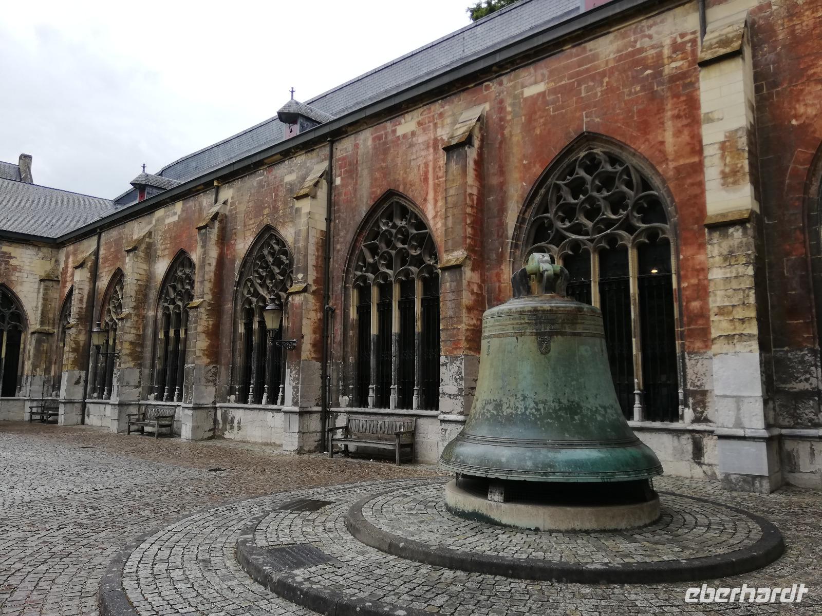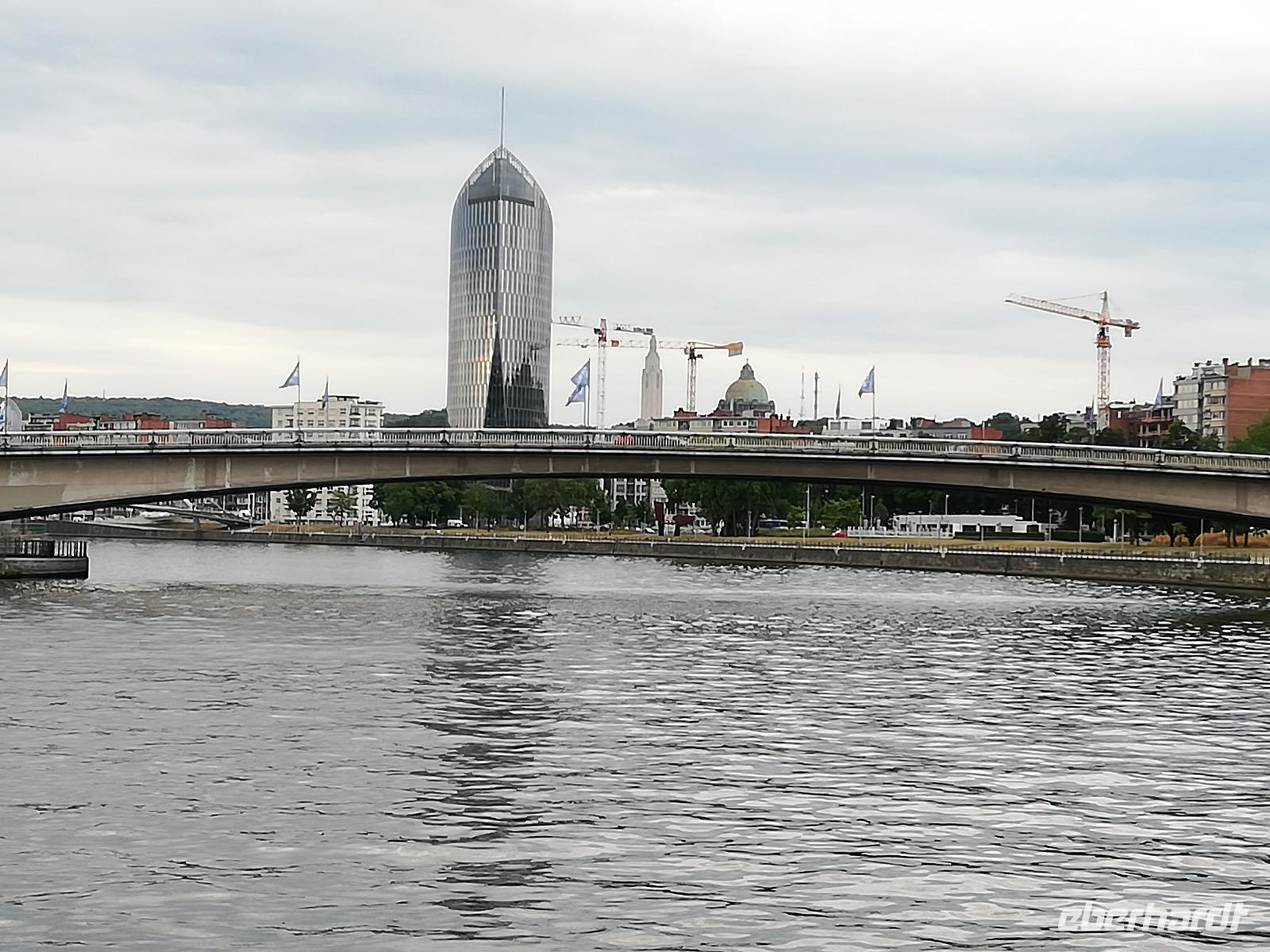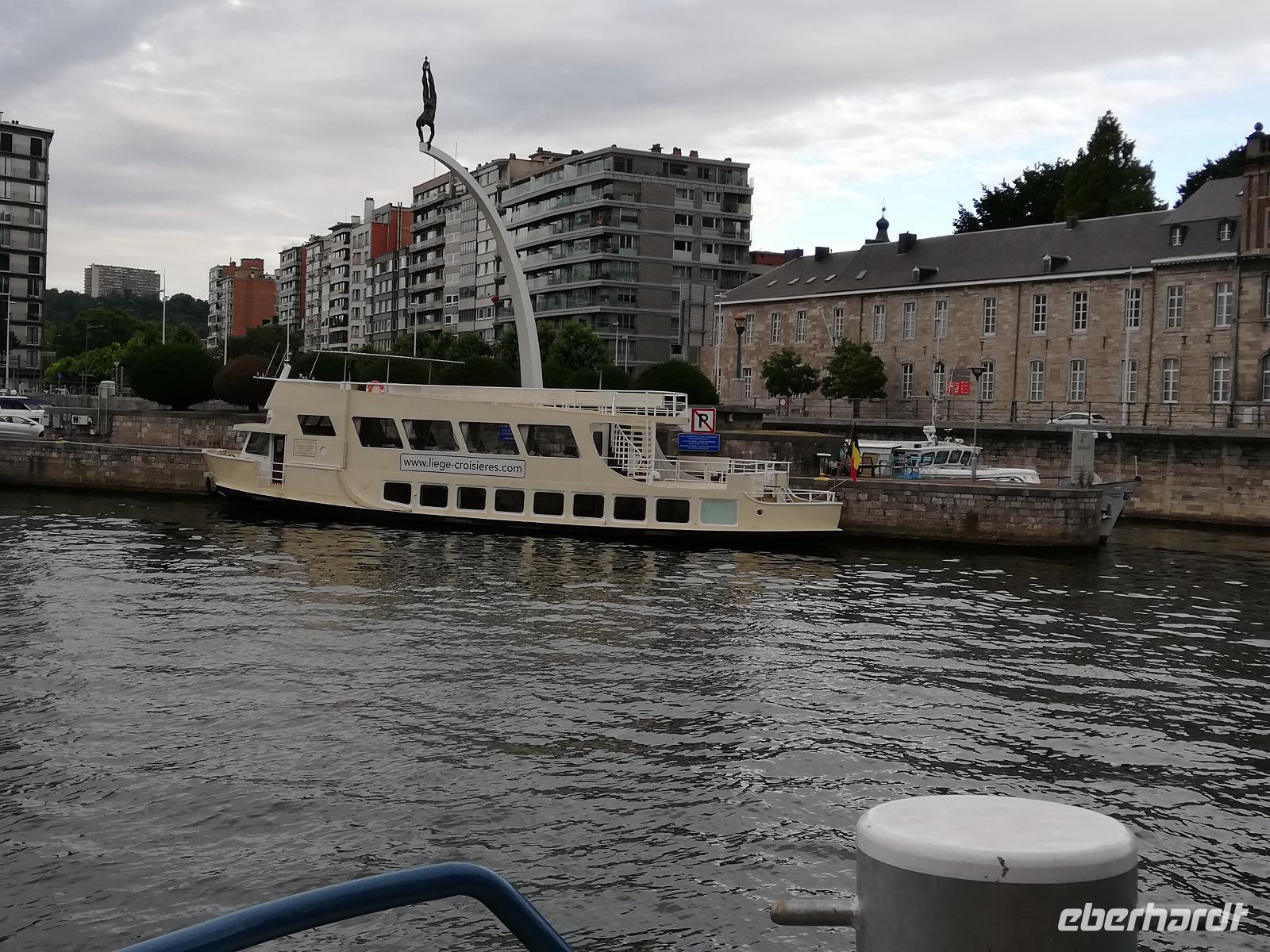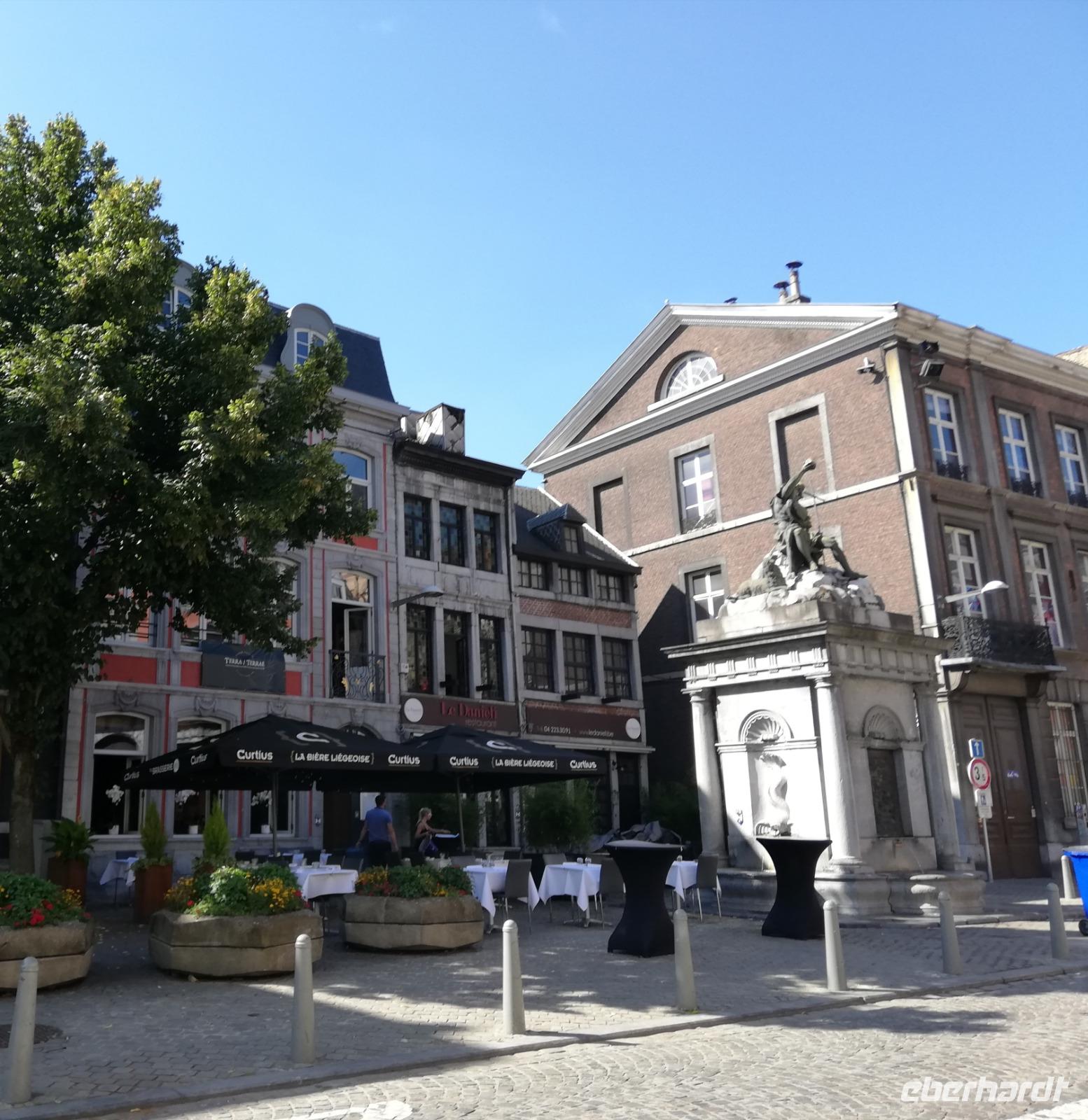 Gegen 08.00 Uhr legt unser Schiff in Lüttich am Jachthafen(Port des Yatchs)an. Wir sind zwischenzeitlich auf dem Fluss Maas angekommen und haben schöne Blicke auf die Brücken und den impossanten Hochhäuser von Lüttich. Gegen9.00 Uhr kommt auch unser Bus an der Anlegestelle an und wir fahren in die Mitte der Stadt. Lüttich, wirklich schön zu nennen wäre falsch. Durch die vielen Verwüstungen die die Stadt erlebt hat, sind kaum historische Gebäude erhalten geblieben. Lüttich ist aber eine lebendig und eine Shoppingstadt. Wir machen uns auf den Weg mit unserer Stadtführerin, diese Stadt zu erkunden. Frank bringt uns bis zum Place Saint-Lambert. Hier stand die Kathedrale bis 1796. Das Ausmaß der Kathedrale können wir heute nur noch an Markierungspunkten erkennen. Wir