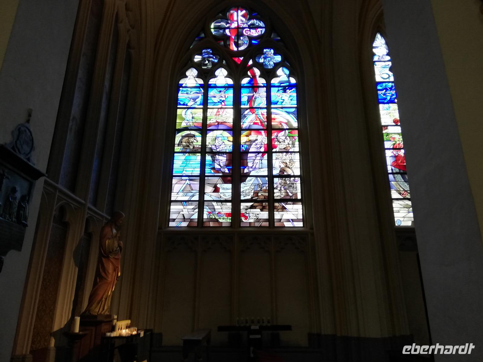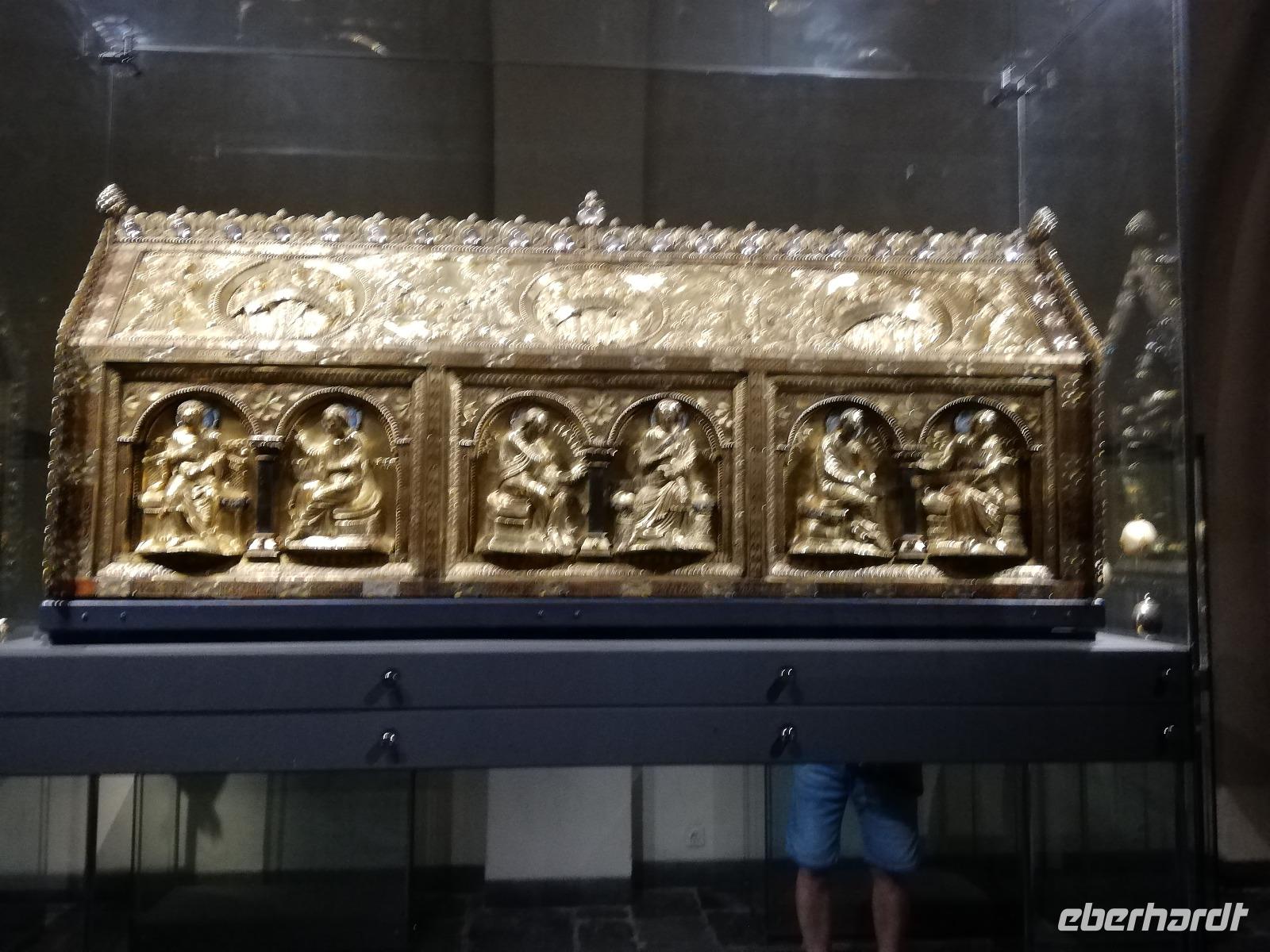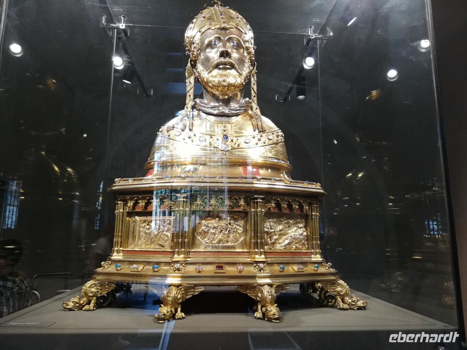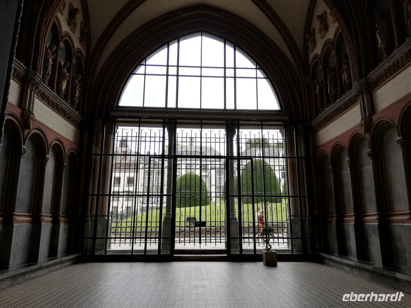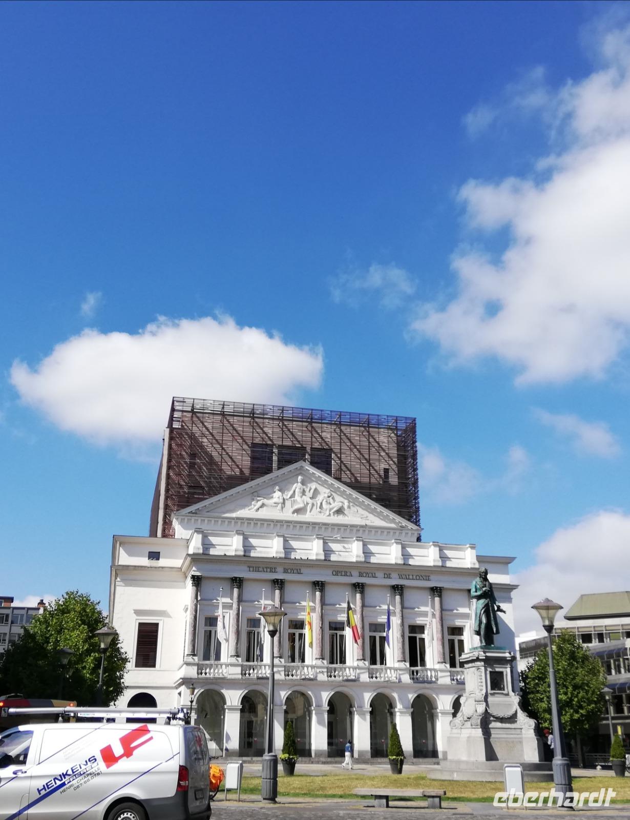 Gegen 08.00 Uhr legt unser Schiff in Lüttich am Jachthafen(Port des Yatchs)an. Wir sind zwischenzeitlich auf dem Fluss Maas angekommen und haben schöne Blicke auf die Brücken und den impossanten Hochhäuser von Lüttich. Gegen9.00 Uhr kommt auch unser Bus an der Anlegestelle an und wir fahren in die Mitte der Stadt. Lüttich, wirklich schön zu nennen wäre falsch. Durch die vielen Verwüstungen die die Stadt erlebt hat, sind kaum historische Gebäude erhalten geblieben. Lüttich ist aber eine lebendig und eine Shoppingstadt. Wir machen uns auf den Weg mit unserer Stadtführerin, diese Stadt zu erkunden. Frank bringt uns bis zum Place Saint-Lambert. Hier stand die Kathedrale bis 1796. Das Ausmaß der Kathedrale können wir heute nur noch an Markierungspunkten erkennen. Wir