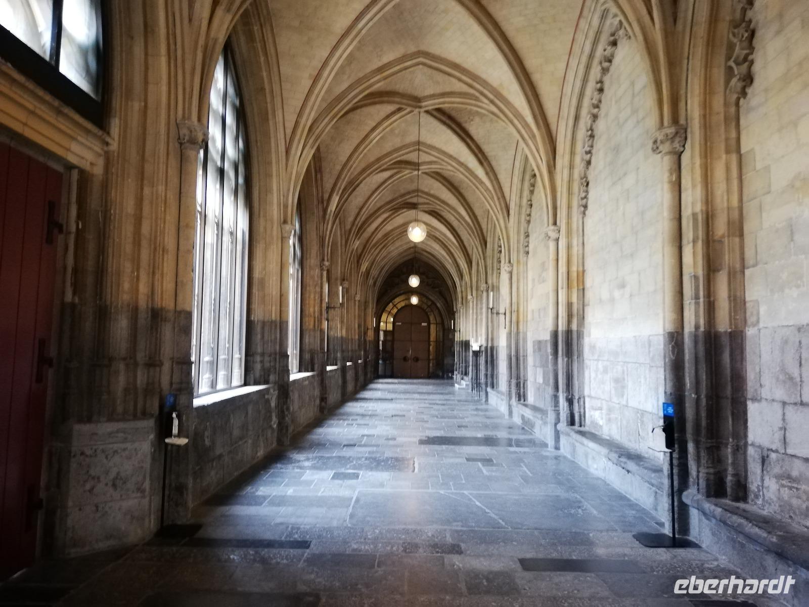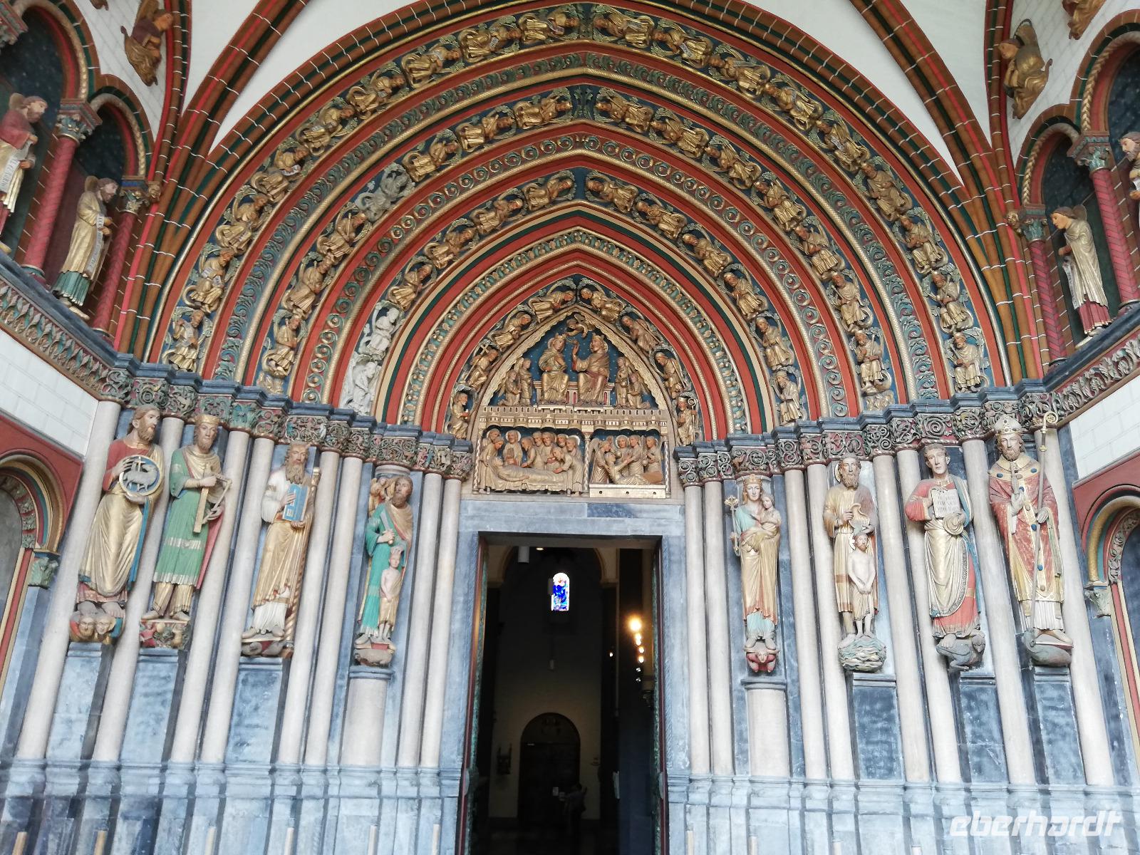 Von hier aus spazieren wir am Steenhowers vorbei zum Grote Markt. In dessen Mitte Jef Lambeaux 1887 den großen Brabo Brunnen aufstellte. Dargestellt ist Silvius Brabo, wie er die dem Riesen Amtigonus abgeschlagene Hand in die Schelde wirft. Aus dem „Hand te werpen" bezog Antwerpen der Legende nach seinen Namen. Weiter führt uns der Weg zur Kathedrale. Hier trennt sich die Gruppe. Während sich der eine Teil der Gruppe für den Besuch der Kathedale entscheidet. Setzt der andere Teil den Rundgang mit Andrea fort. Dieser führt uns durch enge Gassenden und zum Grünmarkt, immer mit den Blick auf die Kathedrale. Die Gäste, die die Kathedrale besucht haben waren begeistert von den berühmten Meisterwerken von Rubens in der Liebfrauen- Kathedrale (Onze-Lieve-Vrouwe-Kathedraal). Dazu gehören die „Die Kreuzaufrichtung" und die „Kreuzabnahme" Beide Gemälde entstanden 1610 und 1614 kurz nach Rubens' Rückkehr aus Italien. Nach der Führung fahren wir zurück zum Anleger und genießen anschließend unser Mittagessen und die Fahrt mit dem Schiff auf dem Albertkanal Richtung Lüttich. Entspannt und bei schönem Wetter genießen viele Gäste auf dem Deck die Fahrt durch den Kanal, der insgesamt 129,5 km lang ist, 6 Schleusen hat und eine Höhendifferenz von 56 Meter überwindet. In Kanne ,dem Ort wo wir in der Nacht einige Stunden liegen werden, ist ein Grenzort nahe Maastricht. Hier durchbricht der Kanal ein Bergmassiv aus Kalkstein. Am Morgen werden wir gegen 08.00 Uhr in Lüttich sein.