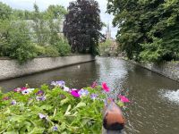 Und wer waren eigentlich die Begijnen, deren ehemalige Wohnhäuser wir besichtigen. Alles ist toll anzusehen und überall lauern Geschichte und Geschichten. Am Großen Markt und damit am Belfried endet unser Stadtrundgang. Einige Gäste folgen Christos noch in eine Chocolaterie, schlemmern süße Waffeln und kaufen natürlich Schokolade für die Lieben daheim ein. Bis zum Bus ist es dann noch eine Dreiviertelstunde zu Fuß und jetzt müssen wir die Regenschirme aufspannen. Zum Abendessen kommen wir nicht pünktlich zurück, weil eine Begegnung mit einem Flixbus, ein abendlicher Stau und viele Baustellen unsere Rückfahrt verlängern. Der Küchenchef ist informiert und so bekommen auch wir, wenn auch etwas verspätet ein leckeres Abendessen. Wer immer noch nicht müde ist, kann den Abend im Salon bei schöner Musik ausklingen lassen.