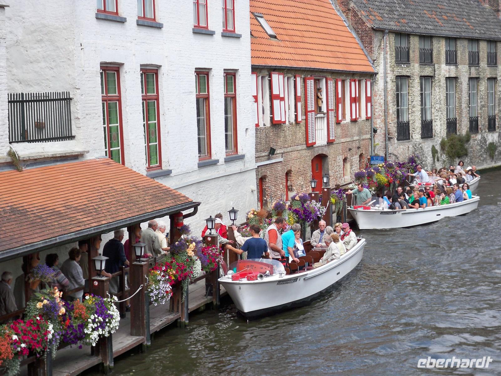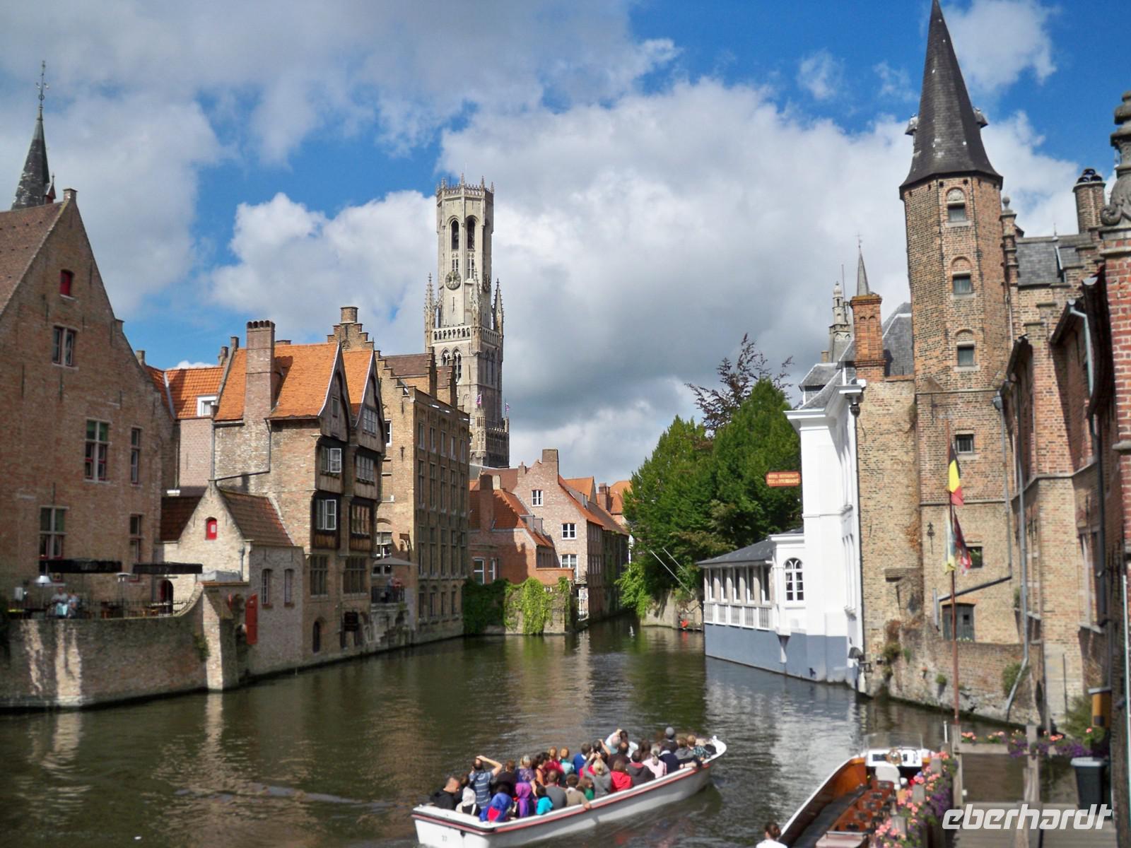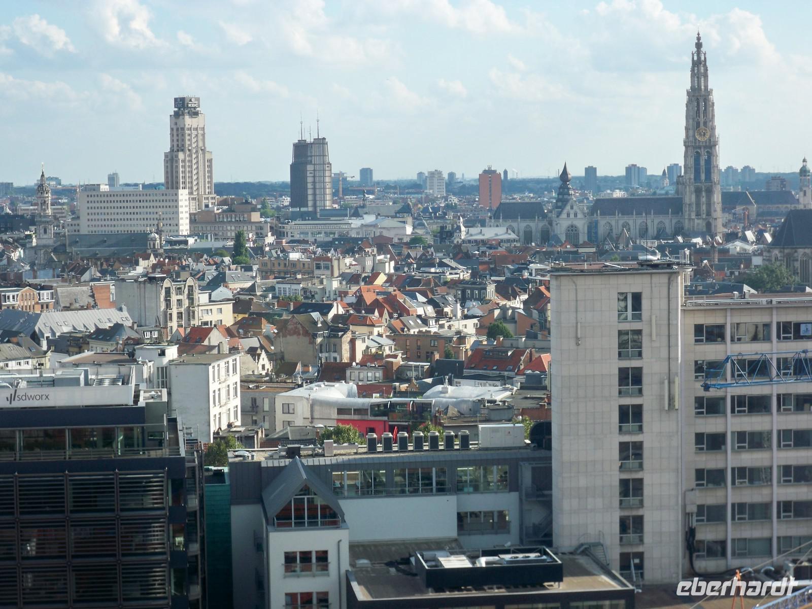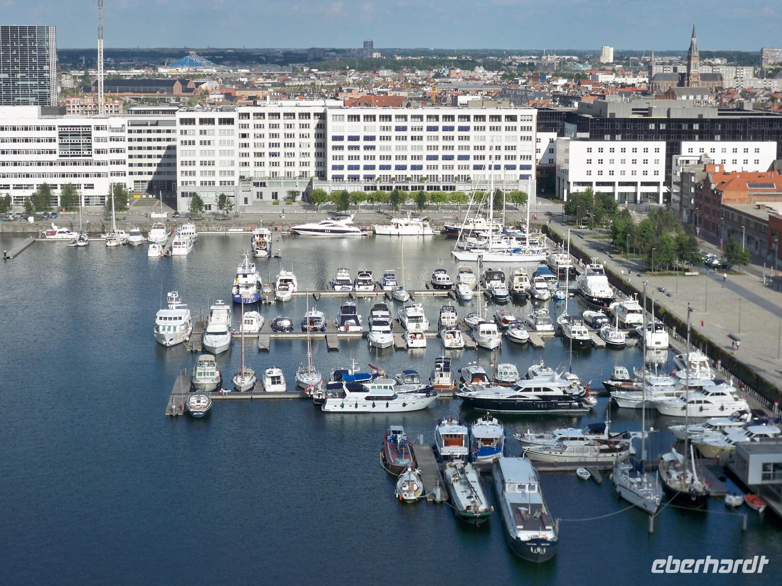 Gut gestärkt am reichhaltigen Frühstücksbuffet nahmen wir wieder im Reisebus Platz und auch Gerda begleitete uns wieder. An Gent vorbei ging es in die zauberhafte Stadt Brügge. Sie ist die größte Stadt der Provinz Westflanderns. Bereits 2000 wurde die Altstadt zum UNESCO Weltkulturerbe erklärt. Natürlich zu Recht, davon konnten wir uns in den nächsten Stunden selbst überzeugen. Der Busparkplatz lag leider relativ weit außerhalb der Altstadt. Der Spaziergang durch einen schönen Park bis zum idyllisch gelegenen "Beginenhof" verging schnell und Stadtführerin Gerda erzählte viel. Manchmal sogar etwas zu ausführlich. Der Rundgang führte uns dann noch bis zum Hauptplatz, wo die Stadtführung endete. Die Freizeit konnte am Nachmittag jeder individuell gestalten. Es gab ja noch sehr viel zu entdecken und natürlich zu fotografieren. Die mitgebrachten Lunchpakete wurden verzehrt. Aber auch ein leckerer Kaffee oder die berühmten Belgischen Schokoladenspezialitäten konnten probiert werden. Den Gästen wurde eine kleine Bootsfahrt über die romantischen Kanäle der Stadt angeboten. Fast alle Gäste unserer Gruppe nahmen das Angebot gern an. Es war eine recht lustige Tour und die Gäste danach begeistert. Erfüllt von zahlreichen neuen Eindrücken trafen wir uns 15.00 Uhr wieder am Hauptplatz um zum Busparkplatz zurück zu laufen. Jetzt bestand auch die Möglichkeit für 2,- € mit dem Linienbus bequemer zurückzufahren. Was auch sehr viele Gäste nutzten. Die Rückfahrt nach Antwerpen verlief etwas stockend. Alle waren froh als wir unser gastliches Schiff erreichten. Es verblieb bis zum Abendessen noch etwas Zeit. Das nutzen einige Unentwegte um zum nahe gelegenen Hochhaus zu laufen. Über Rolltreppen erreichten wir die Dachterrasse. Von dort hatten wir einen tollen Blick über den Hafen und die Stadt Antwerpen.