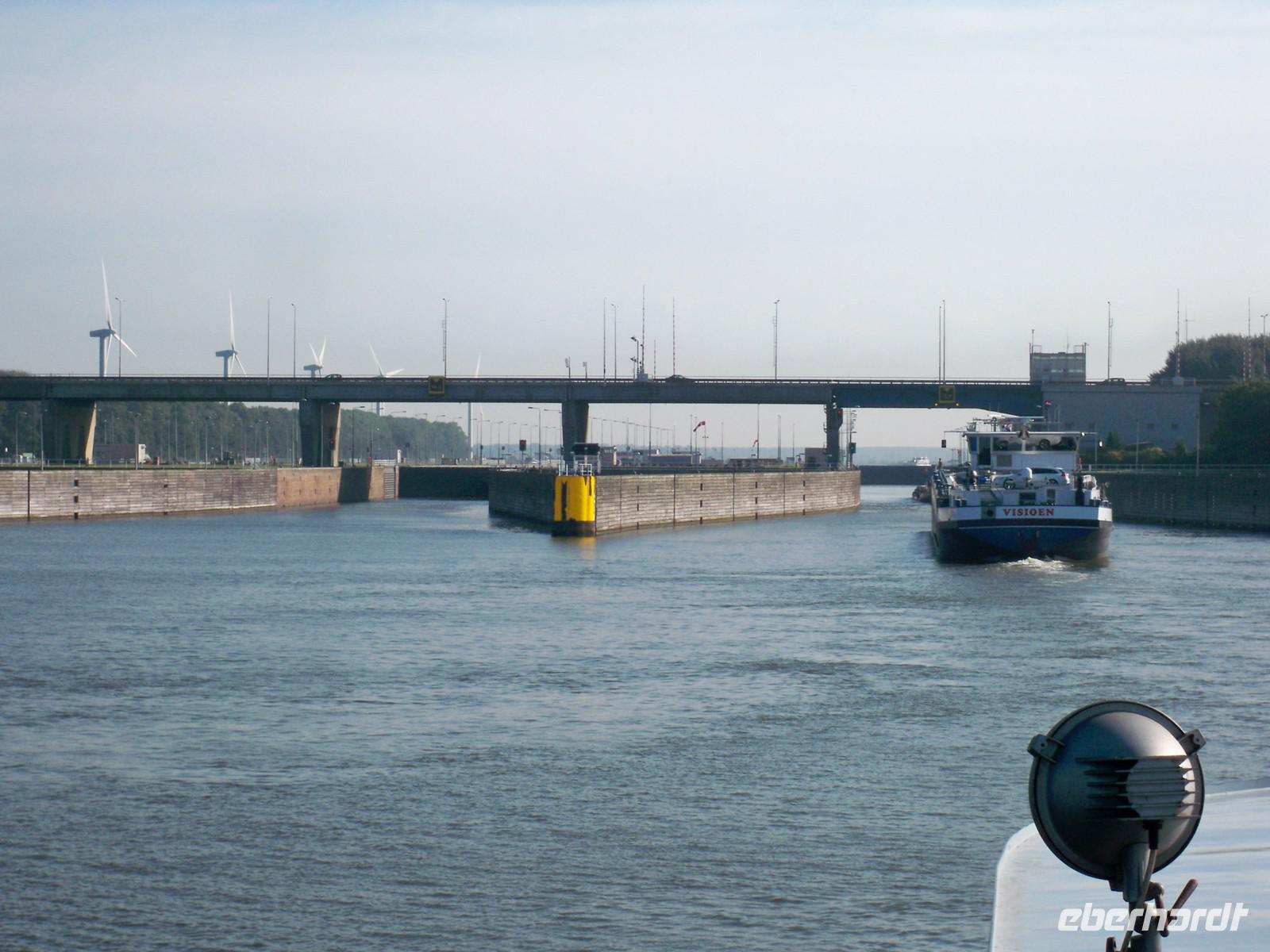 In der Nacht hatten wir schon einige Schleusen passiert und während des Vormittags fuhren wir bereits auf dem Schelde-Rhein-Kanal.