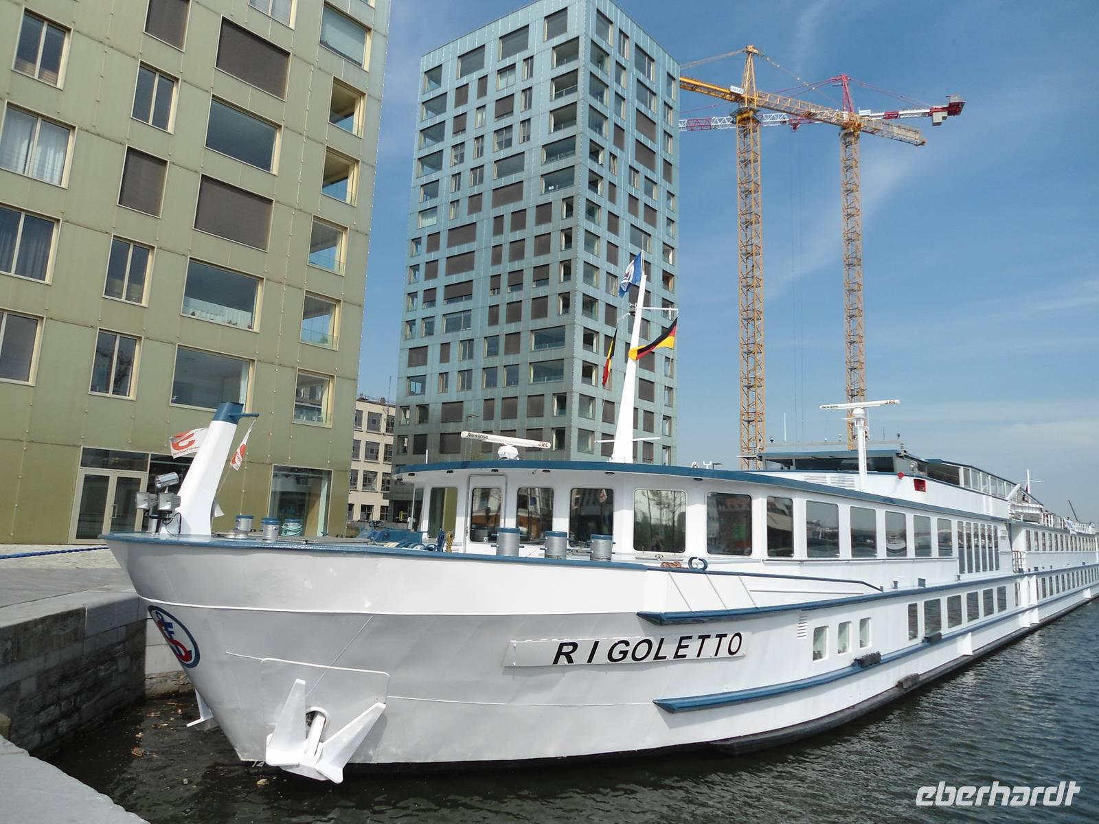 erreichten wir in Düsseldorf-Stockum den Anleger unseres Fluss-Kreuzfahrtschiffes „Rigoletto".