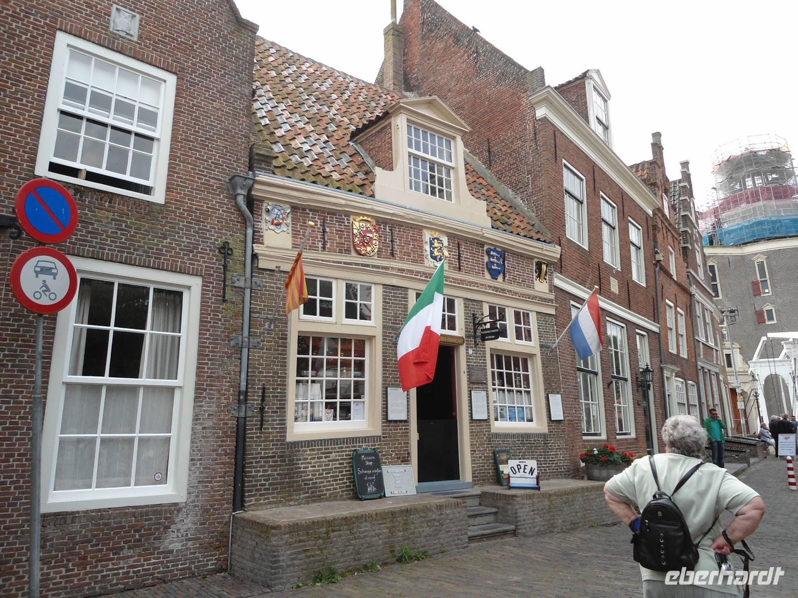 In Enkhuizen erwarteten uns nach dem Mittagessen die  Stadtführer um uns die Schönheit dieses kleinen Hafenstädtchens näher zu bringen.Der große Jachthafen, die Zugbrücken, die idyllischen Fleckchen in manchem Hintergarten, das Rathaus im alten Baustiel  -  all das sahen wir.  Ein wenig Freizeit für die Einkaufsstraße mit den vielen kleinen Lädchen für ein vielleicht letztes  Mitbringsel war auch noch drin.