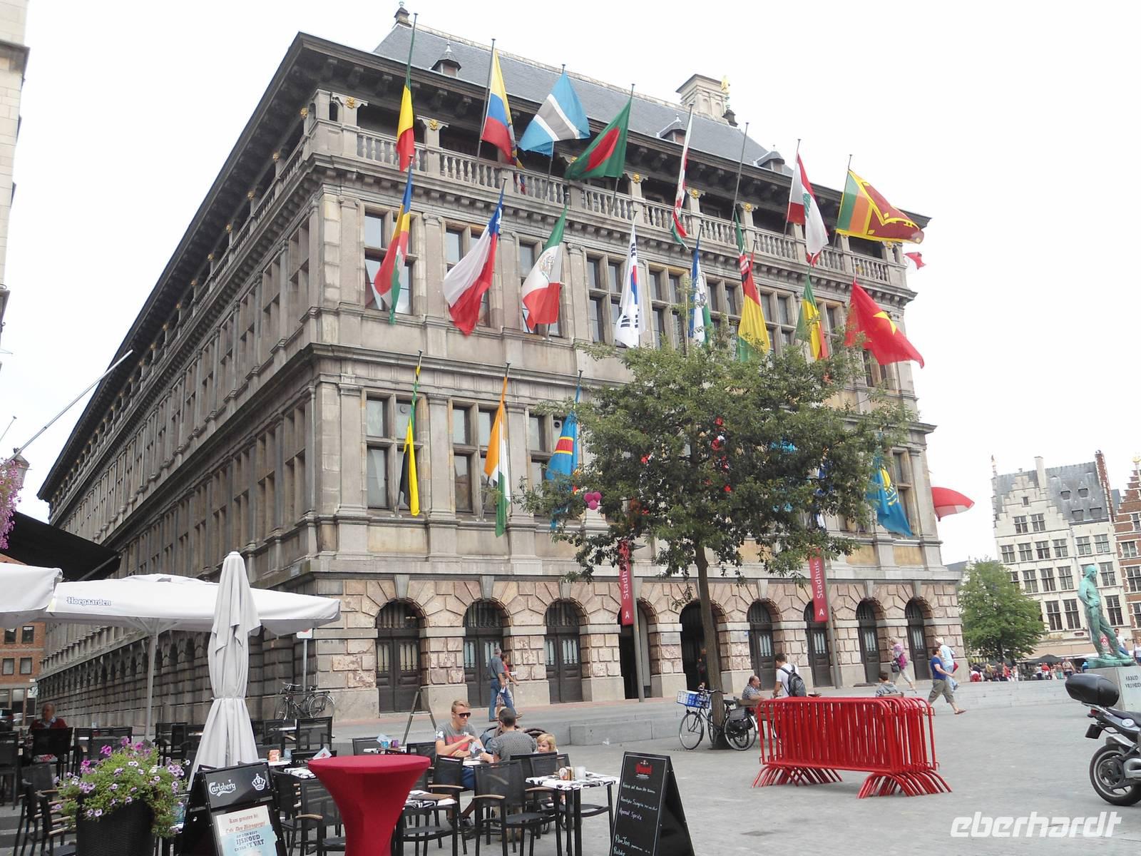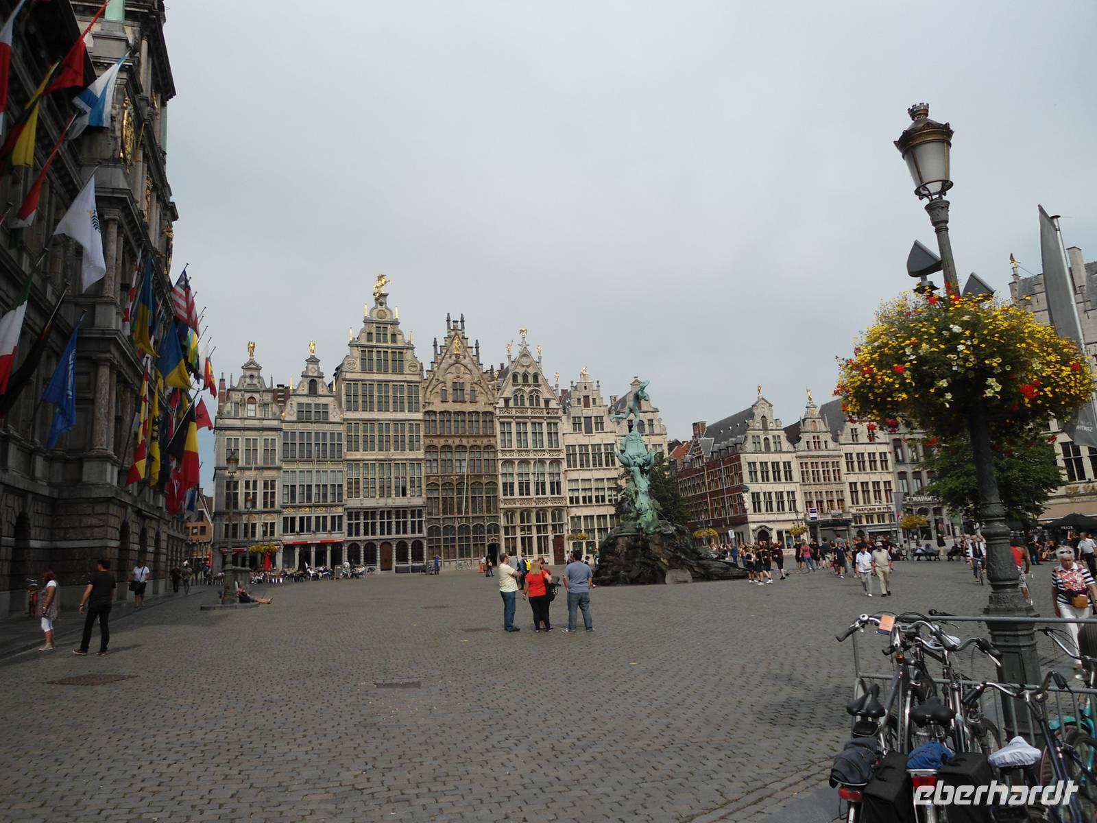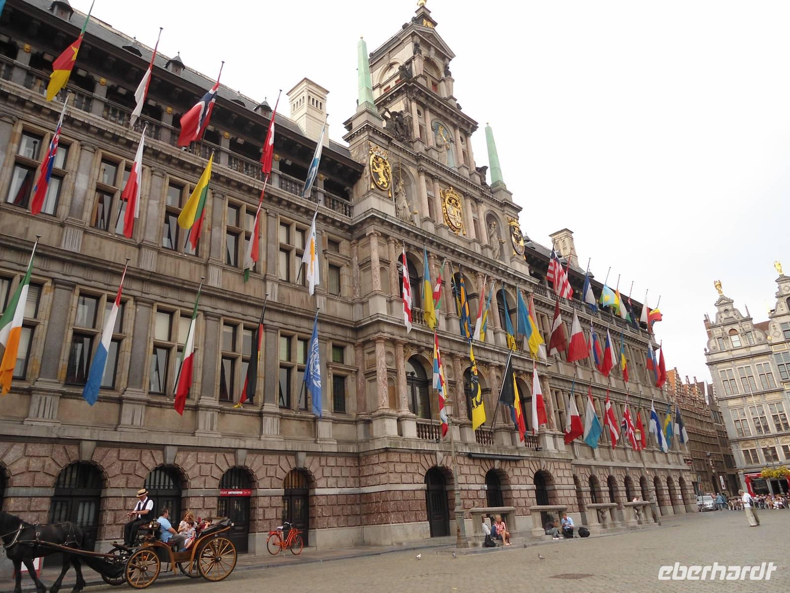Wir haben bereits den „Schelde-Rhein-Kanal" erreicht und steuern auf Antwerpen zu, erleben die Hafenanlagen beim Einfahren und gehen zur Mittagszeit vor Anker, am „Kattendijkdok" (diese Zungenbrecher!). Unser Chauffeur ist pünktlich am Schiff zur Stelle und so beginnt 14.00 Uhr die Stadtrundfahrt und anschließend ein umfangreicher Stadtrundgang.