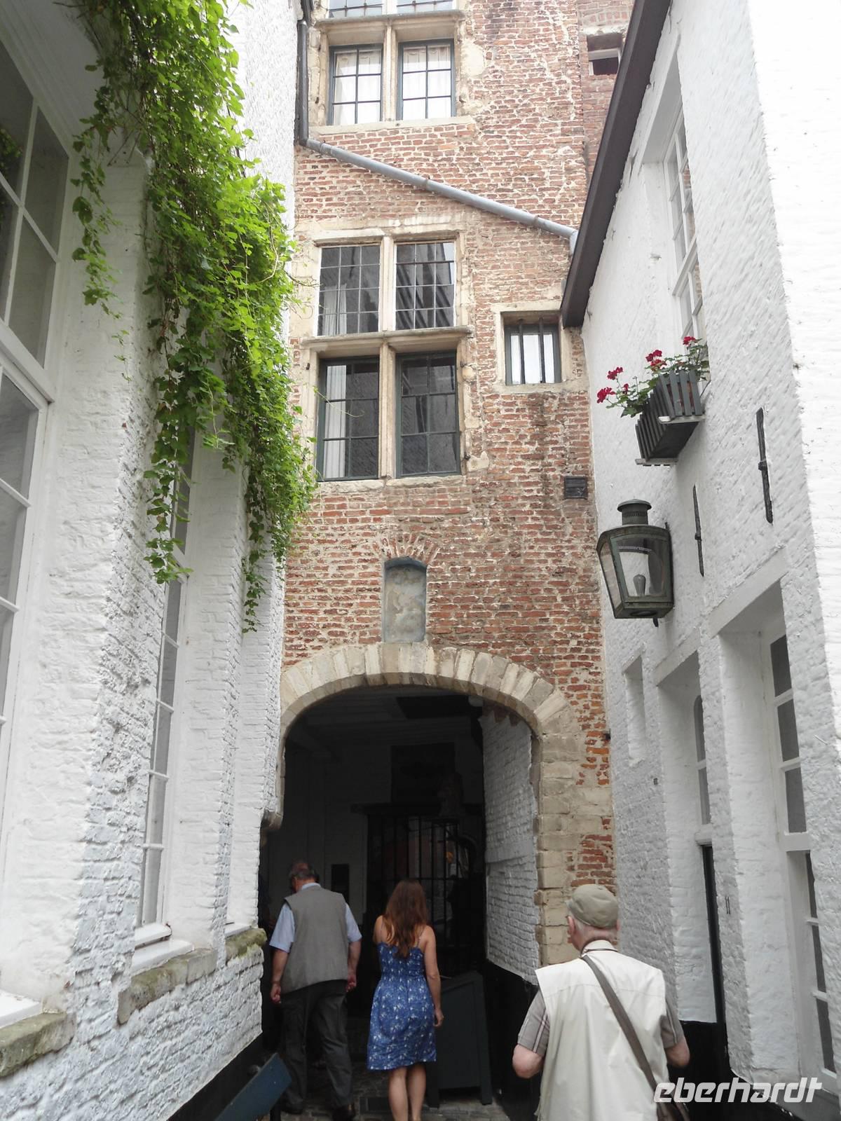 Uns war es nicht möglich, mit dem Reisebus in die Stadt hineinzufahren, ein Spaziergang von ca. 30 min. war zu absolvieren. Aber schon dabei konnten wir uns von der schönen Umgebung von Brügge überzeugen. Der Weg führte durch die alte Klosteranlage „Begijnhof" direkt auf die „Schokoladenstraße". Ja, in Brügge wird Schokolade groß geschrieben und auf dieser Straße sollte sie besonders preiswert zu haben sein. Belgien an sich steht ja schon für diese „süße Verführung", sie konnte überall gekauft werden.