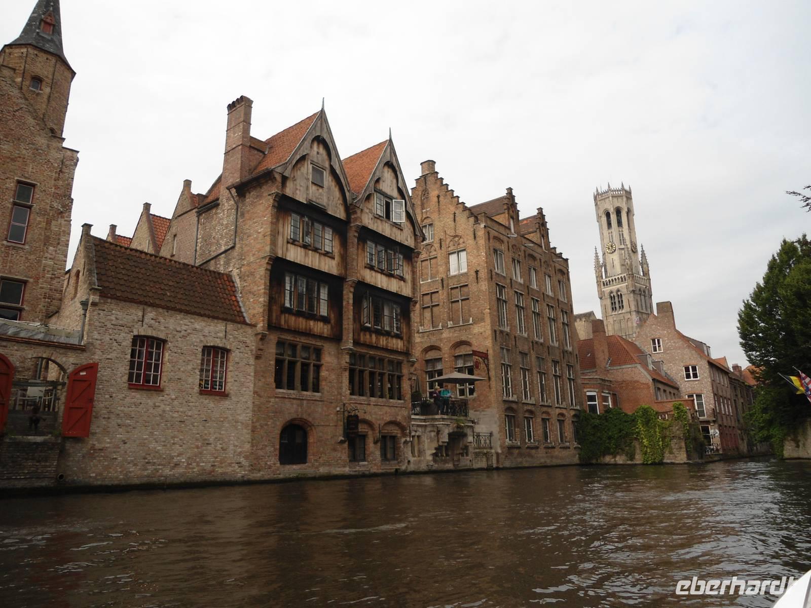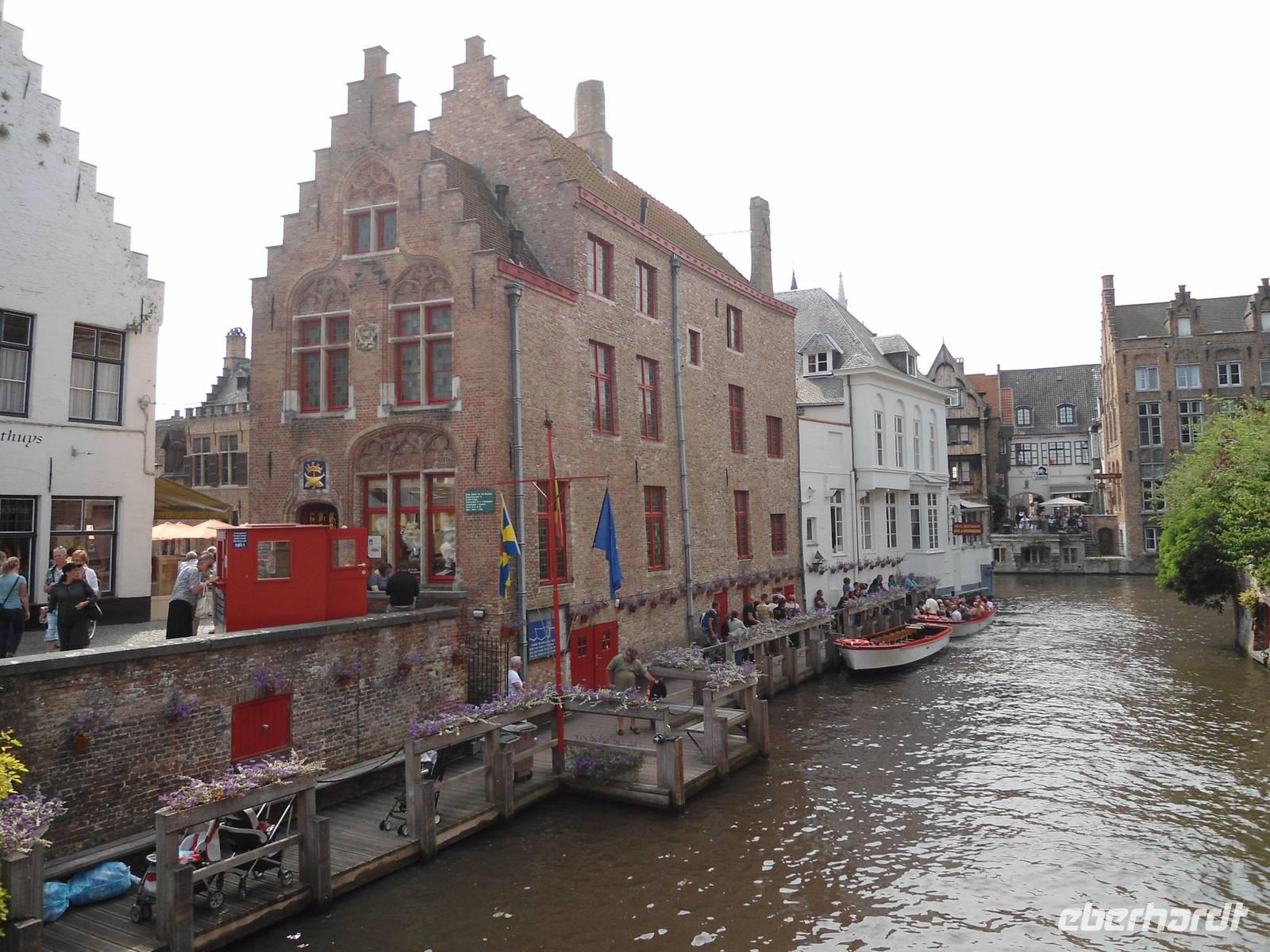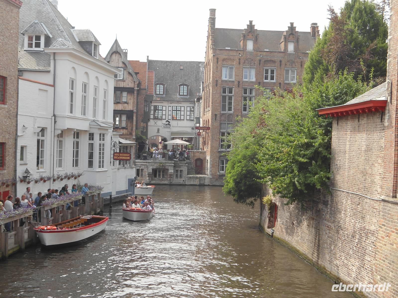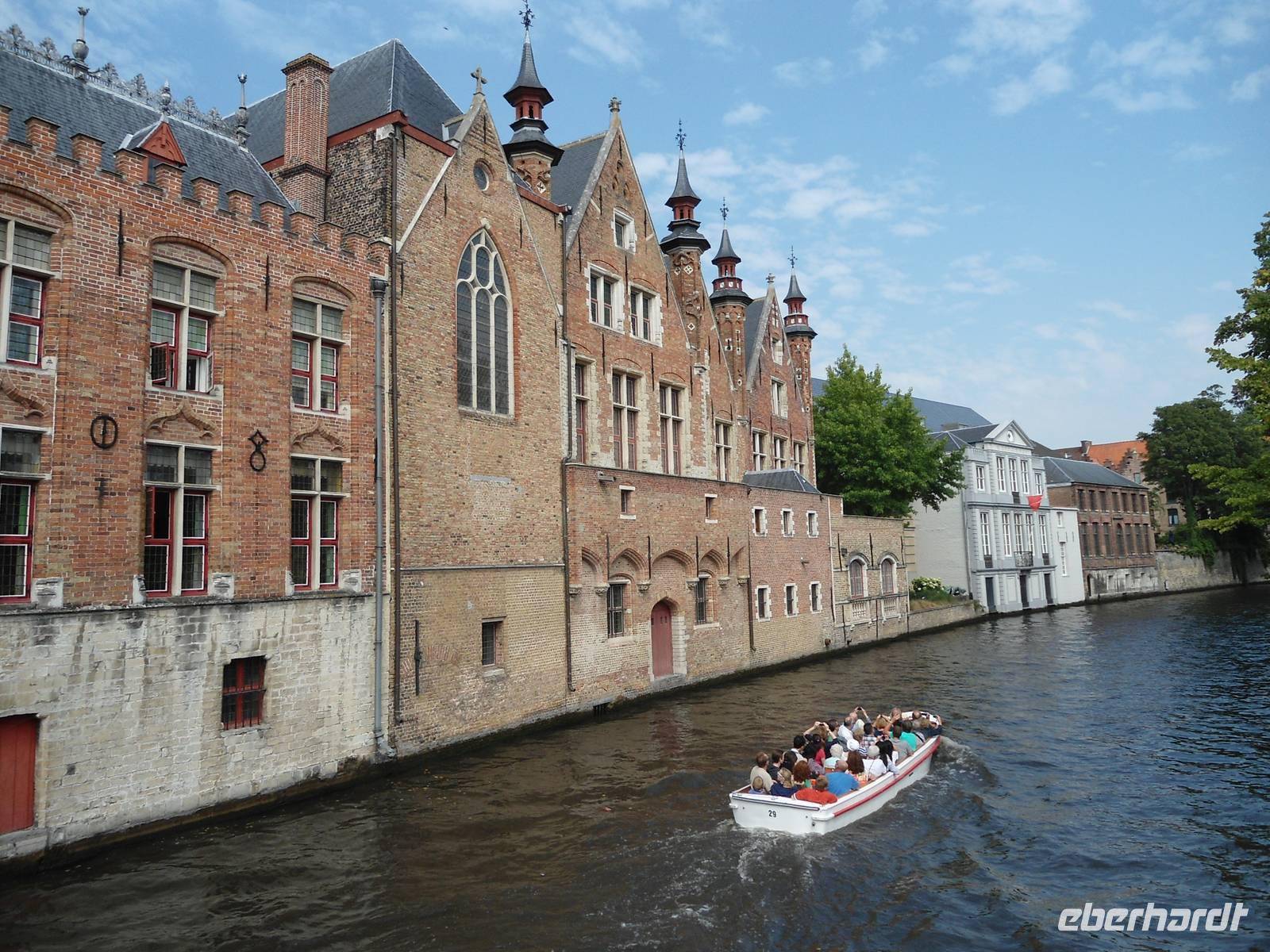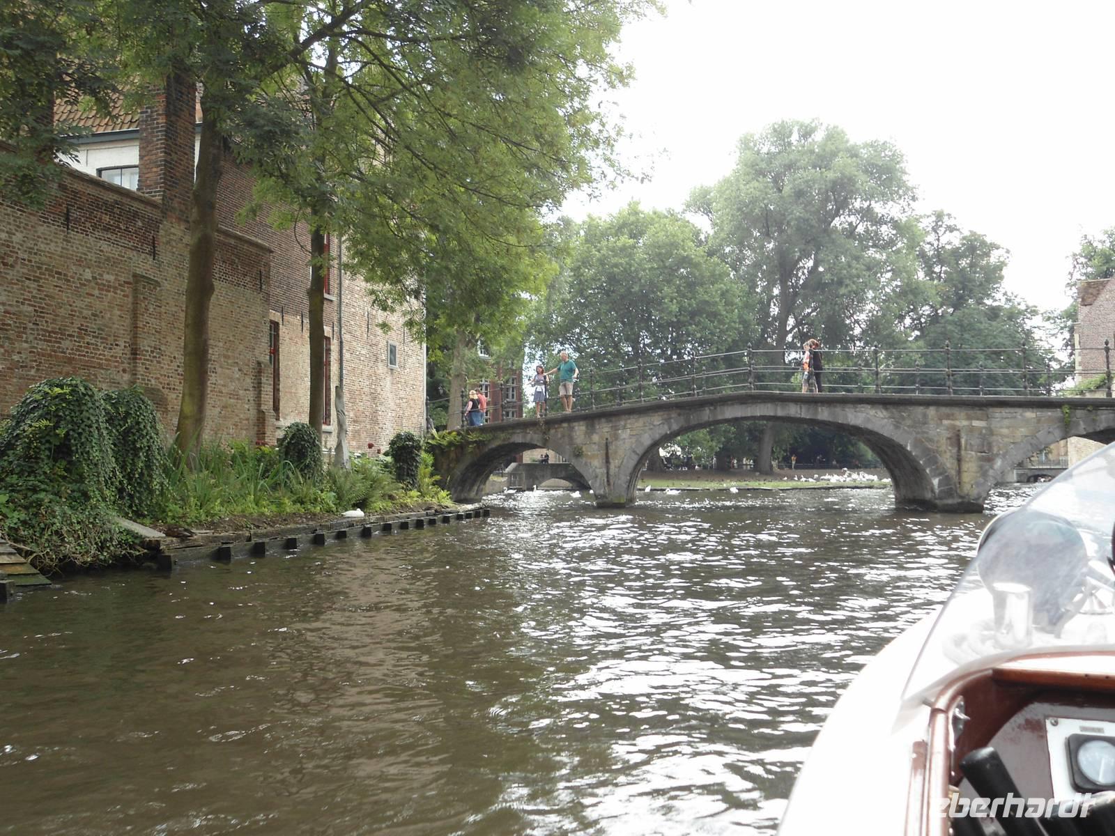 Auch Brügge ist mit vielen Wasserstraßen durchzogen, die eine ganz bestimmte Ausstrahlung haben. Flugs suchten wir uns eine Abfahrtsstelle und wollten das Abenteuer „Grachtenfahrt" auch kennenlernen. Es hat allen mächtig Spaß gemacht und es war auch interessant, die Häuser von der Wasserseite aus kennenzulernen. Richtige kleine idyllische Ecken waren zu entdecken.