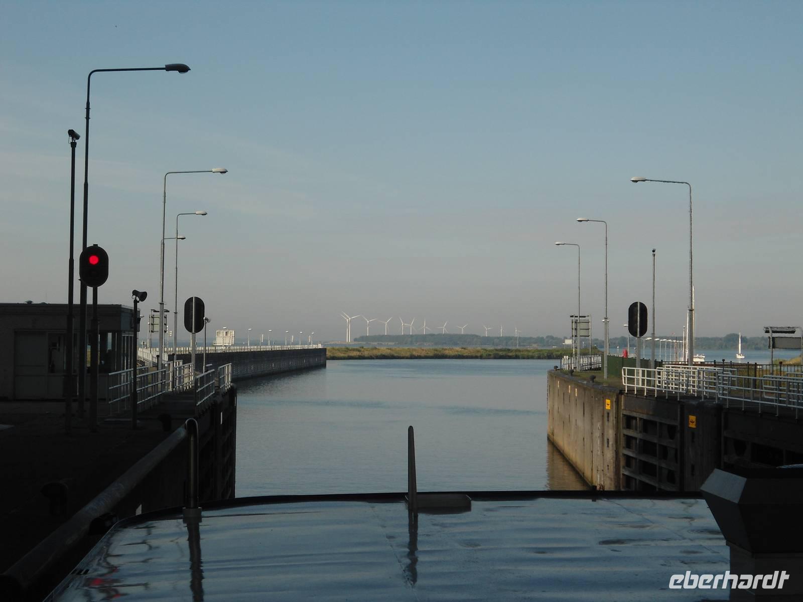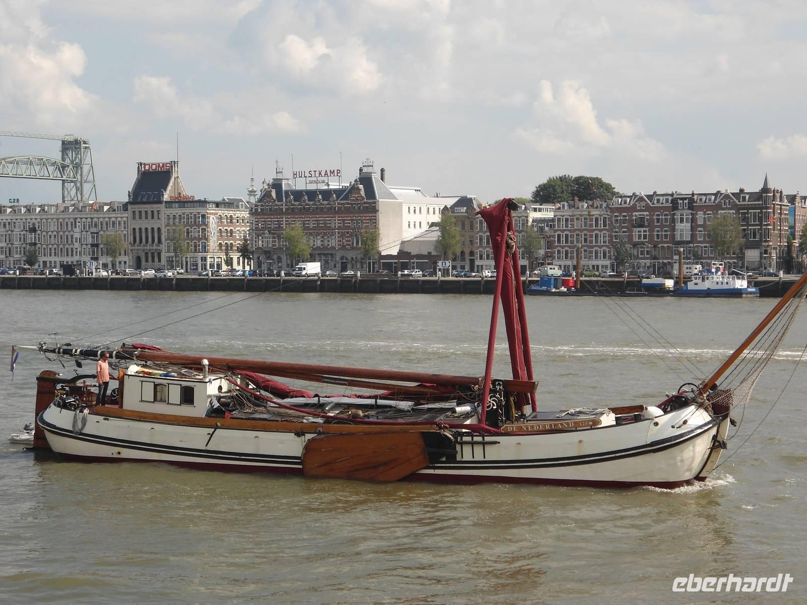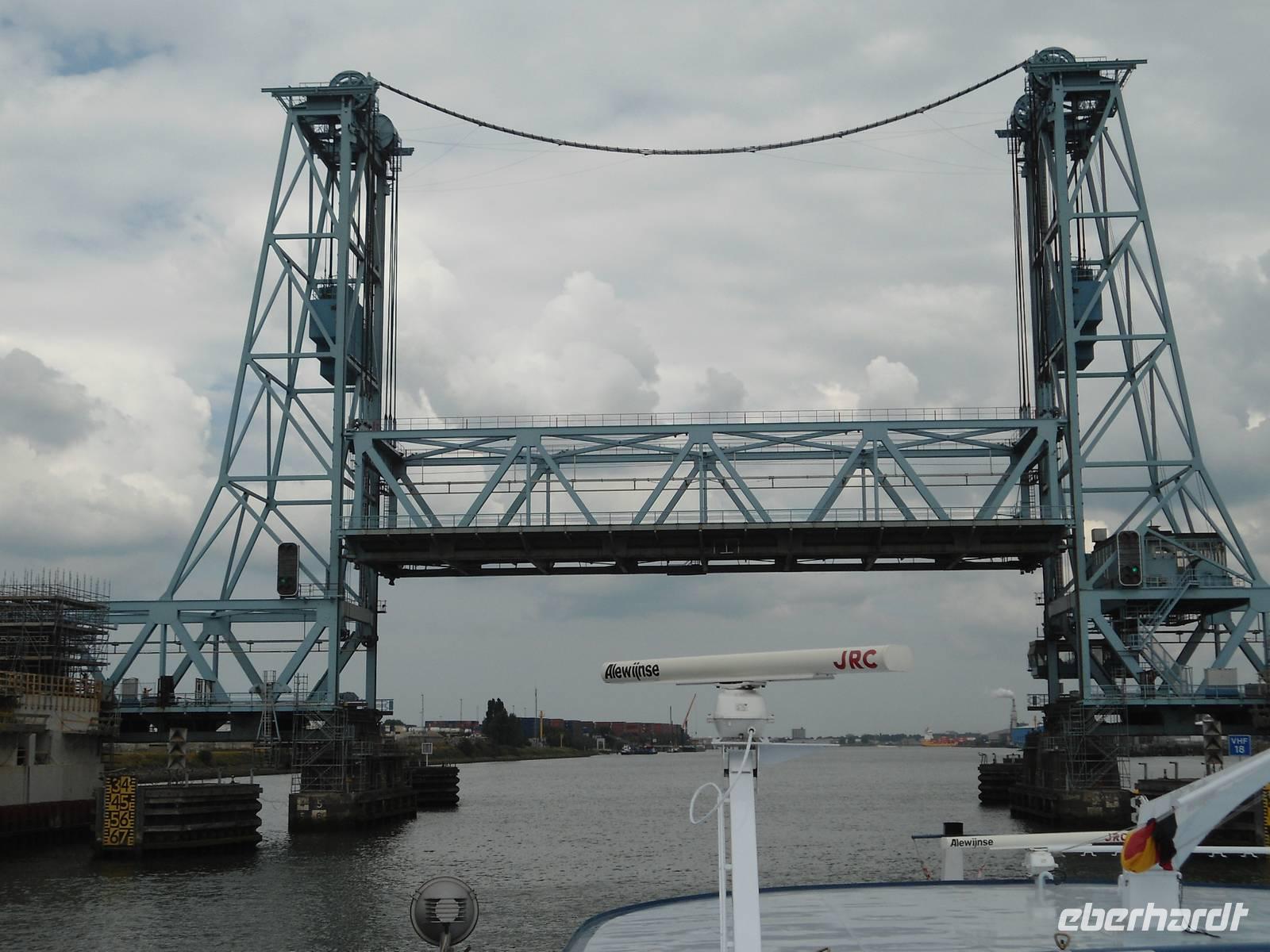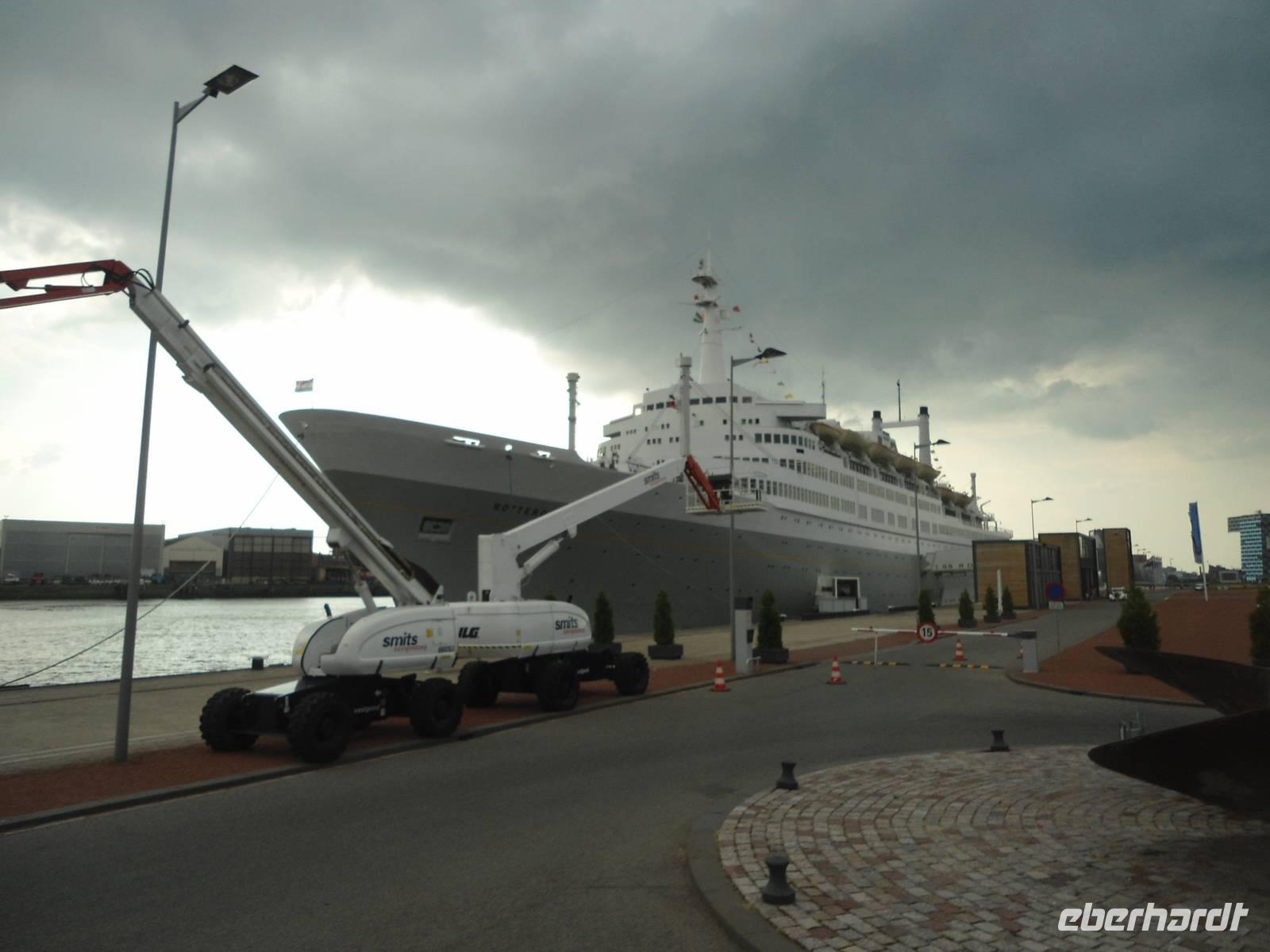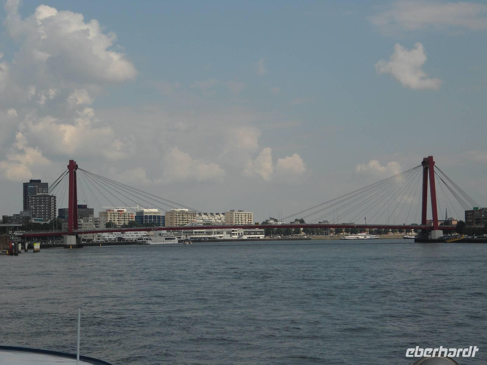 Am frühen Morgen nahm die „Rigoletto" Kurs auf Rotterdam. Wir fuhren wieder durch den „Schelde-Rijn-Kanal", den „Volkerak" mit der großen Schleuse bei „Willemstad" und weiter über die „Oud Maas" nach Rotterdam. Bei schönem Wetter hatten wir die Möglichkeit, auf dem Sonnendeck diese schöne Fahrtstrecke zu erleben. Ganz besonders beeindruckte uns die große Hafenanlage der Stadt, die uns eine lange Strecke begleitete. Rotterdam besitzt den größten Seehafen Europas. Umschlagplätze, Containerterminals, riesige Ölcontainer, Lagerhallen und Silos kennzeichnen den Hafen. Er zieht sich 20 km auf dem für Seeschiffe ausgebauten „Wasserweg" bis zur Nordsee. Davon konnten wir nur einen kleinen Teil von unserem Schiff aus sehen.