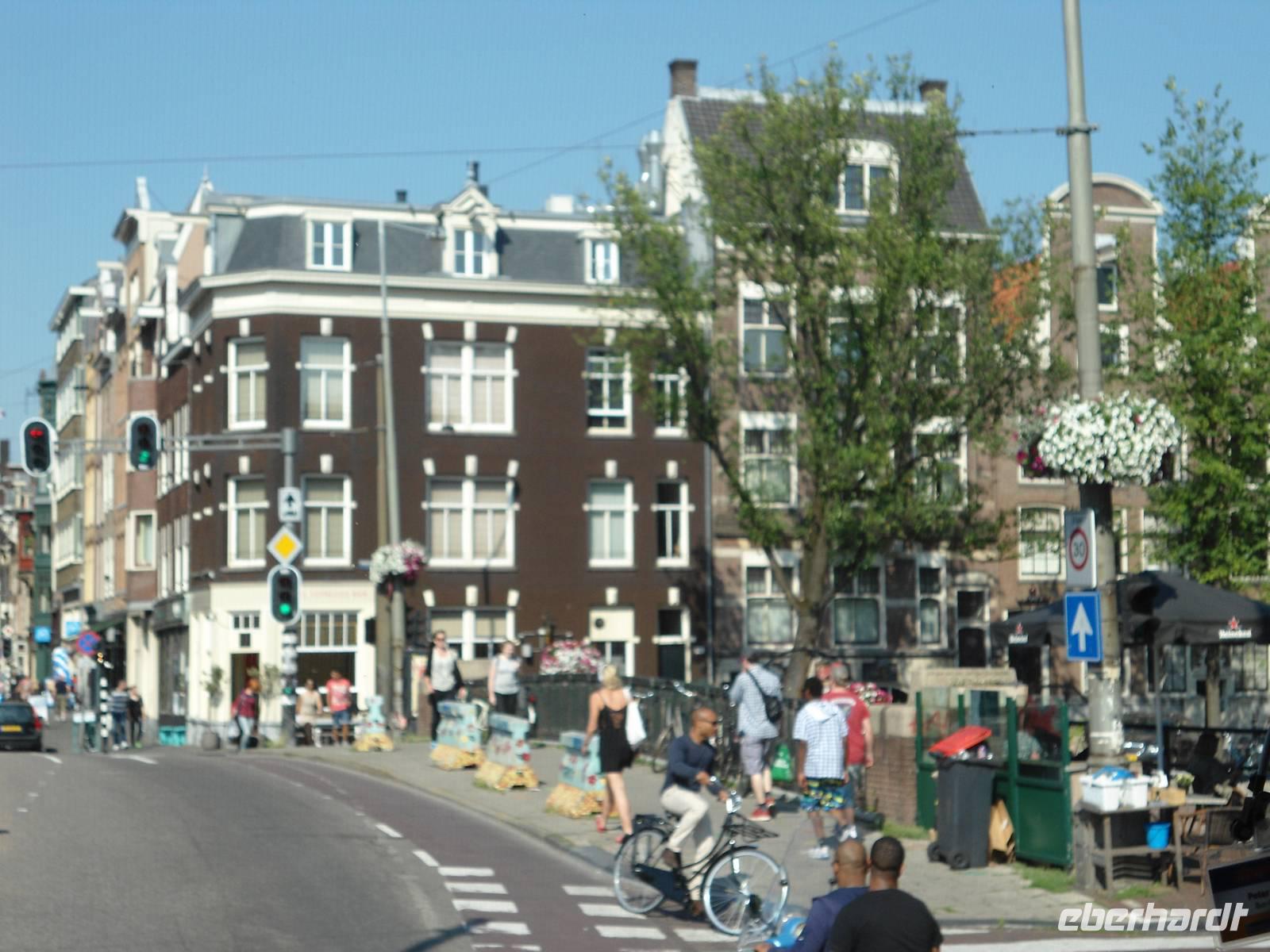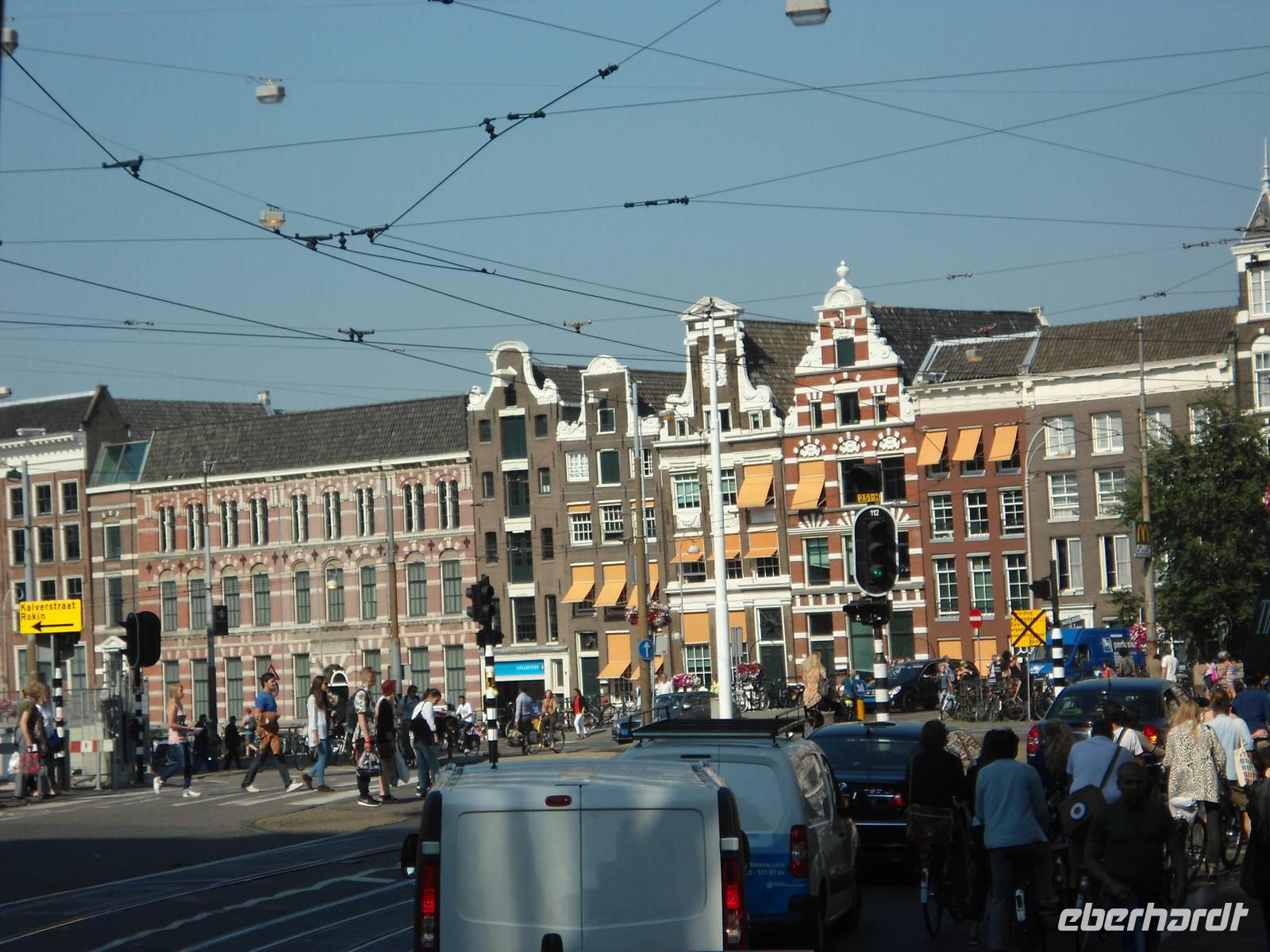 Amsterdam, die ewig junge Stadt, ein Magnet für Touristen und Urlauber jedes Jahr wieder. Auch davon wollten wir uns selbst überzeugen und starteten nach dem Essen unseren Ausflug. Man darf durch die Innenstadt keine Rundfahrten machen. So nutzten wir den Ring um die Innenstadt. Unser  Stadtführer Rolf  Fleuscher zeigte uns viel von den denkmalgeschützten oder einfach nur gut erhaltenen Stadtpalais, von den Häuserzeilen im alten Baustil entlang der Grachten. So heißen die Wasserwege in der Stadt. Auch hier zeigt sich der frühere Wohlstand der Amsterdamer Bürger durch die Handelsgeschäfte in aller Welt und den Kolonien.