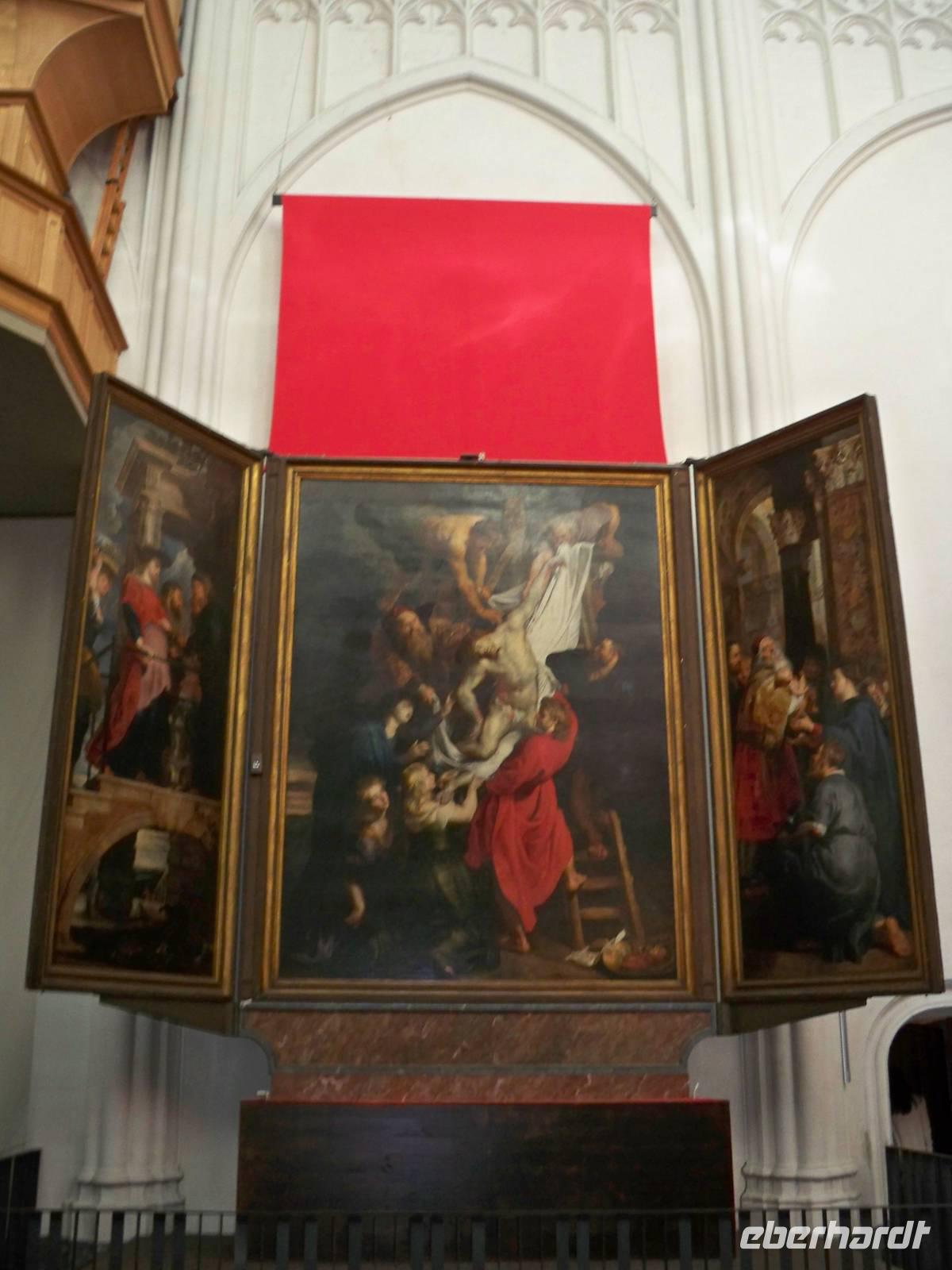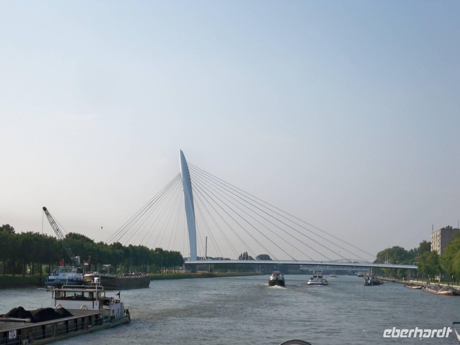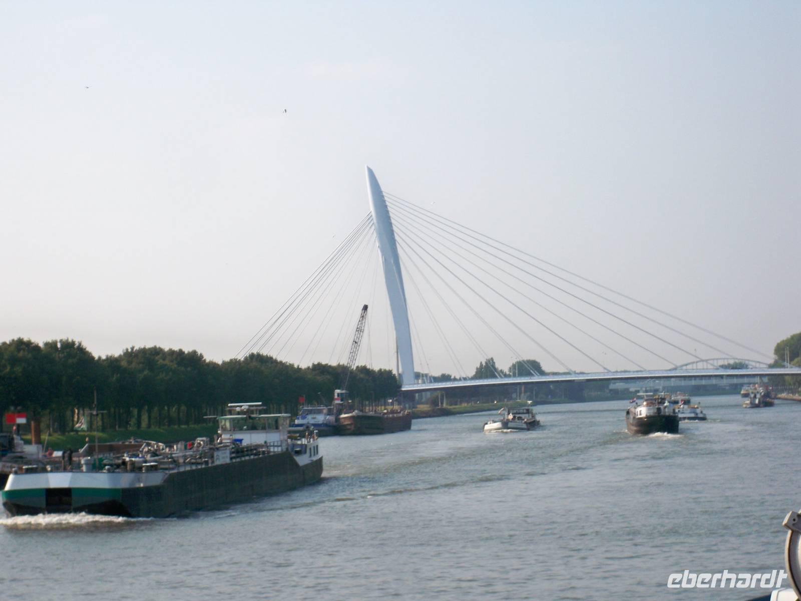 Der heutige Tag begann mit einem Ausflug um die Stadt der Diamanten näher kennen zu lernen. Zunächst unternahmen wir mit unserem Reisebus eine Rundfahrt durch die Stadt. Dann begaben wir uns auf einen Rundgang an historischen Gebäuden vorbei bis zum Grote Markt mit dem Brabo-Brunnen. Unser Stadtführer Paul empfahl einen Rundgang in der berühmten Liebfrauen-Kathedrale. Und wir haben es nicht bereut. In der prachtvoll ausgestatteten Kirche befinden sich auch zahlreiche Gemälde des berühmten Künstlers der Stadt, Peter Paul Rubens. Nach diesem einzigartigen Rundgang, kommentiert von Stadtführer Paul, trafen wir uns am Grote Markt um zum Bus zurück zu kehren. An Bord angekommen legte unser Schiff sofort ab und wir erlebten bei herrlichstem Sonnenschein die Fahrt durch die gewaltigen, interessante Hafenanlagen Antwerpens. Weiter ging es durch den Schelde-Rijn-Kanal, durch Schleusen und die Oude Maas nach Rotterdam. Die moderne Großstadt erreichten wir am Abend. Es war ein besonderes Erlebnis die Einfahrt in die großartig beleuchtete Stadt mit ihrer beeindruckenden Skyline zu genießen. Hier ankerten wir in unmittelbarer Nähe der Erasmusbrücke.
