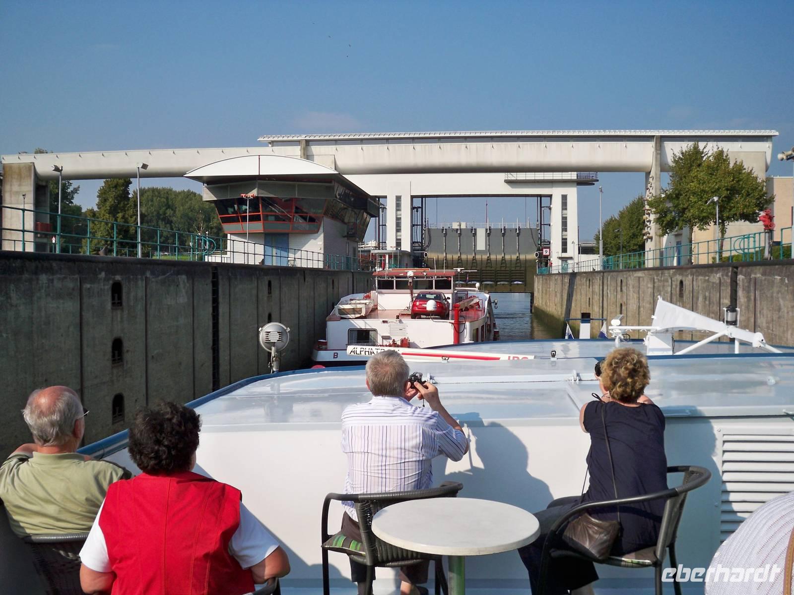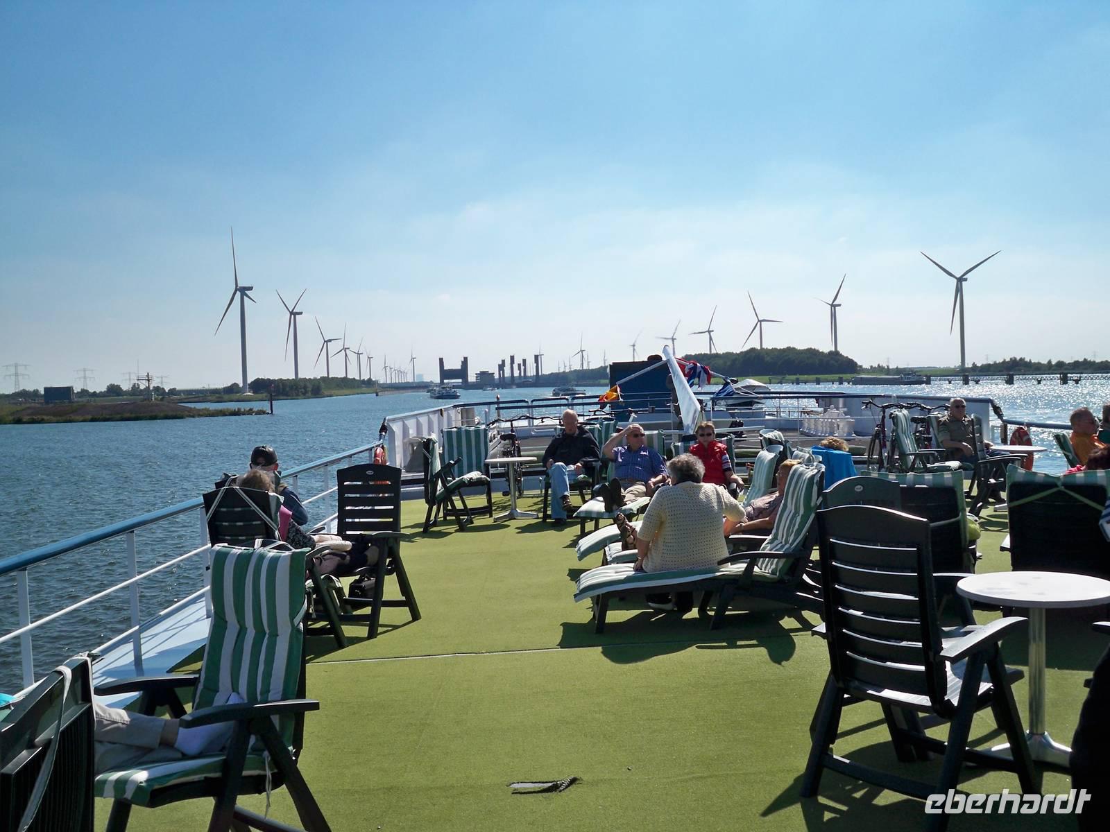 In den frühen Morgenstunden begrüßte ich die ersten Reisegäste zur Fahrt nach Nijmegen zunächst am Flughafen Dresden. Nach einigen Zustiegen war unsere Reisegruppe dann in Eisenach komplett. Bei schönem Wetter führte uns die Fahrt durch das schöne hessische Bergland an Kassel und Dortmund vorbei bis in die Niederlande. Unterwegs waren einige organisatorische Dinge zu erledigen und ich gab meinen Gästen nützliche Hinweise zum Programm und dem Aufenthalt an Bord unseres schwimmenden Hotels, der gastlichen MS „Rigoletto". So verging die Zeit wie im Fluge und wir wurden an Bord des Schiffes herzlich begrüßt. Der Check-in verlief sehr zügig und schnell waren die Koffer von der fleißigen Crew in unsere Kabinen gebracht. Während manche Gäste einen Spaziergang durch die älteste Stadt der Niederlande unternahmen, richteten sich die Anderen schon in ihren Kabinen häuslich ein. Vom Kapitän waren wir dann in den Salon zum Begrüßungscocktail eingeladen. Dort wurden uns auch alle Mitglieder der Crew vorgestellt. Unsere Bordreiseleiterin, Heike von Weber, machte uns mit dem Programm der nächsten Tage bekannt. Unser Schiff hatte bereits den Anker gelichtet und wir schipperten auf der Waal in Richtung Antwerpen. Das erste festliche Abendessen gab es im Anschluss im Restaurant und der Abend an Bord klang gemütlich bei Musik im Salon aus.