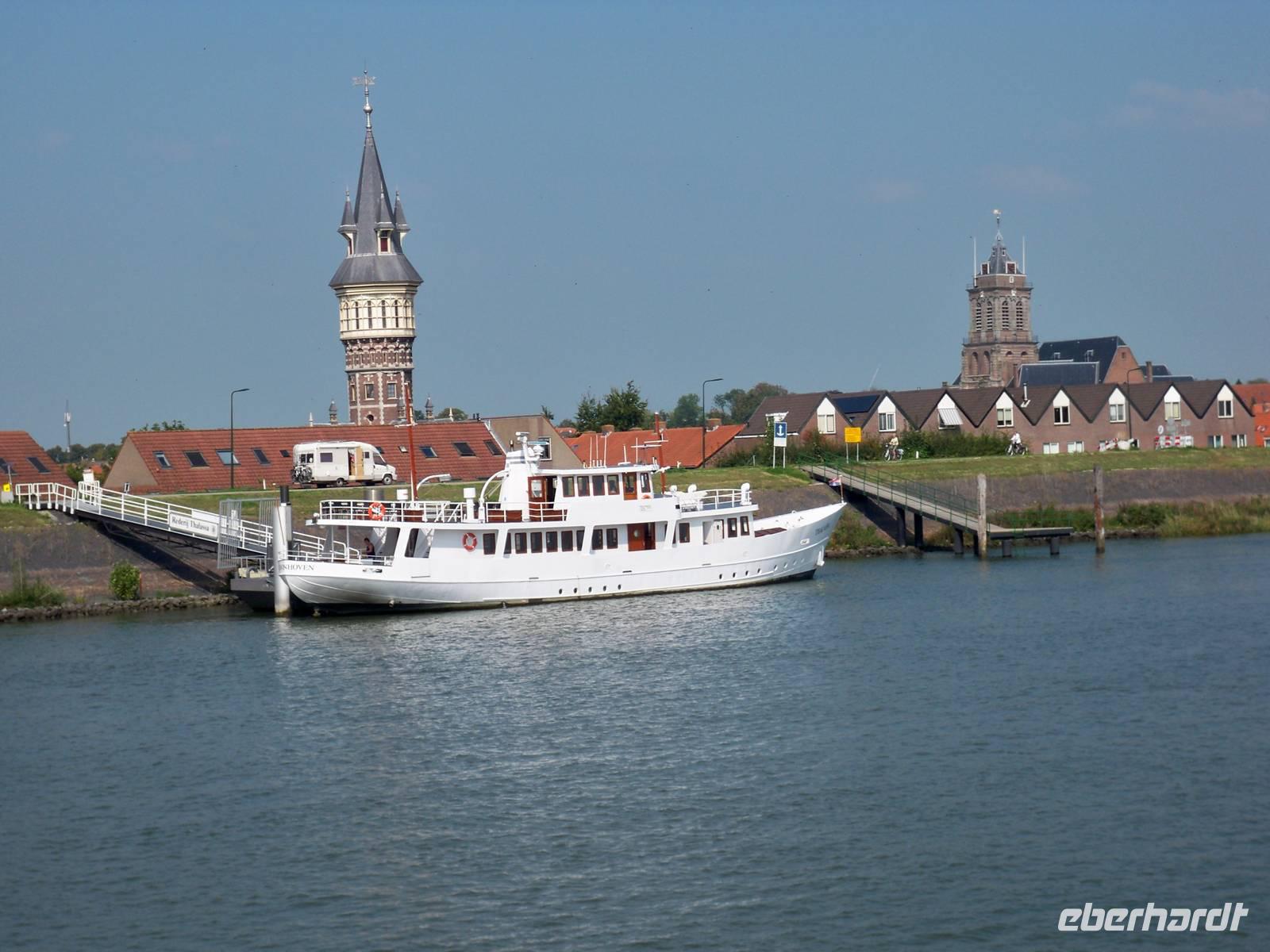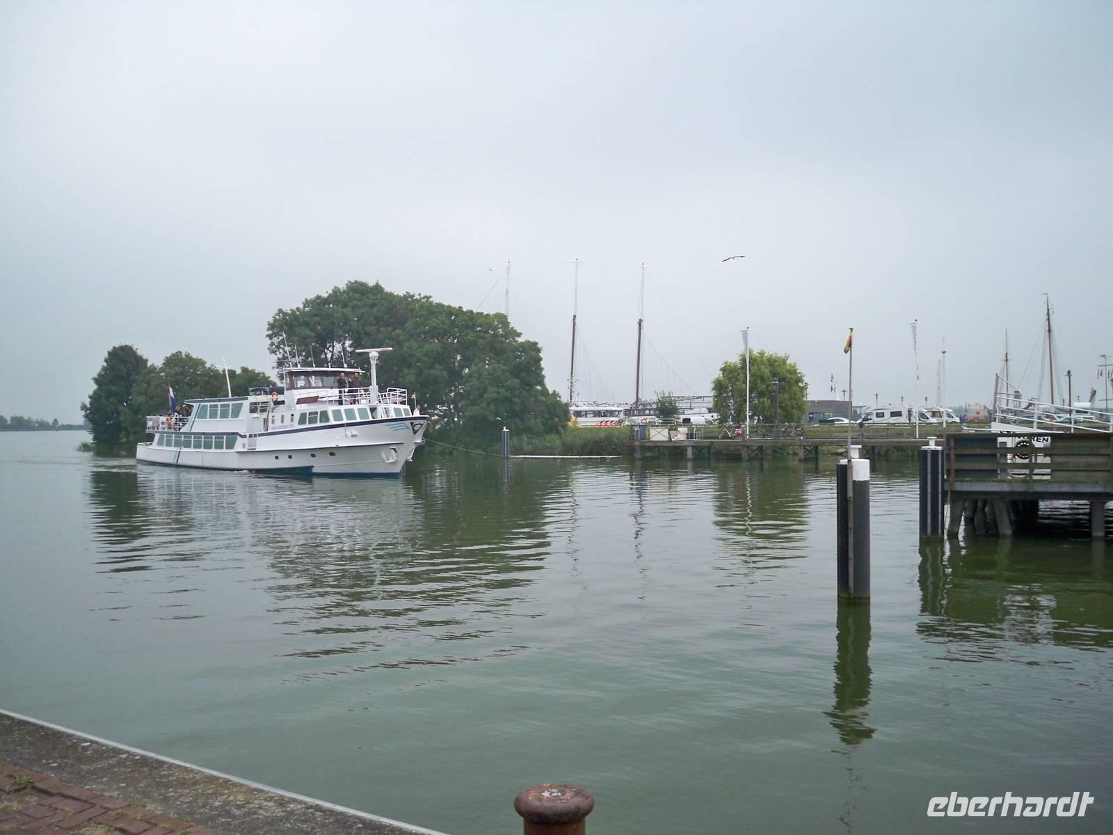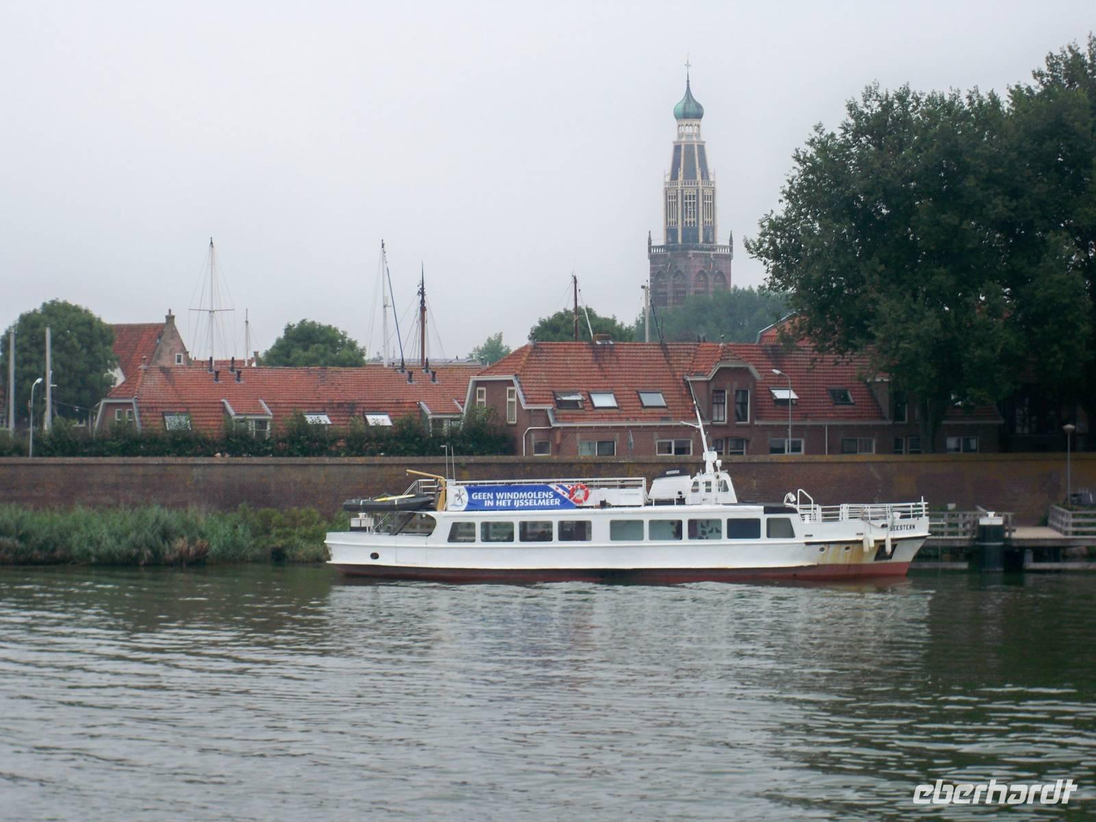 Der Vormittag begann mit einem Rundgang durch das kleine Hafenstädtchen. Unzählige Segelboote lagen in Enkhuizen vor Anker. Sie warteten vergeblich auf eine frische Brise. Es war wieder sehr windstill an diesem Tag. In kleinen Gruppen unternahmen wir einen Spaziergang durch das mittelalterliche Städtchen mit einem besonderen Flair. In der Fußgängerzone hatten wir noch die Möglichkeit ein typisch holländisches Souvenir zu erwerben. Zum Mittagstisch waren alle Gäste wieder an Bord und es hieß „Leinen los". Die Fahrt führte uns über das IJsselmeer und die IJssel nach Deventer. Am Abend erreichten wir das Städtchen und blieben bis zum Morgen vor Anker liegen. Auch heute war ein musikalischer Abend für uns vorbereitet. Ein junges Duo brachte bekannte Melodien zu Gehör. Der Abend klang gemütlich im Salon aus.