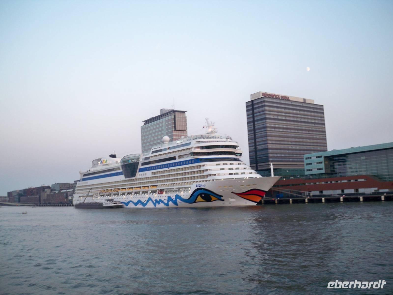 Heute Vormittag unternahmen wir mit unserer örtlichen Stadtführerin Cornelia eine Rundfahrt durch die zweitgrößte Stadt der Niederlande. Vorbei an beeindruckender, moderner Architektur erlebten wir eine ungewöhnliche, lebendige Großstadt u. A. mit den interessanten Kubushäusern, dem modernen Central Bahnhof und einem neuen Stadtteil mit gewaltigen Hochhäusern. Das Angebot, zur Fahrt auf den 185 m hohen Euromast, dem Wahrzeichen der Stadt, nahmen viele Gäste sehr gerne an. Von oben hat man einen fantastischen Blick auf die dynamische Metropole an der Maas. Am Mittag hieß es wieder „Leinen los" und wir fuhren weiter auf den Lebensadern der Niederlande, an Kinderdijk vorbei, auf dem Lek, durch die Princes Beatrice Schleuse und den Amsterdam- Rijn- Kanal nach Amsterdam. Am Abend erreichten wir dann die Hauptstadt der Niederlande und ankerten in der Nähe der Central Station. Nach einem köstlichen Abendessen an Bord unternahmen zahlreiche Gäste einen Bummel durch die lebhafte Metropole, die dieser Stadt, speziell am Abend, das besondere Flair verleiht. Für an Bord gebliebene Gäste zeigte Maitre Lucia wie man die Servietten faltet, die jeden Tag im Restaurant unsere Tische schmückten.