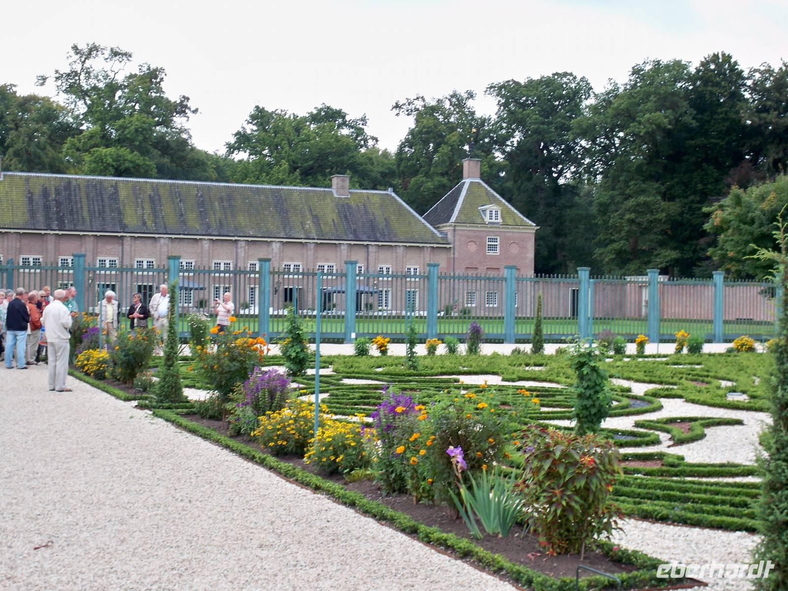 Am frühen Morgen begann unsere Fahrt nach Zutphen. Dort erwartete unser Chauffeur Ulf mit dem Reisebus bereits auf uns. Wir fuhren nach Apeldoorn zum Schloss Het Loo. Dort spazierten wir durch einen schattigen Park bis zum Eingang des Schlosses, wo uns die Stadtführer erwarteten. In kleinen Gruppen ging es dann in die wunderbar gepflegten Parkanlagen. Der rund um das Palais angelegte Barockgarten verzauberte uns mit seinen Statuen, Springbrunnen, Skulpturen und Kolonnaden. Es war eine Augenweide und die Fotoapparate klickten. Anschließend war noch Zeit die prächtig ausgestatteten Räume des Schlosses individuell zu besuchen. Auch die Stallungen und Kutschenhäuser waren