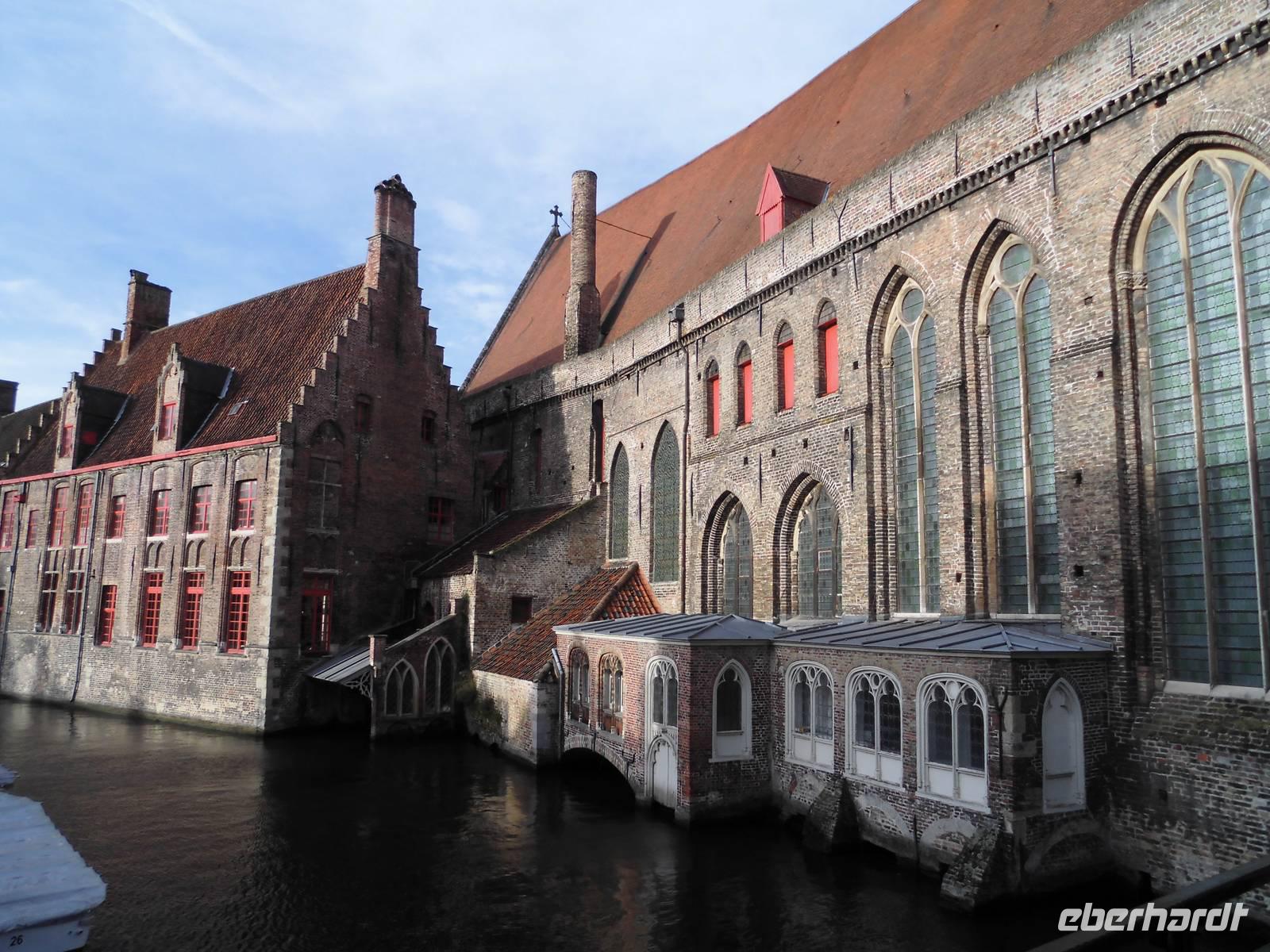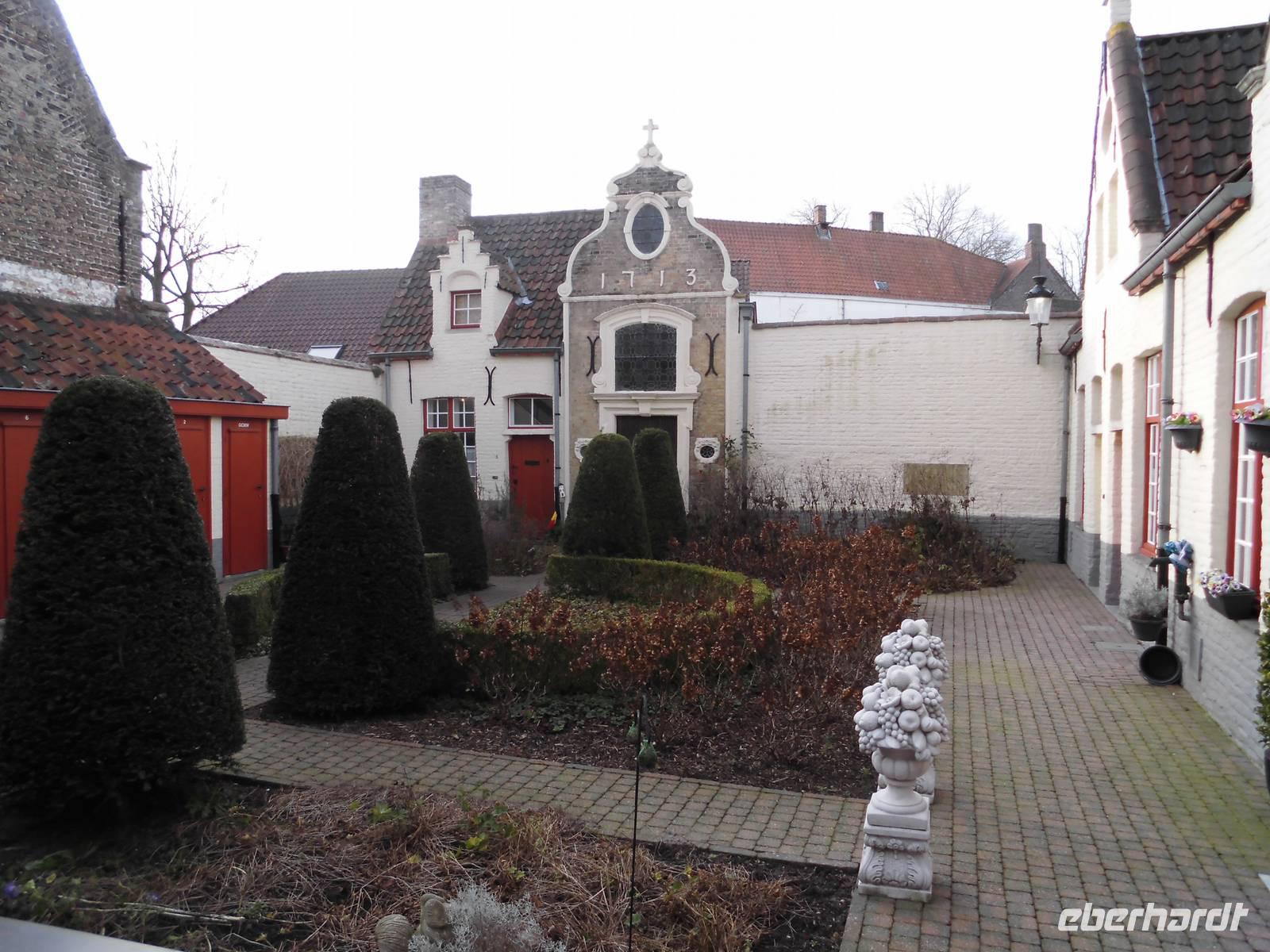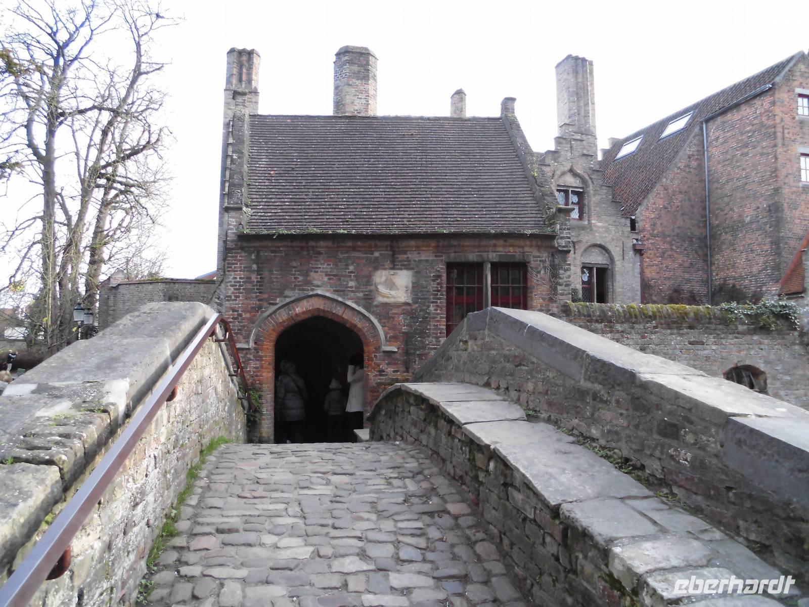 Wir begannen unsere Stadtführung mit Gustav entlang des kanalisierten Flüsschens Reie in den Begijnhof. Die Begijnen, wohlhabende Damen dessen Ehemänner auf Kreuzzug waren, kümmerten sich um Arme und Kranke der Region. Weiter ging es durch romantische, verwinkelte Gassen in die Altstadt. Sie ist von Wallanlagen und Kanälen umgeben. Durch das Flüsschen Reie war Brügge einstmals mit der Nordsee verbunden. 2000 wurde der mittelalterliche Stadtkern von Brügge zum UNESCO Weltkulturerbe erklärt. 2002 war Brügge Europ.Kulturhauptstadt.