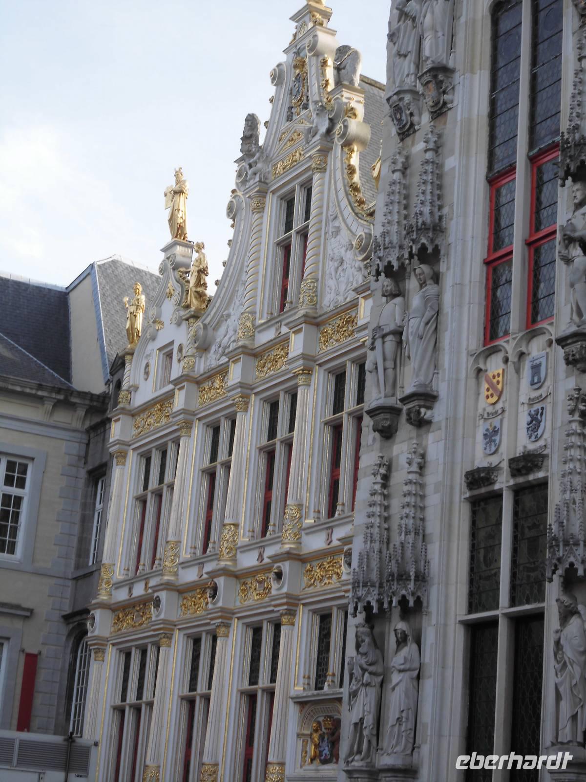 Zahlreiche schnell vorbeifahrende Fahrradfahrer und Pferdekutschen kreuzten unseren Weg. In den engen Straßen eine Herausforderung. Wir kamen zur Liebfrauenkirche in der Michelangelos „Gottesmutter mit Kind“ zu sehen ist. Weiter zur Heilig-Blut-Basilika in der für die Katholiken eine der bedeutendsten Reliquien Europas aufbewahrt wird. Die „Ampulle mit dem Blut Christi“. Seit 1291 wird die Reliquie immer zu Christi Himmelfahrt während der „Heilig-Blut-Prozession“ durch die Stadt getragen. Sie kam während des zweiten Kreuzzuges in Jerusalem mit dem Kreuzritter Dittrich von Elsass nach Brügge. Der Grote Markt, nur wenige Schritte entfernt, war im Mittelalter noch mit dem Schiff erreichbar. In der großen Tuchhalle wurden einst Stoffe gelagert und gehandelt. Die Waterhalle wurde 1787 abgerissen. Heute befindet sich hier der Provinciaal Hof, im Stil der Neogotik erbaut. Er ist Regierungssitz der Provinz Westflandern. Der Belfried, ein 83m hoher Turm, wurde im 13.Jhd. erbaut und demonstrierte den Reichtum des Bürgertums. Diente auch als Brandwache. Noch heute darf kein Neubau den Turm überragen. Vom Turm klang die ganze Zeit ein Glockengeläut mit weihnachtlichen Melodien. Nun hatten wir Freizeit, die jeder nach seinem Geschmack genießen konnte. Es gibt zahlreiche Brauereien - Belgien ist ein „Biertrinkerland“. Aber auch die berühmte „Belgische Schokolade“ lockte in die Geschäfte. Und so habe ich in einer Schokoladerie Konfekt für die Gäste anfertigen lassen. Auf der Heimfahrt wurden die kleinen Pakete verteilt.