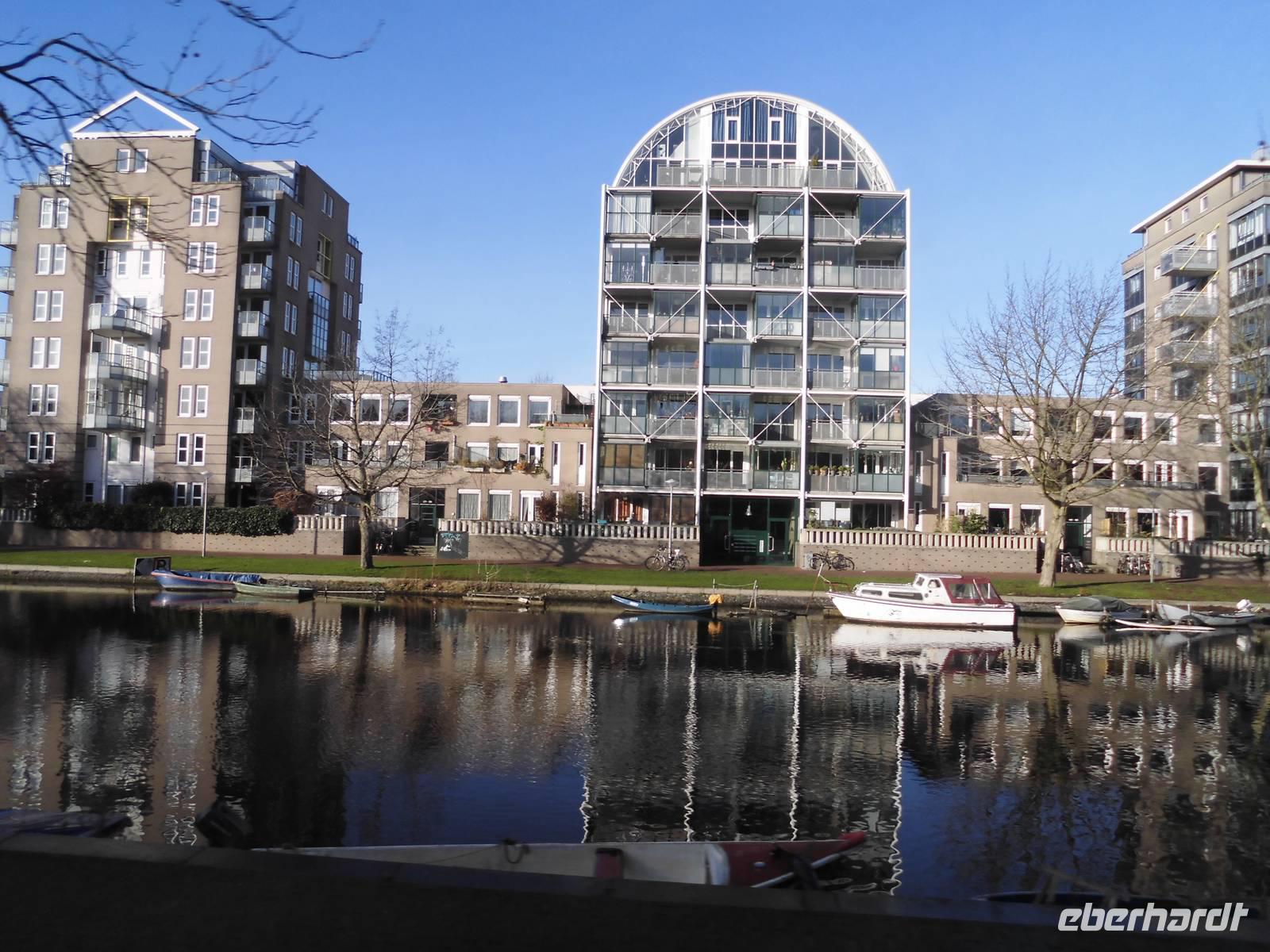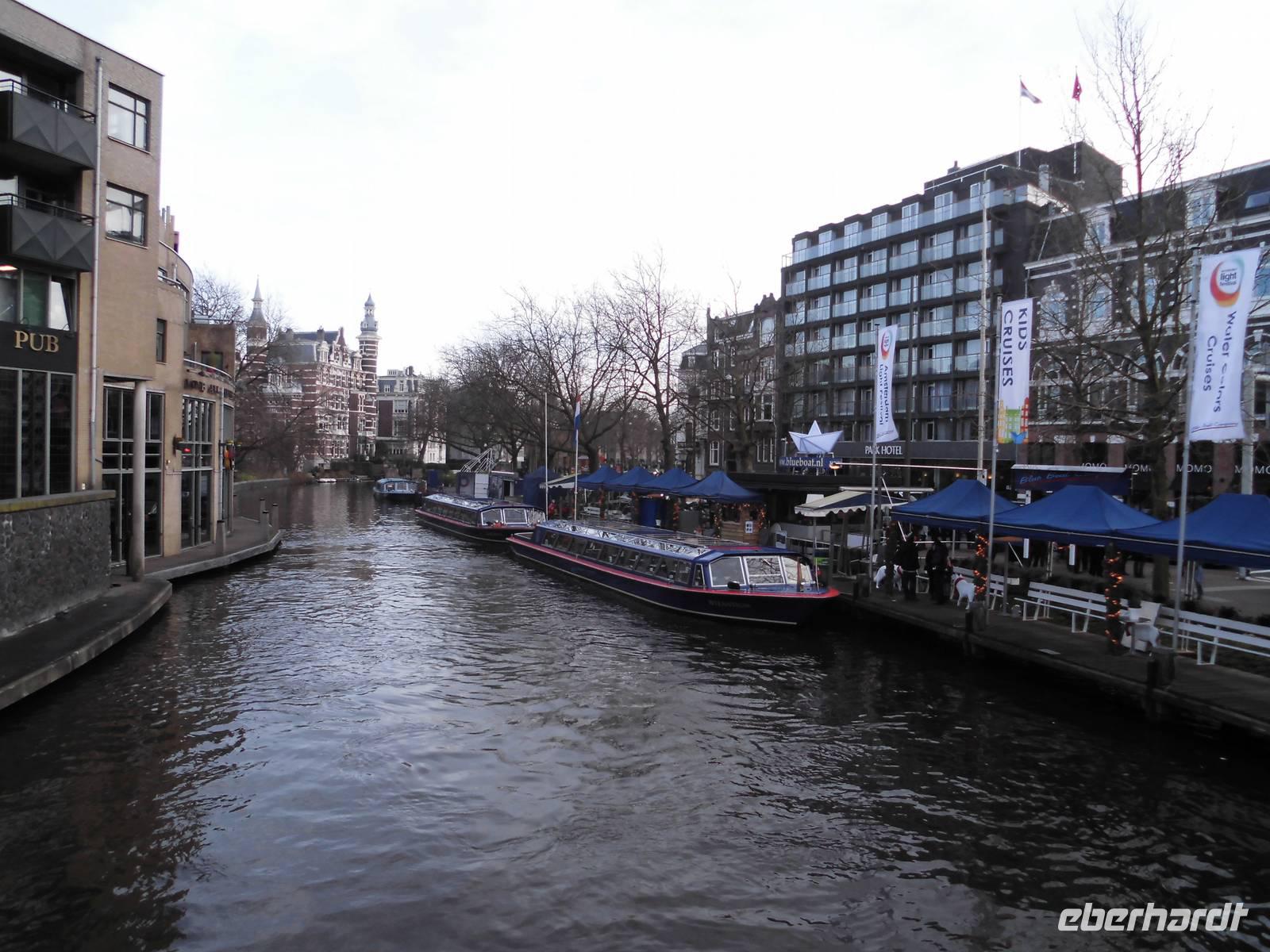 Gegen 12.30 Uhr waren wir in Amsterdam. 13.00 Uhr dann die Stadtrundfahrt und anschließend die Grachtenfahrt. Bei sonnigem Wetter beginnen wir nach dem Mittagessen die Stadtrundfahrt. Unser Stadtführer ist Ton van Garderen. Wir wünschen uns gegenseitig alles Gute fürs Jahr 2016 und ab geht die Fahrt vom Ruijterkade vorbei an den Bürogebäuden der Piet Heinkade in Richtung Oosterpark. An diesem Neujahrsmorgen ist Amsterdam fast Menschenleer. Alle sind wahrscheinlich noch müde vom feiern. Das ist günstig für unsere Tour und Ton kann uns in den 2 Stunden mehr zeigen als in einer Verkehrs verstopften Stadt. Wir erfuhren viel zur Geschichte, Kultur, Politik und Lebensart der Amsterdamer und Niederländer. Vorbei am Vondelpark, Amsterdams Vergnügungspark, am Rijksmuseum das nach zehnjähriger Umbauzeit im Jahr 2013 wieder eröffnet wurde. Wenn wir Zeit hätten, könnten wir dort das berühmte Bild von Rembrandt die „Nachtwache“ sehen, auch Delfter Porzellan und Kunst des 20.Jhds. Natürlich gibt es zahlreiche interessante Ausstellungen wie das der Madame Tussands, das Rembrandthus der von 1639 bis 1658 in einem Grachtenhaus lebte und arbeitete. Das van-Gogh-Museum, der Bau wird auch als Amsterdams Badewanne bezeichnet. Lange war die Stadt Zentrum des Diamanthandels - ein Gewerbe in dem überwiegend Juden tätig waren. Doch die Nazis haben in Holland an die 100.000 Juden in den Vernichtungslager ermordet.