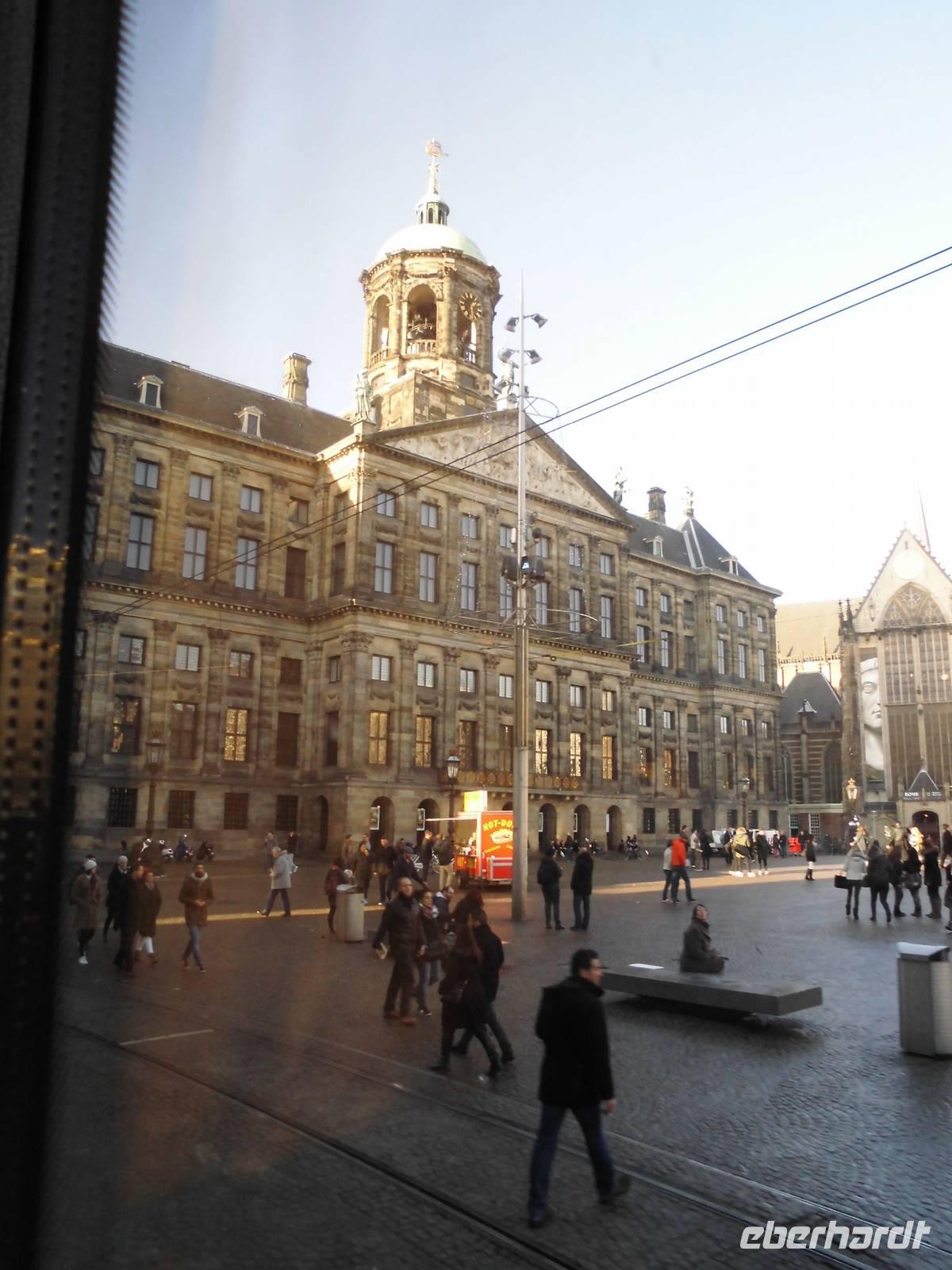 Auf dem Weg zur schönen Mühle blühen die Narzissen und das im Januar. Die Klimaerwärmung macht sich auch hier deutlich bemerkbar. Ton hat Recht wenn er sagt: bald stehen die Flamingos nicht nur im Zoo, sondern wir können sie auf den Wiesen in der Stadt sehen. An der Poltermühle steigen wir aus. Sie ist immer ein gutes Fotomotiv. Auf der Amstel nebenan wird gerudert. Weiter geht die Fahrt vorbei am Olympiastadion von 1928. Es geht wieder ins Zentrum der Metropole. Der Dam, die große Einkaufsmaile Amsterdams. Am oberen Ende sehen wir den Central Bahnhof. Am unteren Ende das Nationalmonument in Form eines Obelisken. Gegenüber der Königspalast, der wichtigste Bau aus dem Goldenen Zeitalter im 17.Jhd. Seit 1939 dient er als Unterkunft für Staatgäste und zu repräsentativen Zwecken, königlichen Hochzeiten, Krönungsfeiern. Gleich daneben die Nieuwe Kerk, in der Willem Alexander (geb. 1967) zum König der Niederlande am 30.4.2013 gekrönt wurde. Seit 2003 ist er mit Maxima verheiratet und hat 3 reizende Töchter - Amalia,Alexia,Ariane.