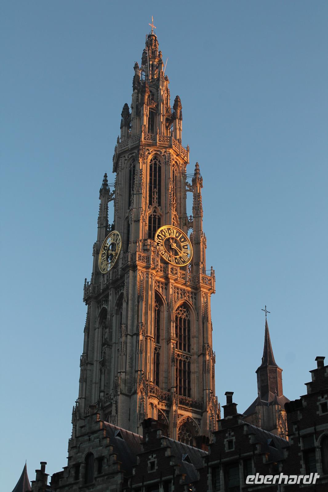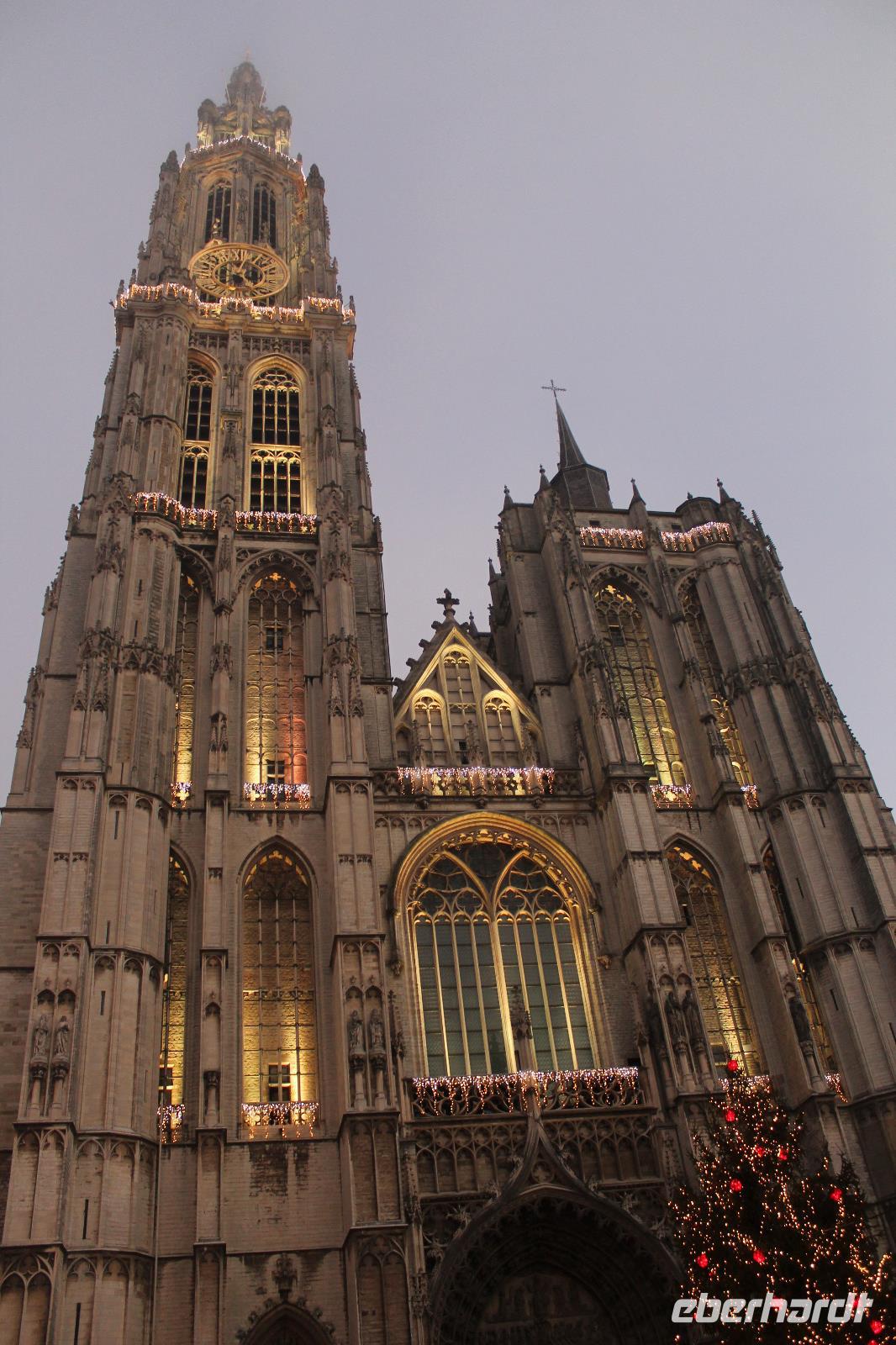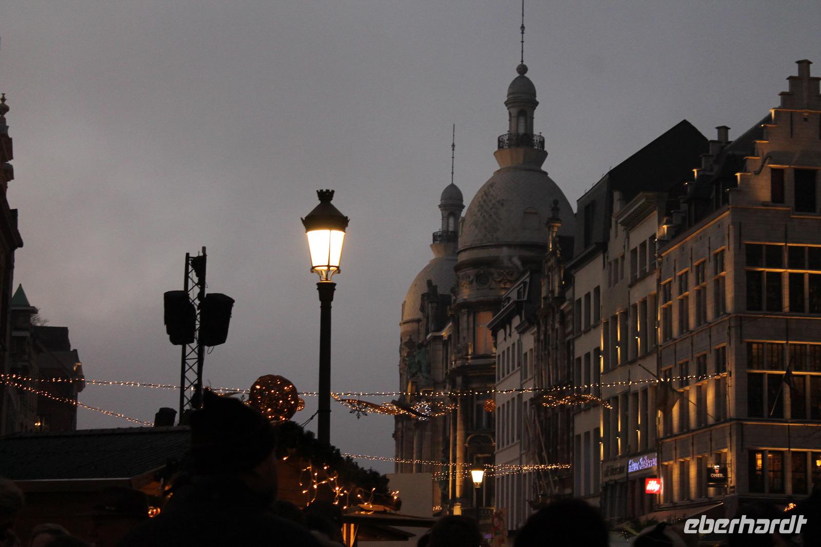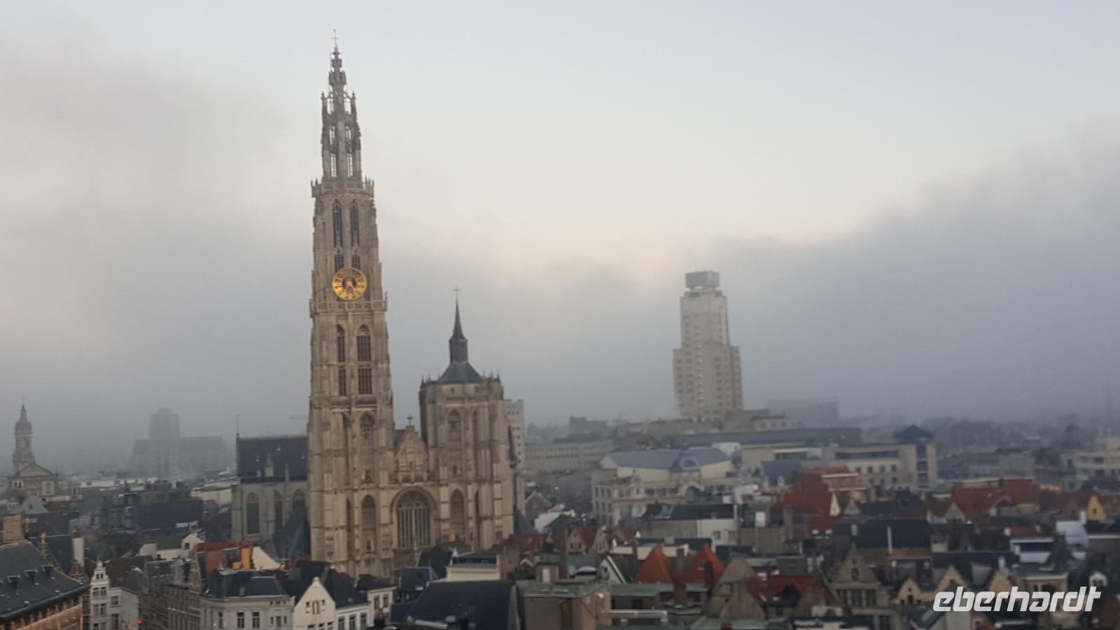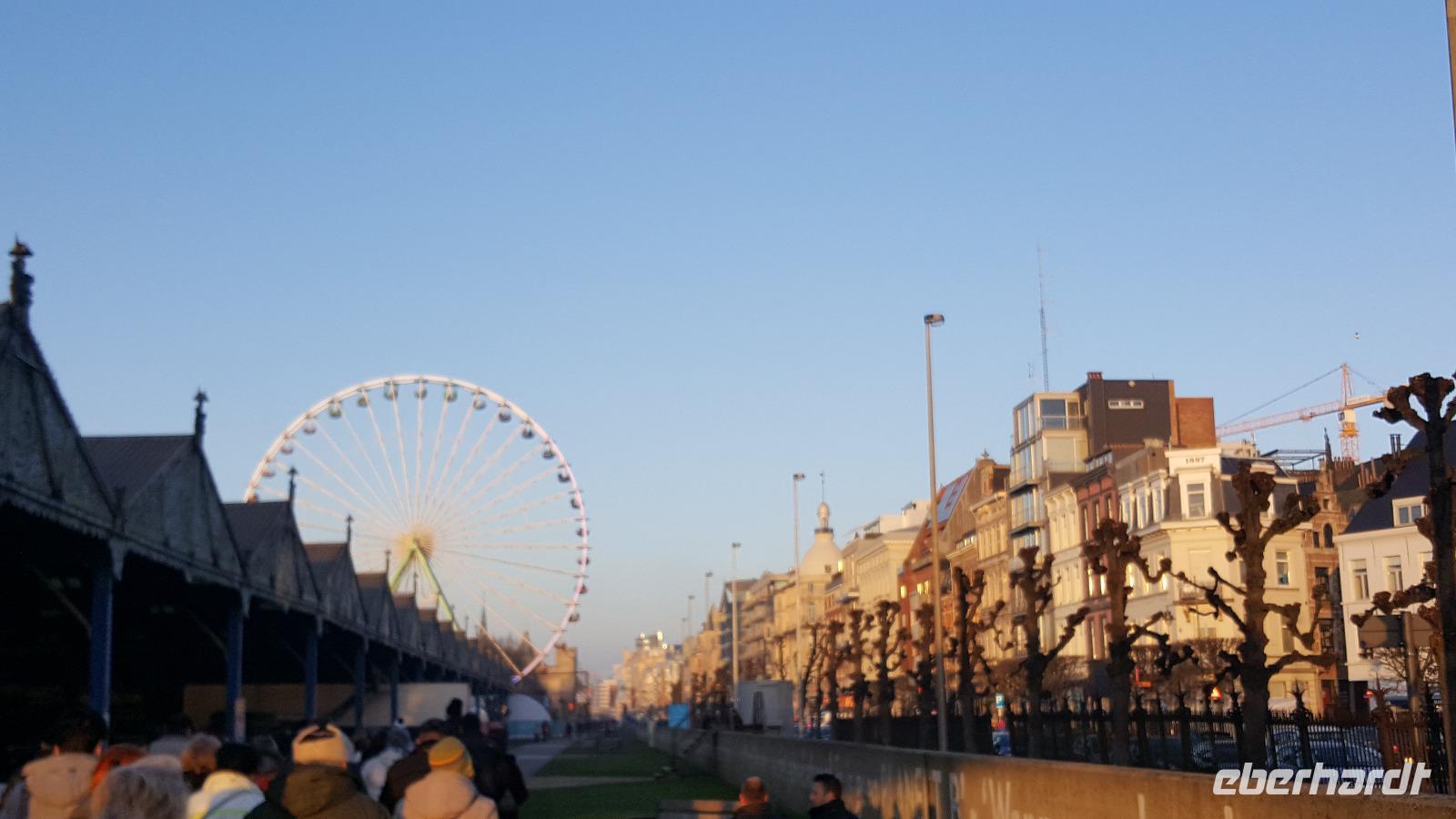 Am nächsten Morgen verspürte man einen kleinen Ruck, als die MS Rigoletto in die Schleuse einfuhr. Doch dadurch schmeckte das Frühstück vom Buffet nicht minder lecker! Im Salon hatte man die Möglichkeit den Fahrtkommentaren der Reiseleiterin Monika zu lauschen. Vorbei an kleinen, katholischen Inseln - sehr ungewöhnlich für das protestantische Holland - ging es in Richtung Antwerpen. Dort angekommen, empfing uns unsere Reiseleiterin Gerda herzlich. Sie ist gebürtige Belgierin und erklärte uns während der Stadtrundfahrt ein paar Dinge über Antwerpen. Den ersten Stopp machten wir am Hauptbahnhof, der sich - mitten in der Innenstadt - direkt neben dem Zoo befindet! Weiter ging es vorbei am alten Gerichtsgebäude und dem Kunstmuseum, sowie dem Diamantenviertel. Wir parkten am Fluss „Schelde" und liefen über den Wintermarkt zum imposanten Dom. Die Freizeit nutzten Madlen und ich, um für unsere lieben Gäste ein paar Aufnahmen aus der Luft zu machen und drehten eine Runde mit dem Riesenrad ?