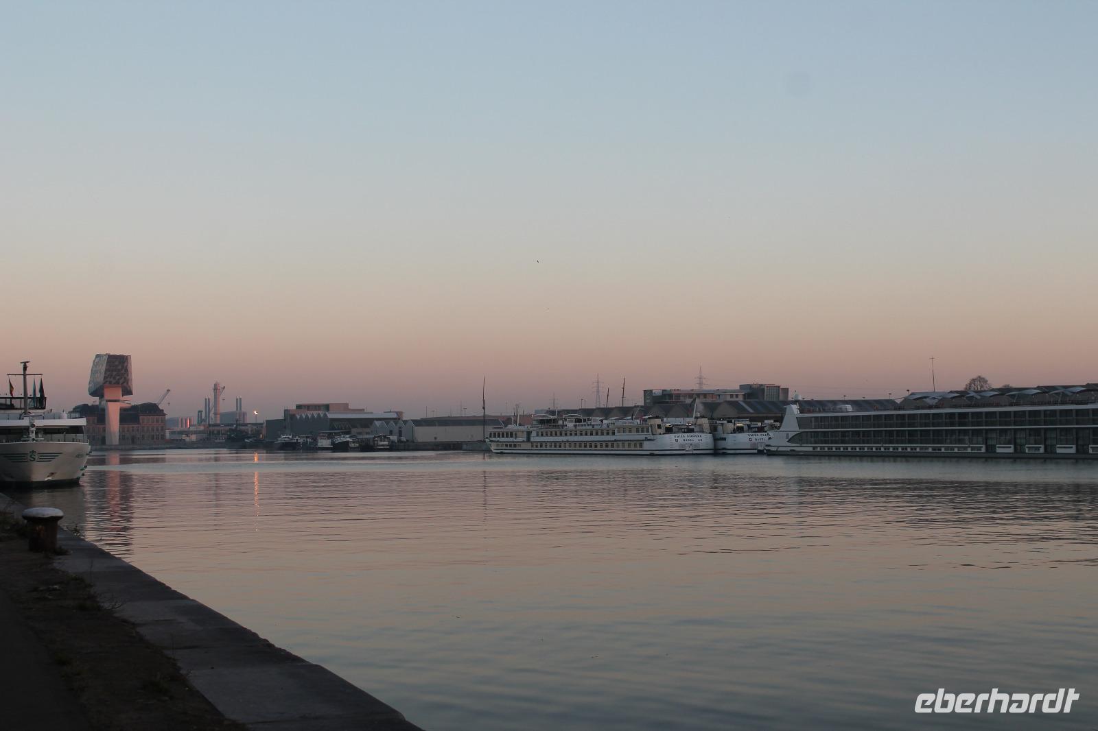 Nach einer langen aber problemfreien Anreise, erreichten wir in Nijmegen endlich das Schiff - die MS Rigoletto. An Bord richteten wir zuerst die Kabinen ein, bevor es im Anschluss mit der Begrüßung sowie der Sicherheitseinweisung weiter ging. Hungrig durch die (teils) elfstündige Busanreise, war es auch endlich Zeit für das Fünf-Gang-Abendessen. Den ersten Abend verbrachten manche an Bord der Rigoletto, andere wiederum machten sich noch auf eine kleine Entdeckungstour „bei Nacht". So auch Madlen und ich. Für diejenigen, die lieber die Füße hochlegen wollten, haben wir noch einige tolle Aufnahmen von der nächtlichen Stadt machen können.