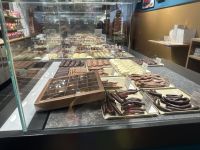 Inzwischen hat es allerdings angefangen richtig doll zu regnen und so schlüpfen wir nach der Stadtführung schnell ins nächste Café und lernen die Preise von Brügge kennen. Jetzt wissen wir, warum es heißt, einmal Brügge sehen und dann sterben (Scherz). Wir haben viel Zeit, durch die Boutiquen und Souvenirläden zu schlendern, Schokolade zu kaufen oder zu verkosten, im besten Fall beides. Die Geschichte der belgischen Schokolade geht auf das 17. Jahrhundert zurück als spanische Seefahrer die Kakaobohnen aus Südamerika nach Europa brachten. Noch heute behaupten die Belgier, dass sie die besten Schokoladenrezepte haben, wovon wir uns gern überzeugen. Am Belfried treffen wir uns wieder und spazieren gemeinsam zum Bus zurück.