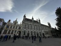 Nach dem Frühstück werden wir mit Lunchpaketen versorgt, denn wir werden heute den ganzen Tag unterwegs sein. Unsere örtlichen Reiseführer erwarten uns am Bus und begleiten uns auf der Fahrt. Wir haben wieder Glück mit dem Wetter. Der Himmel ist blau und die Sonne scheint. Unser Spaziergang beginnt am Begijnhof, ein ruhiger Innenhof mit weißen Häusern und einem zentralen Garten, der uns in vergangene Zeiten eintauchen lässt. Dieser Ort war einst die Heimat frommer Frauen, den Beginen, die in einem gemeinschaftlichen Umfeld lebten und sich sozial engagierten. Der Weg führt uns zum Minnewater, einem malerischen See mit einem zauberhaften Brückenhäuschen. Hier befindet sich auch der Beginenhof-See, umgeben von Grünflächen und historischen Gebäuden. Weiter geht es zum romantischen Rozenhoedkaai, einem der bekanntesten Orte in Brügge. Die Aussicht auf die alten Brücken, Backsteinhäuser und den Blick auf die Kirche der Heiligen Magdalena schafft eine postkartenwürdige Kulisse. Zum Schluss bleiben fast eineinhalb Stunden für eigene Unternehmungen. In dieser Zeit kehren wir noch gemeinsam in eine Chocolaterie ein und verkosten eine echte leckere belgische heiße Schokolade.