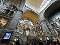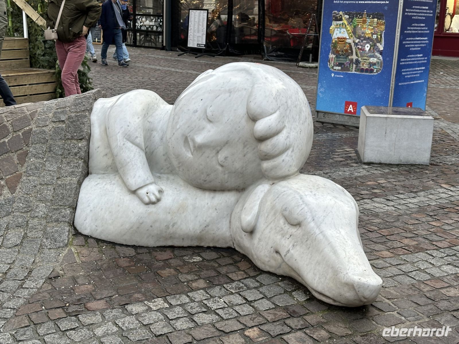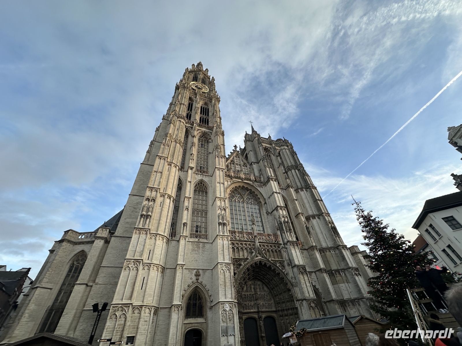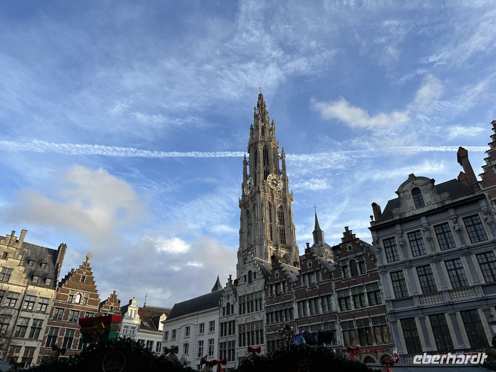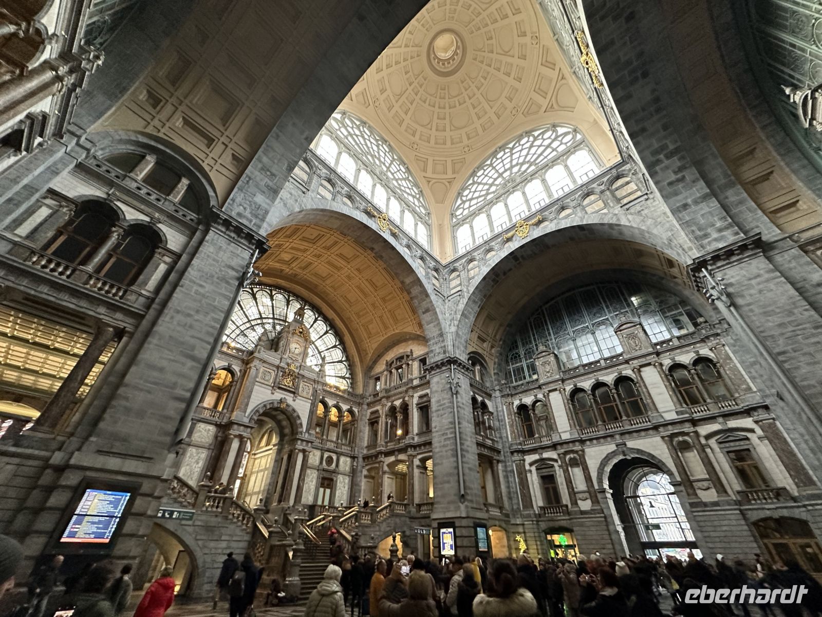Heute ist Ausschlafen angesagt. Frühstück gibt es bis 09.30 Uhr. Das Vormittagsprogramm erfolgt in Eigenregie. Hafenmeistergebäude und MAS laden zur Besichtigung ein, alternativ kann man es sich im Salon gemütlich machen. Ein gutes Buch, ein Kartenspiel oder einfach nur aus dem Fenster schauen und träumen, so vergeht die Zeit. Zum Mittagessen gibt es Karottensuppe, Hackbraten mit Senfkartoffelpüree und Julienne-Gemüse und Vanillepudding. Am Nachmittag unternehmen wir einen Ausflug in die Stadt. Es herrscht Feiertagsverkehr und wir müssen so manchen Stau bewältigen. Wir besichtigen den Bahnhof von Antwerpen. Antwerpen-Centraal ist der wichtigste Bahnhof in Antwerpen, Belgien, und zählt zu den schönsten Bahnhöfen der Welt. Der Bahnhof wurde im Jahr 1905 eröffnet und verbindet die Stadt Antwerpen mit verschiedenen nationalen und internationalen Bahnstrecken. Antwerpen-Centraal ist bekannt für seine beeindruckende Architektur, die eine Mischung aus verschiedenen Baustilen ist. Die Fassade des Bahnhofsgebäudes ist im Stil der Renaissance gestaltet, während die Kuppel und der Hauptbahnhof im Stil des Eklektizismus erbaut wurden. Das markante Merkmal des Bahnhofs ist die große Kuppel, die das Dach krönt. Das Glasdach erstreckt sich über die Bahnsteige und sorgt für eine helle und offene Atmosphäre im Inneren. Der Innenraum des Bahnhofs ist geräumig und beeindruckend. Die hohen Bögen und die Verwendung von Glas schaffen eine luftige und einladende Umgebung. Die aufwändige Gestaltung der Wände und Decken trägt zur historischen Atmosphäre bei. Nachdem wir den Bahnhof ausgiebig bewundert haben, setzen wir unseren Rundgang fort und spazieren nun durch eine der vielen Diamantstraßen. Juwelier grenzt an Juwelier und überall glitzert und funkelt es teuer. Im Zentrum von , dem Grote Markt, ist noch der Weihnachtsmarkt aufgebaut. Hier ist heute ordentlich was los. Musik klingt über den Platz und mischt sich mit dem Duft nach frischen Waffeln und anderen Leckereien. Am Brabo-Brunnen erfahren wir, woher der Name Antwerpen stammt, bestaunen die umliegenden Handelshäuser und das schöne Rathaus, dann spazieren wir weiter zur Skulptur von Nello und Patrasche, deren Geschichte wir auf der Busanreise erfahren haben.