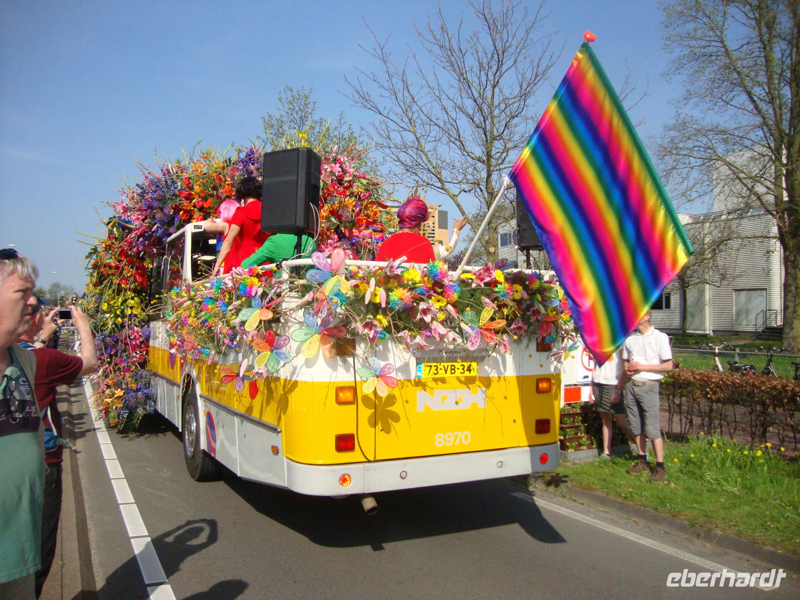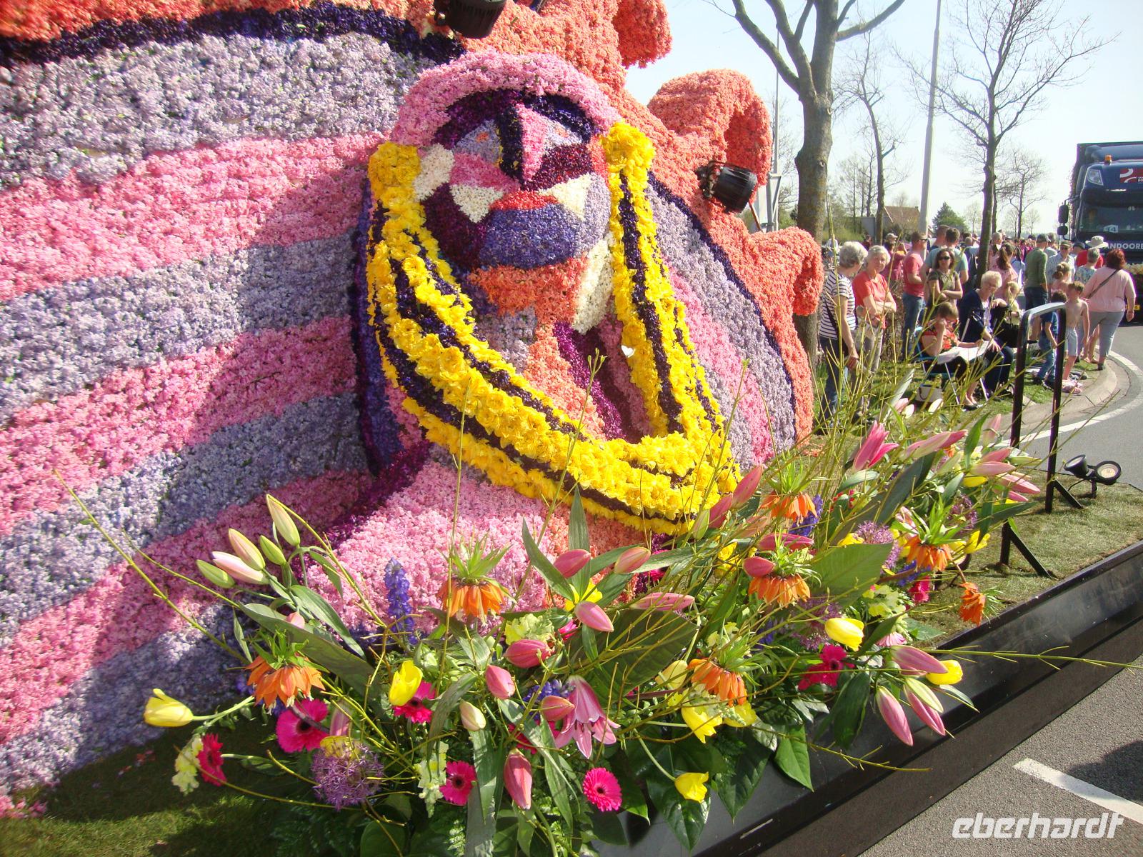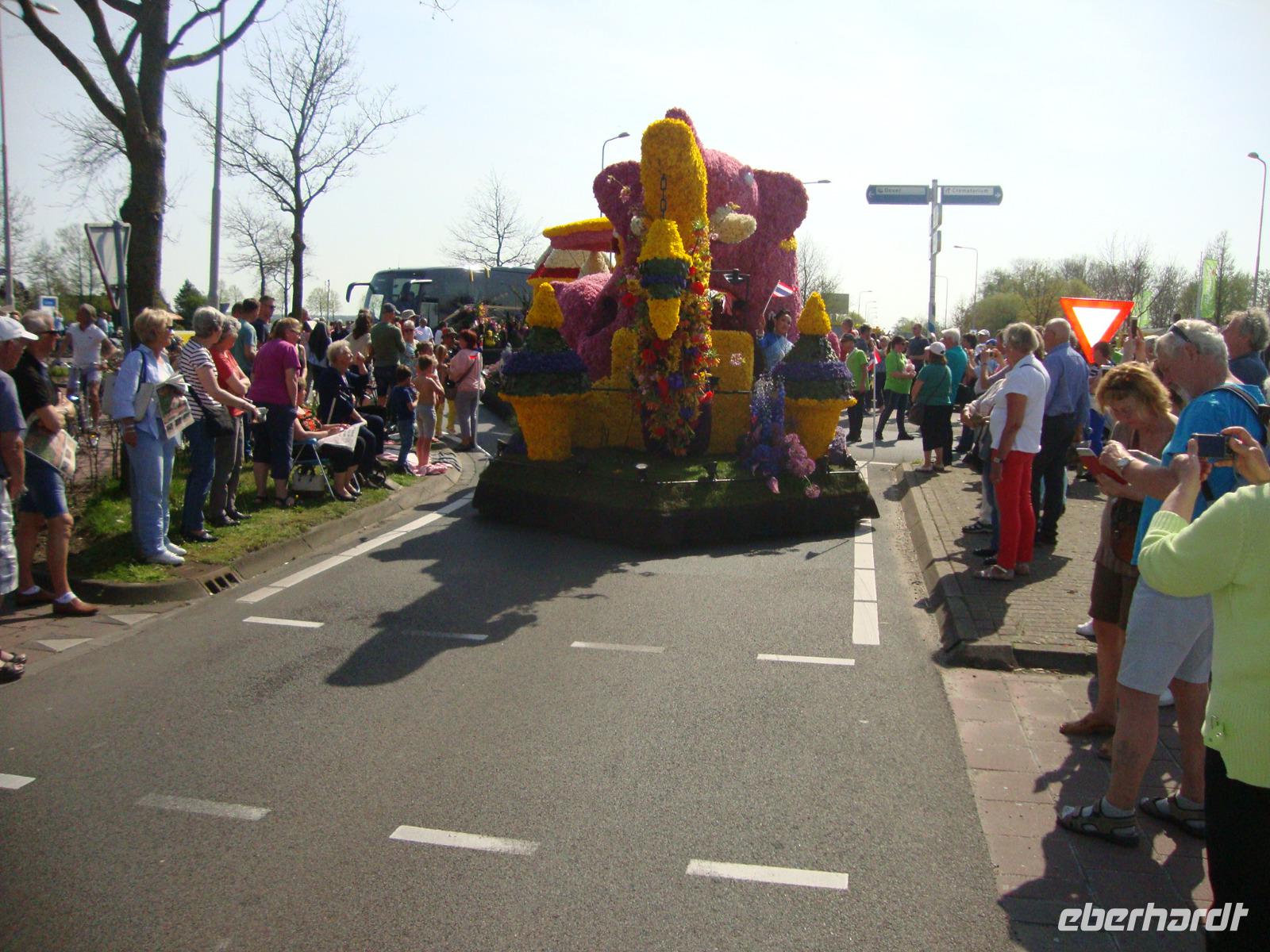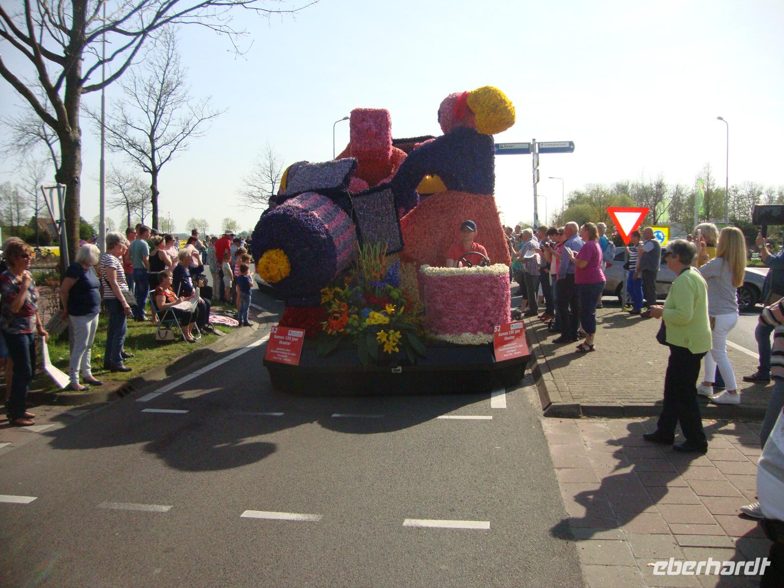 Der farbenfrohe und mit viel Mühe vorbereitete Blumencorso zieht jährlich viele hundert tausend Besucher in seinen Bann. Er führt von Nordwijk bis nach Haarlem, ca 45 km und wird mit vielen Mitwirkenden gestaltet. Vorher machten wir Station bei den Blumenhändlern in Lisse und jeder erhielt eine schöne typisch holländische Schale mit Tulpenzwiebeln, welche bestimmt noch zum Blühen gelangen als WOW. Wir hatten uns, wie immer, unseren sehr schönen Stellplatz ausgesucht und konnten in Lockerheit und entspannt auf den Vorbeimarsch warten. Auf Grund der sehr hohen Temperaturen und herrlichem Sonnenschein, war es gegen 15.00 Uhr soweit, das wir den Corso ganz hautnah erlebten. Die Bilder in der Fotogalerie verdeutlichen diesen grandiosen Höhepunkt während unserer Reise. Über 60 prächtig geschmückte Wagen sahen wir und alle unsere Reisegäste waren davon begeistert. So ging dieser wunderbare Tag zu Ende, als wir uns auf dem Rückweg nach Bergen begaben. Mit vielen bleibenden, unvergesslichen Eindrücken erlebten unsere Gäste diesen Tag.