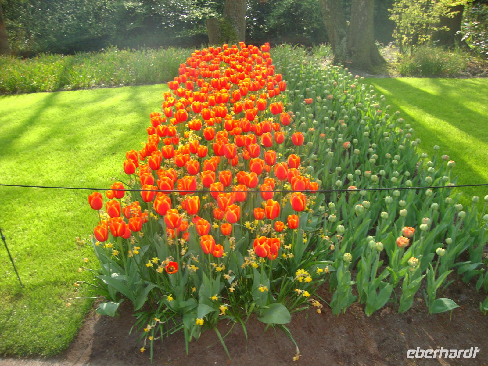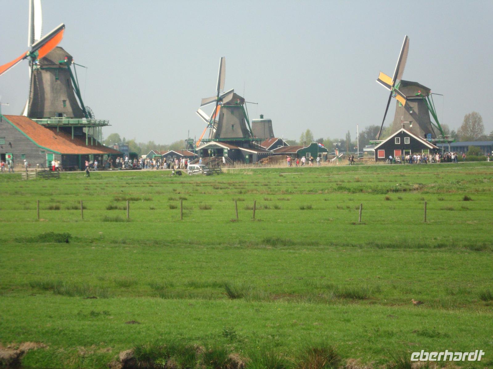 Im Frühling verwandeln rund acht Millionen Blüten, überwiegend Tulpen, aber auch Narzissen, Krokusse, Amarylis oder Hyazinthen den Keukenhof bei Lisse in ein gigantisches, vielfarbiges Blumenmeer. Eine Million Besucher lassen sich das farbenprächtige Panorama auf Feldern, Beeten, in Pavillons und Gewächshäusern in den Wochen Ende März bis Ende Mai jeden Jahres nicht entgehen. Die größte Frühjahrsblumenschau der Welt entstand vor rund 50 Jahren in einer Gemeinschaftsaktion von ca. 8000 Gärtnereien südlich von Haarlem. Am frühen Nachmittag fuhren wir durch Haarlem, wo der Blumencorso endet. Schöne, gepflegte Häuser prägen das Antlitz der Stadt. Das Freilichtmuseum "Zaanse Schans" war unser nächstes Ziel. In der Backstube bäckt Brot, die Käserei fertigt köstlichen Gouda.Wohnhäuser, Windmühlen und Dutzende andere Gebäude aus dem 17. - 19.Jh. sind aus ganz Noord-Holland hier wieder aufgebaut und erfreuen die Besucher. Am Ende des Tages besuchten wir "Simonehoeve", eine der vielen Käserei - und Holzschuhmachereien (Klompen) unweit von Volendam. Dort entstand auch unser gruppenfoto mit der Windmühle, Alle konnten die vielen verschiedenen Sorten mit einem Glas Obstwein kosten. Anschließend begaben wir uns auf den Heimweg in unser Hotel "Zeebergen".