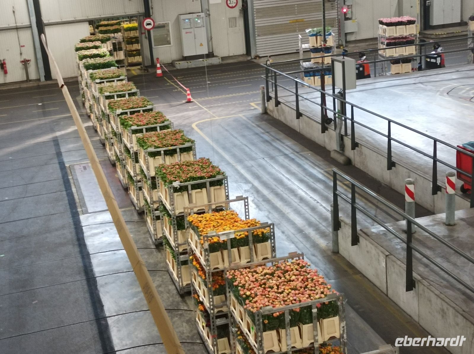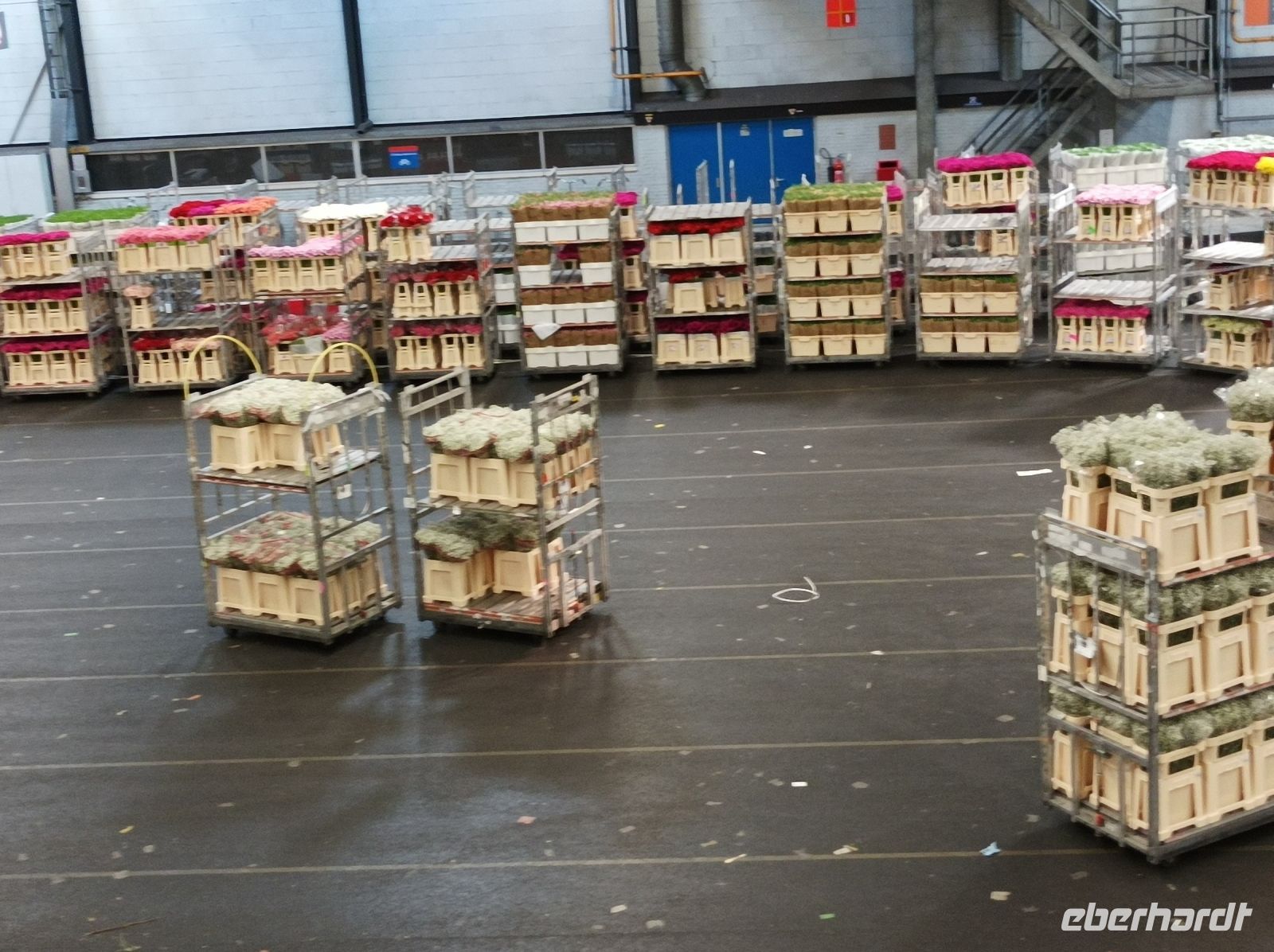 Viele Touristen sind schon da und auch wir beginnen gegen 8.00 Uhr mit unserem Rundgang. Die Versteigerung geht bis 8.45 Uhr und der Weg bis zu den Auktionsuhren dauert ca 10 min. Aber es hat sich gelohnt, das Blumenaktionshaus zu besuchen. Täglich werden knapp 20 Millionen Blumen versteigt. Dabei kommen die Blumen auch aus Israel, Kenia oder auch aus Bangkok. Der Hauptabnehmer ist Deutschland. Wir werden nun die Blumen mit ganz anderen Augen kaufen.