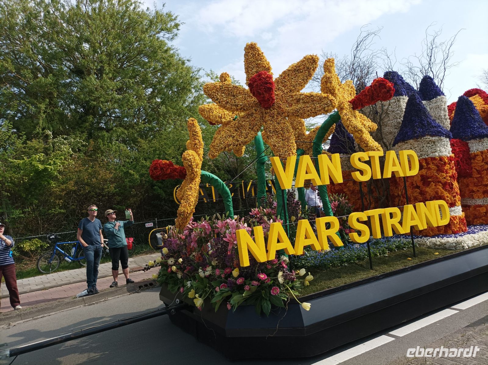 Anschließend wir der Käse probiert und natürlich gekauft. An einer Hollendermühle planen wir noch einen Fotostopp und dann geht es nach Sassenheim zum Blumenkorso. Hier können wir den Korso auch vom Bus aus beobachten. Der Blumencorso legt eine 40 Kilometer lange Strecke von Noordwijk nach Haarlem zurück und die Parade besteht aus etwa zwanzig Wagen mit und mehr als dreißig luxuriösen und mit Blumen geschmückten Autos. Unsere Erwartun wird voll und ganz erfüllt und somit fahren wir anschließen sehr zufrieden nach Bergen zurück.